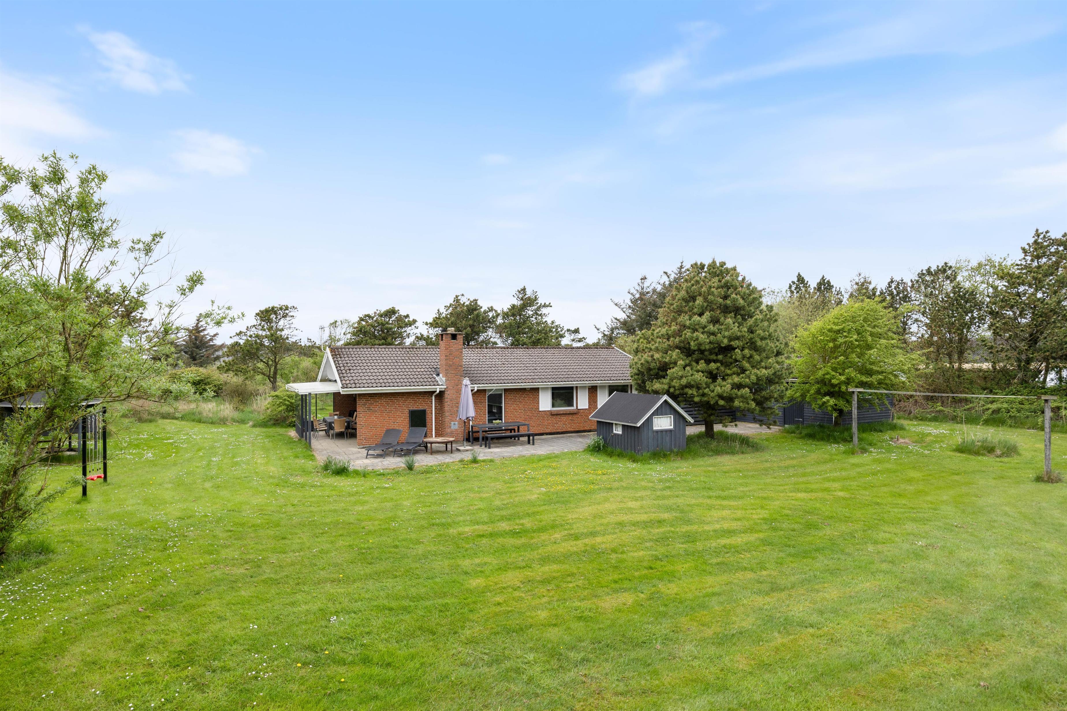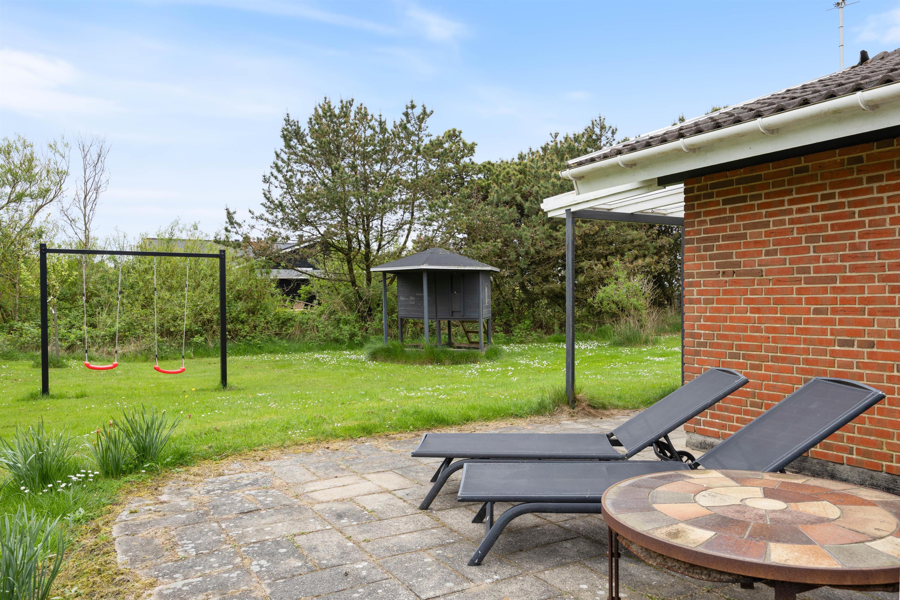 Det er oplagt at tilbringe feriedagen udendørs på den dejlige naturgrund. Her er der masser af plads til leg og aktiviteter, og familiens yngste medlemmer kan blandt andet drive tiden med at gynge. Gyngestativet er praktisk placeret i nærheden af terrassen, så I kan have et øje på de små, mens de leger.