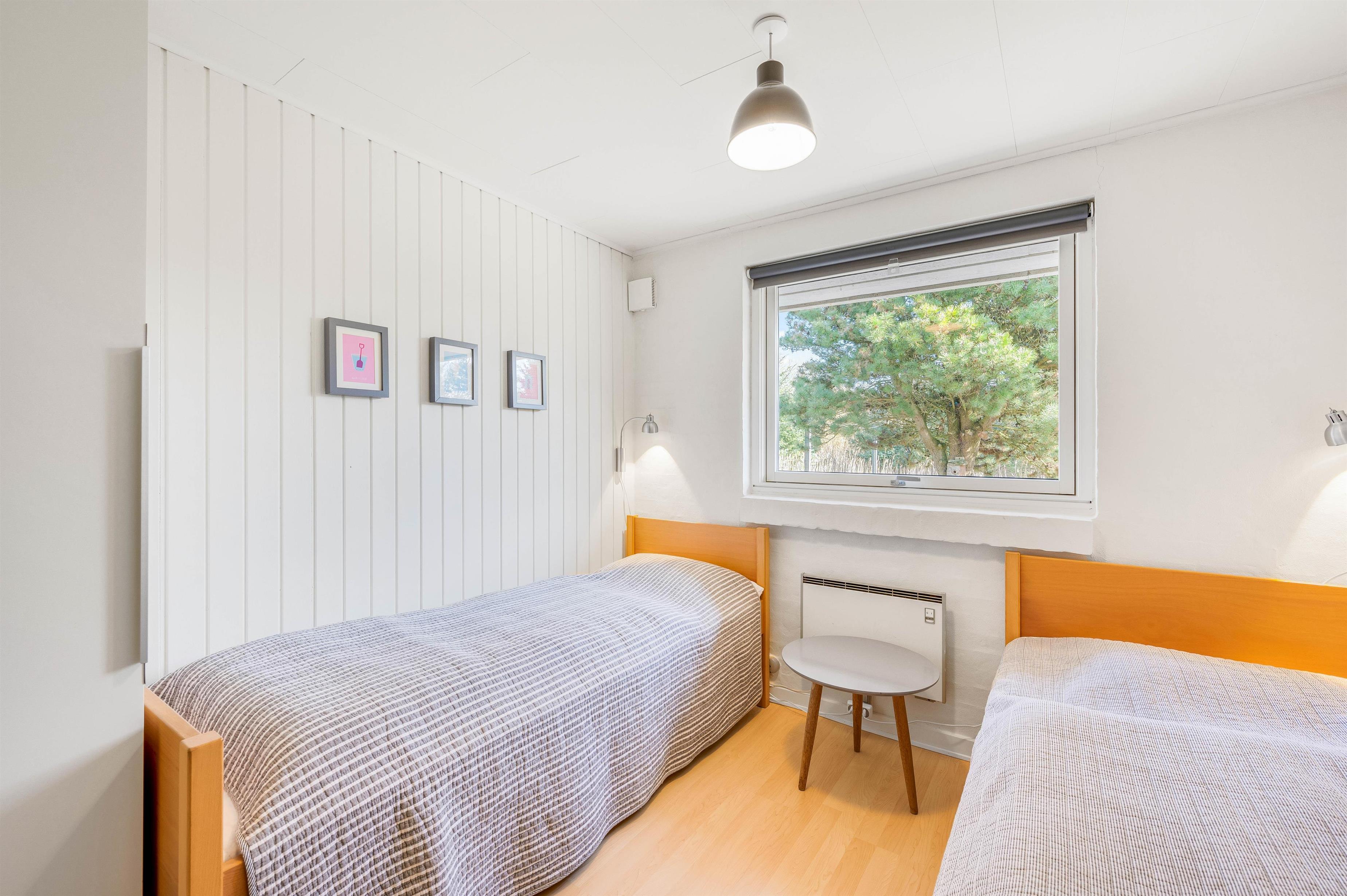 Sommerhuset er udstyret med 3 gode værelser, hvoraf 1 er indrettet med dobbeltseng, mens de sidste 2 er indrettet med 2 enkeltsenge. Dertil kommer 1 flot badeværelse med bruseniche, flisegulv og gulvvarme. Stilen fra sommerhuset er videreført på badeværelset, der er renoveret med nænsomhed og materialer af høj kvalitet.