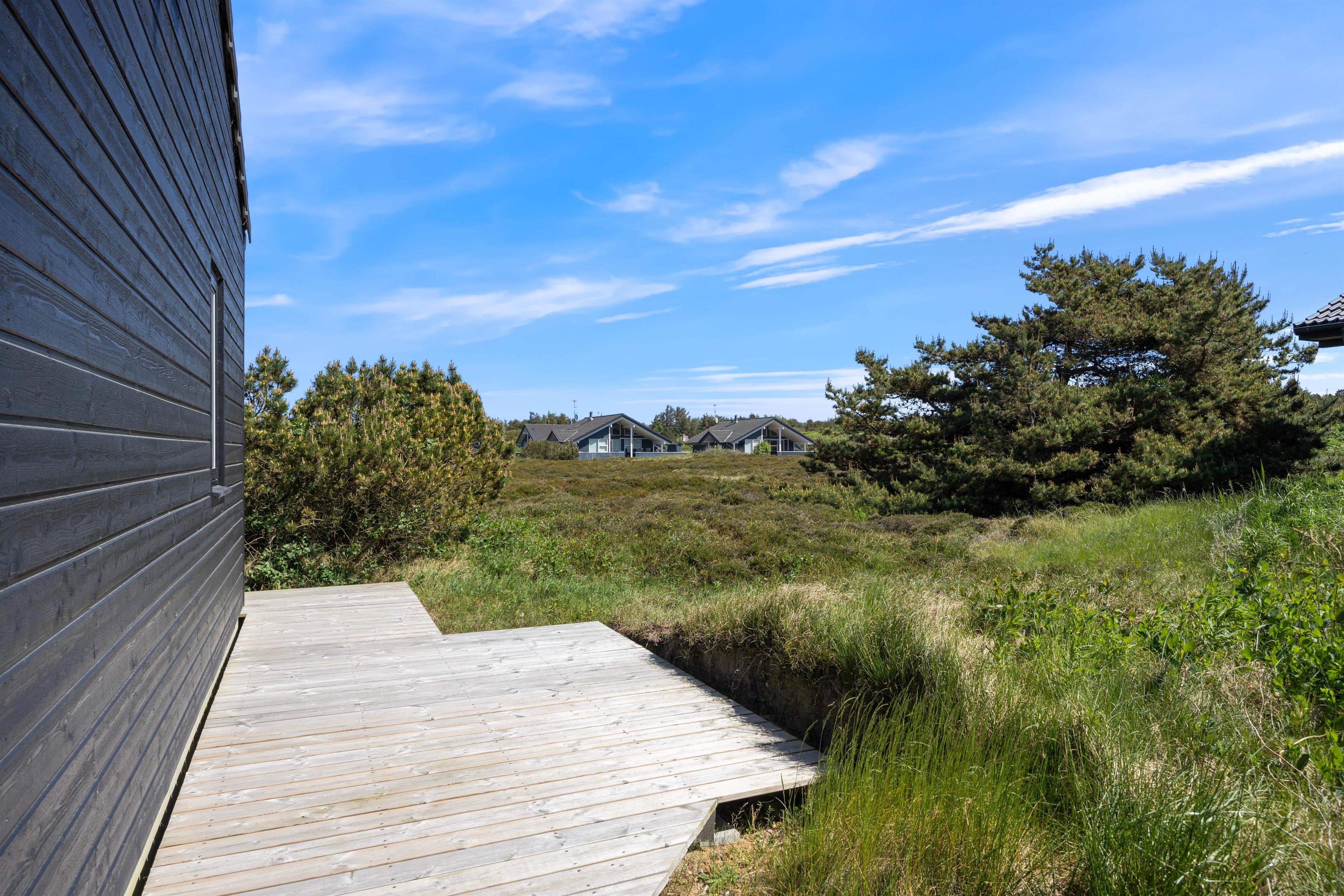Dette femstjernede feriehus på Lodbjerg Hede blot 1,2 km fra Vesterhavet er helt ideelt til feriegæsten, der holder af at holde ferie i moderne og lækre omgivelser. Feriehuset er stilfuldt indrettet med moderne interiør, 3 badeværelser, sauna og badekar. Den lukkede terrasse er perfekt til hundeejerne, og 2 hunde er tilladt i feriehuset.