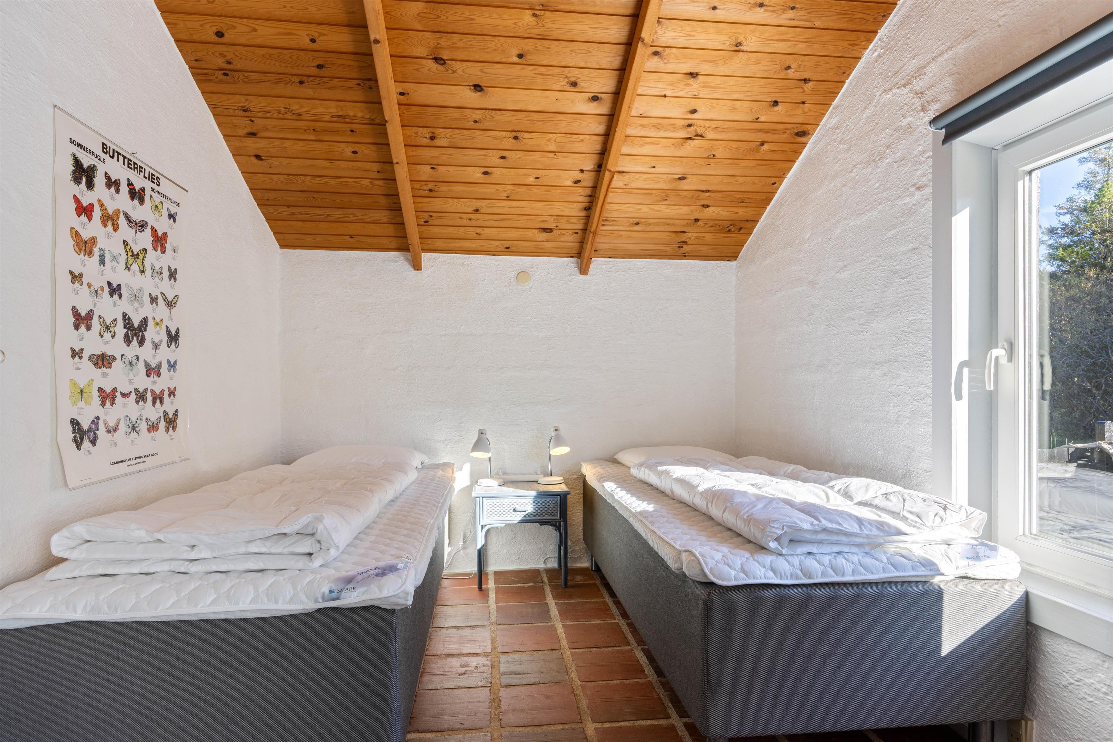 Sommerhuset rummer over 144 velindrettede kvadratmeter og byder på 3 lyse og indbydende soveværelser: 1 med dobbeltseng, 1 med køjeseng og 1 med 2 enkeltsenge – perfekt til hele familien.