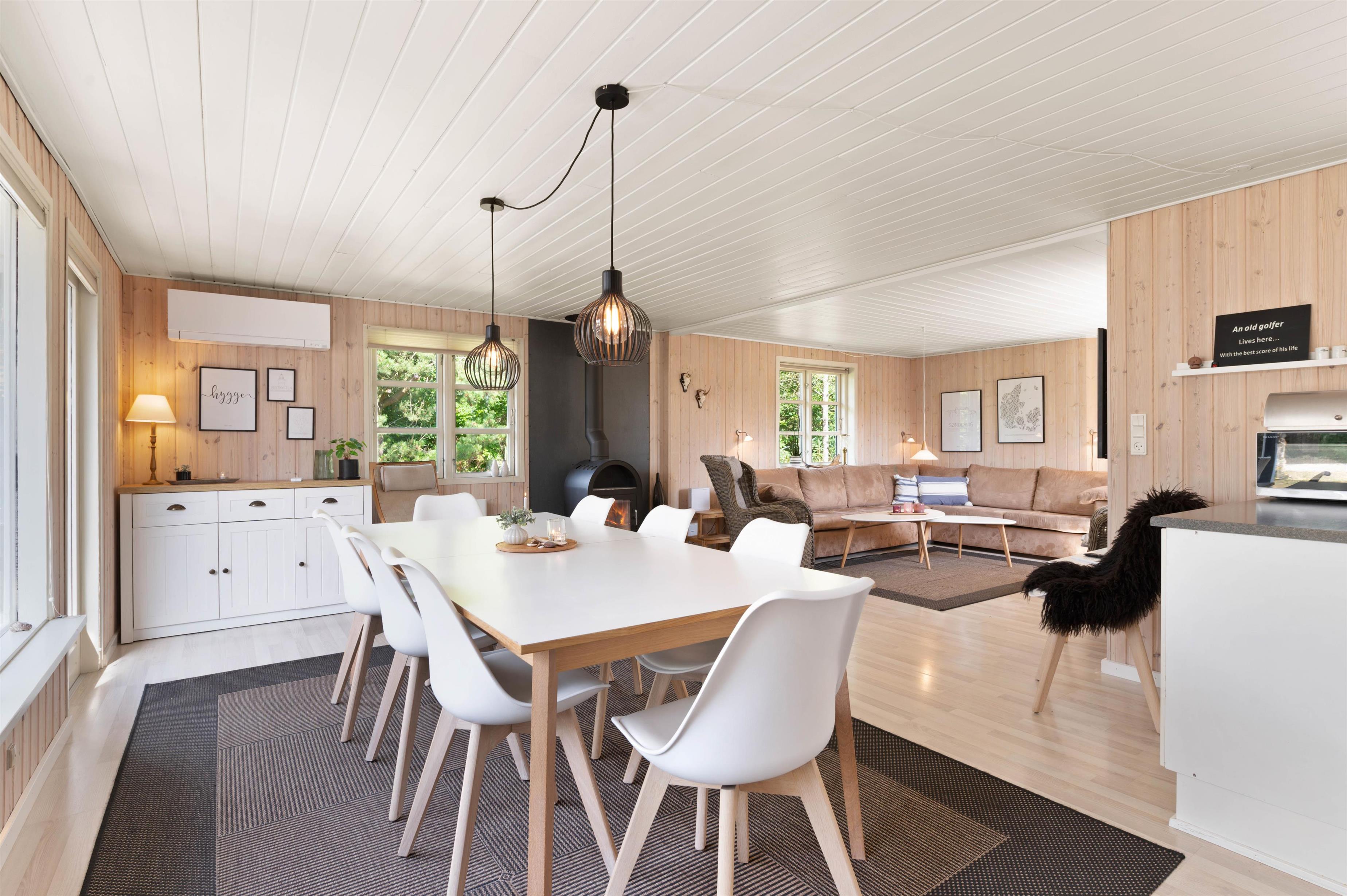 På Risbjergvej 21 er der lagt stor vægt på, at I skal føle jer hjemme. Indretningen er både lys og indbydende med masser af træelementer og en afbalanceret kombination af moderne møbler og klassisk sommerhuscharme med et hav af små, fine detaljer. Her kan I give jer selv lov til at koble helt fra og komme ned i gear. Tænd op i brændeovnen og lyt til de knitrende flammer, mens I slapper af på sofaen, eller sæt jer til rette i det boblende spabad eller den varme sauna og drøm jer langt væk fra den travle hverdag.