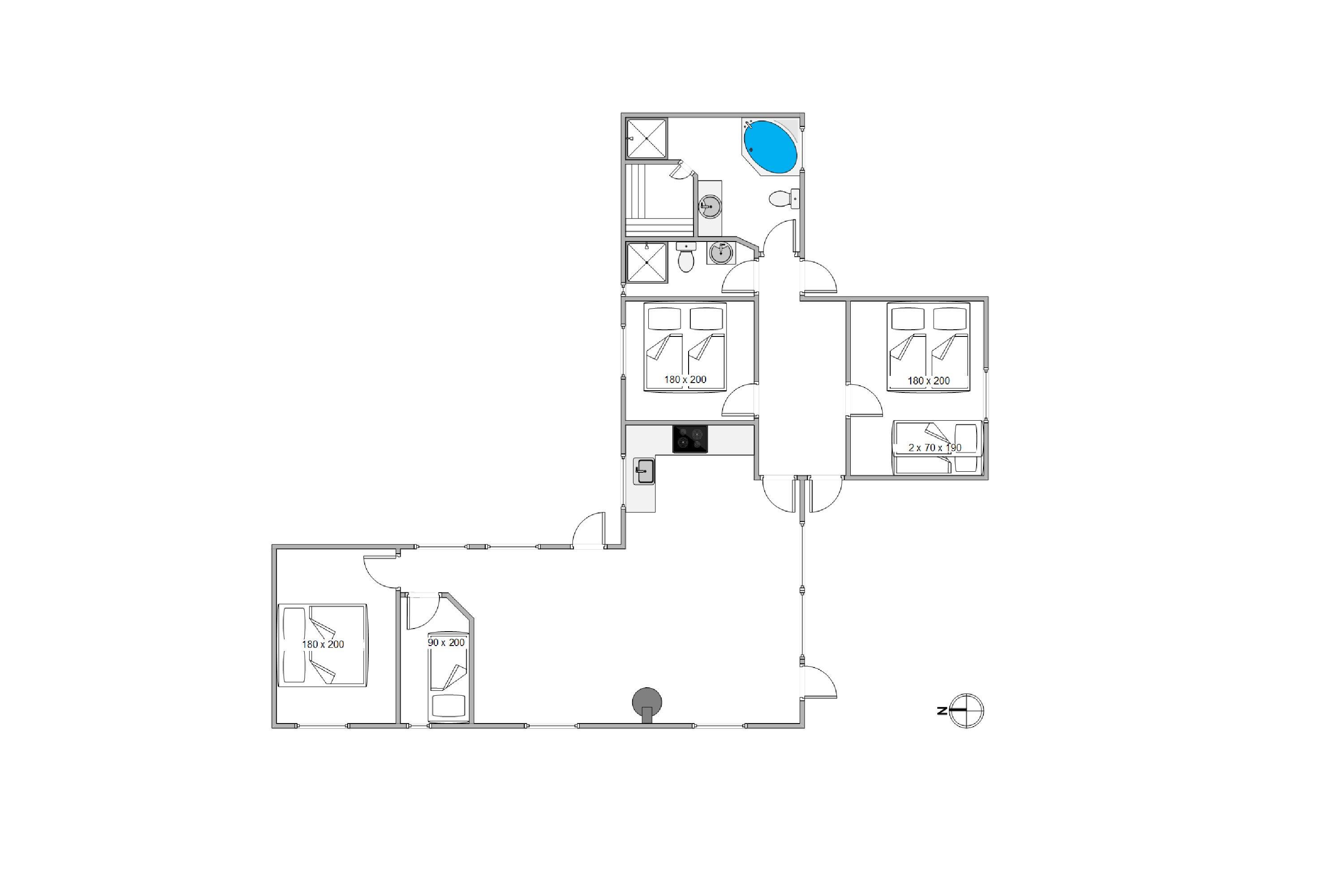 De i alt 114 m² rummer god plads til 6 personer, og der er sørget for flere praktiske faciliteter som opvaskemaskine, vaskemaskine, 2 badeværelser og en gratis internetforbindelse. Der er derfor masser af plads til jer alle, og mon ikke I alle kan finde netop jeres yndlingsspot.