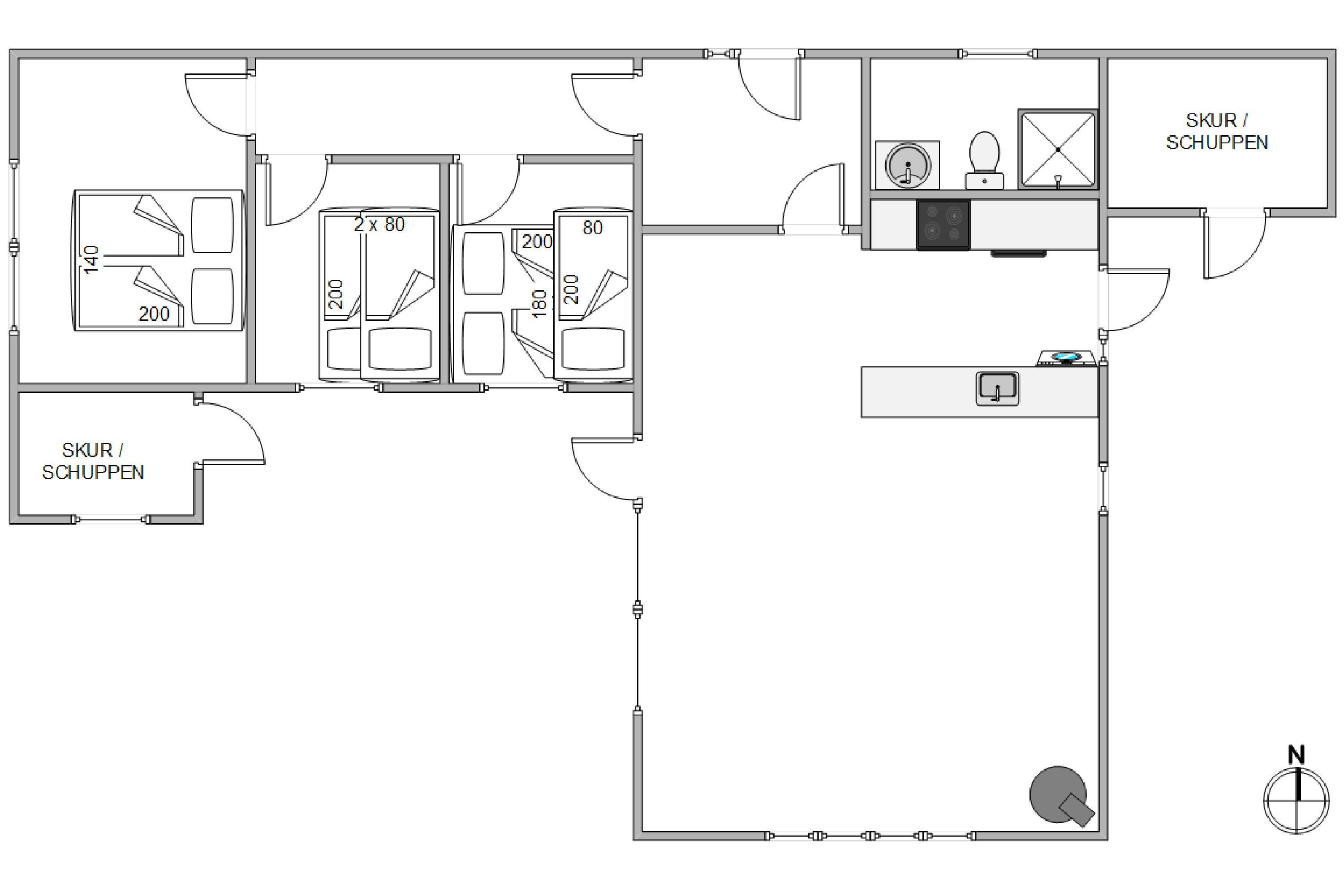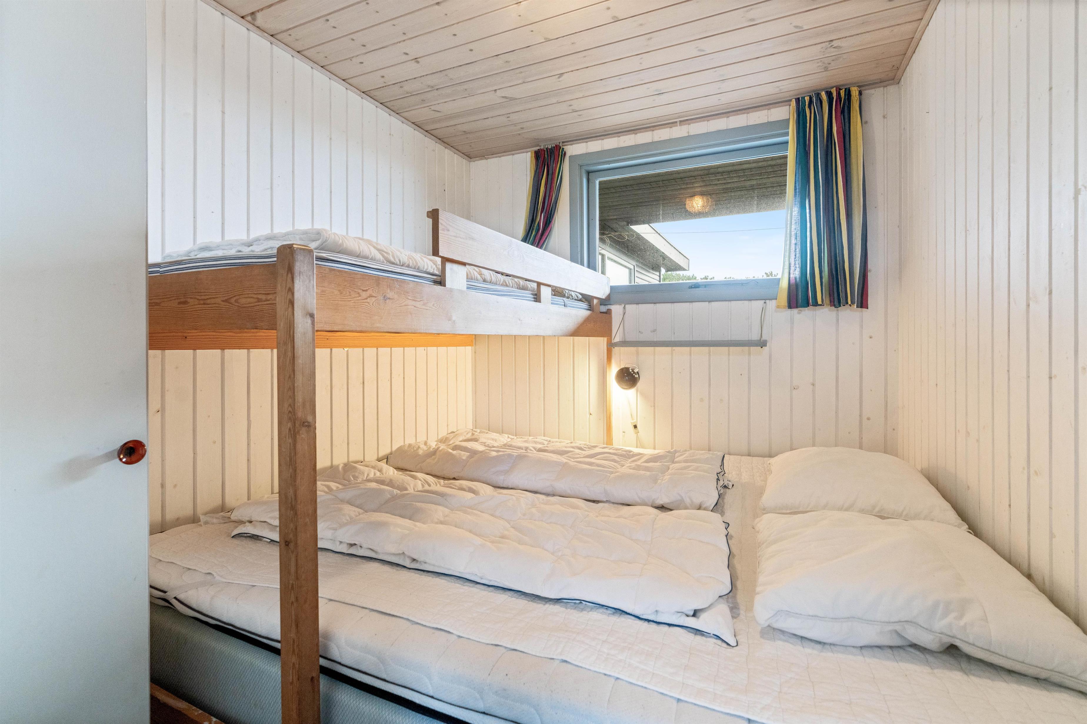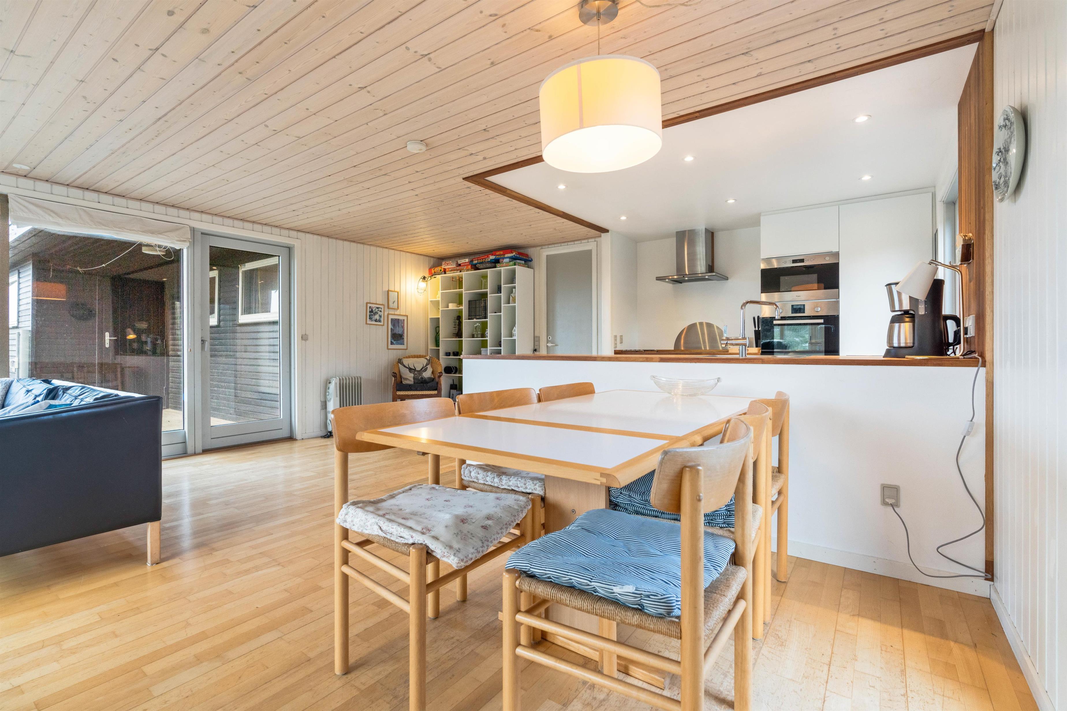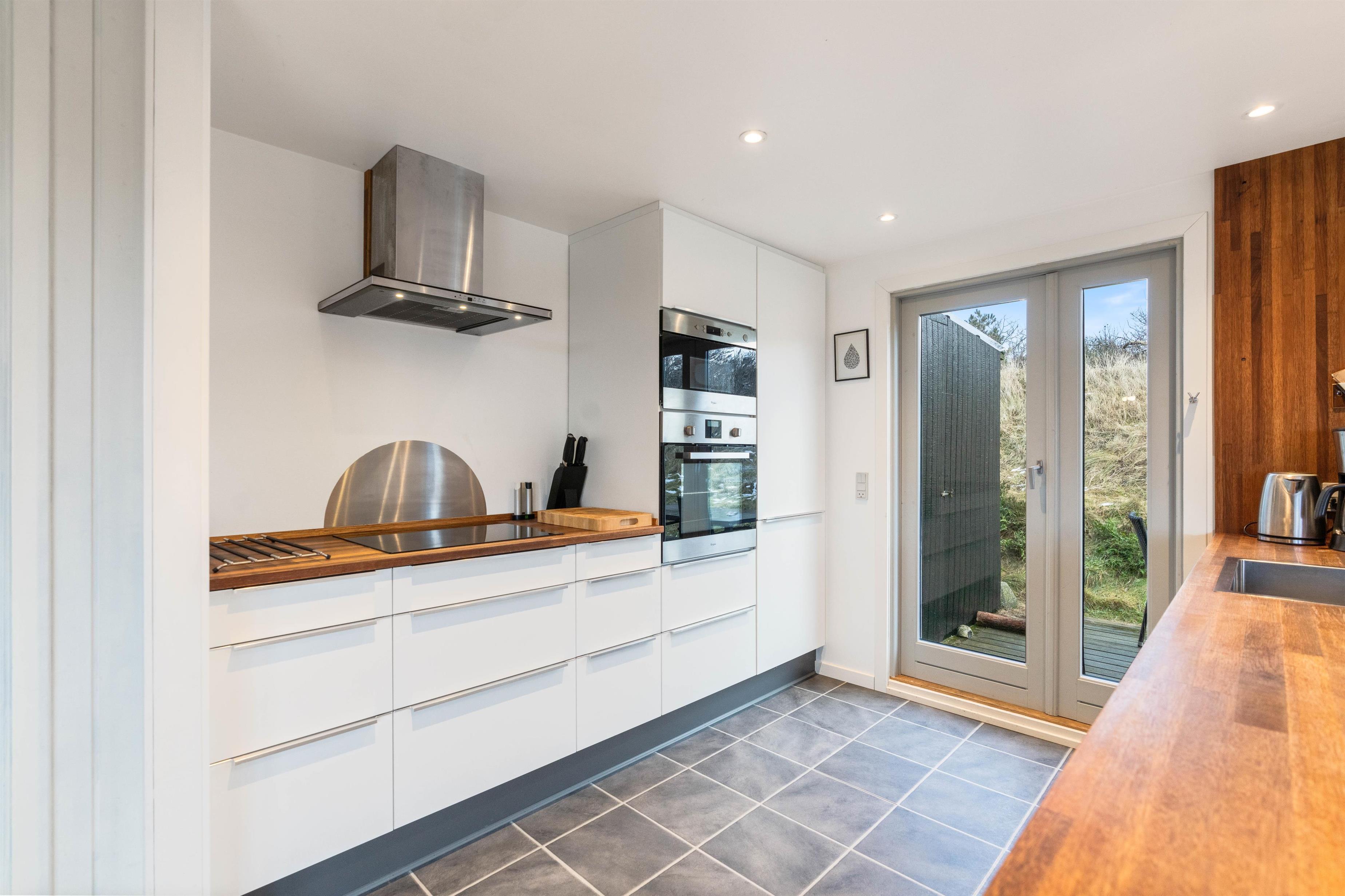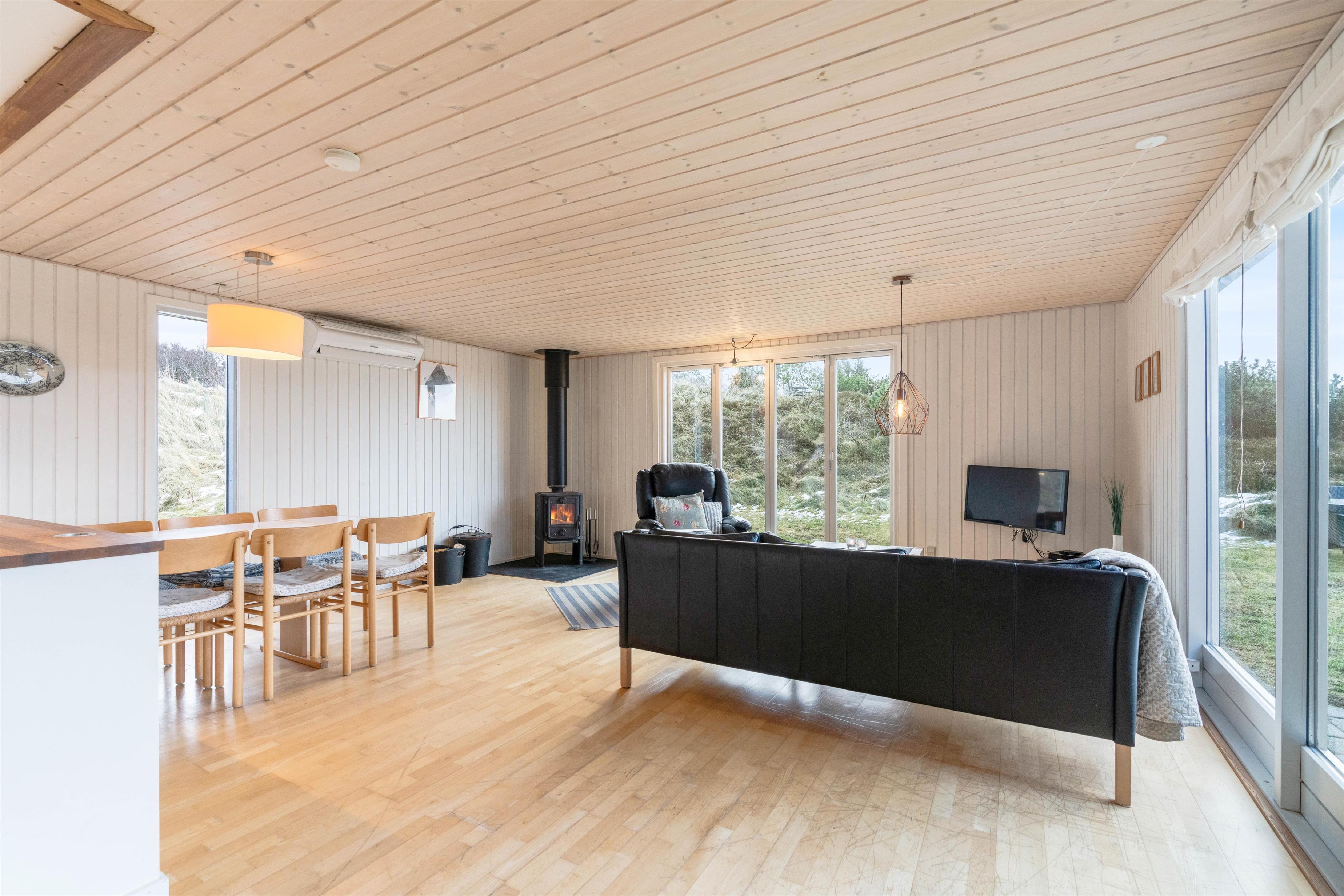 Feriehuset ligger lidt forhøjet så du kan nyde en flot udsigt til klitterne mod vest. Det strækker sig over 90 veludnyttede kvadratmeter, og har 3 fine værelser, hvilket giver jer god plads til at fordele jer i huset. Sommerhusets hjerte må dog siges at være det det hyggelige køkken-alrum, hvor hovedordene er hygge og velvære. Her er der nogle gode vinduespartier, der ikke mindst sørger for et godt lysindfald, men også sikrer at I har mulighed for at nyde den omkringliggende natur. Som et ekstra plus, kan I tænde op for brændeovnen, der ikke skal bruge lang tid på at sprede en masse god varme og en hyggelig atmosfære.