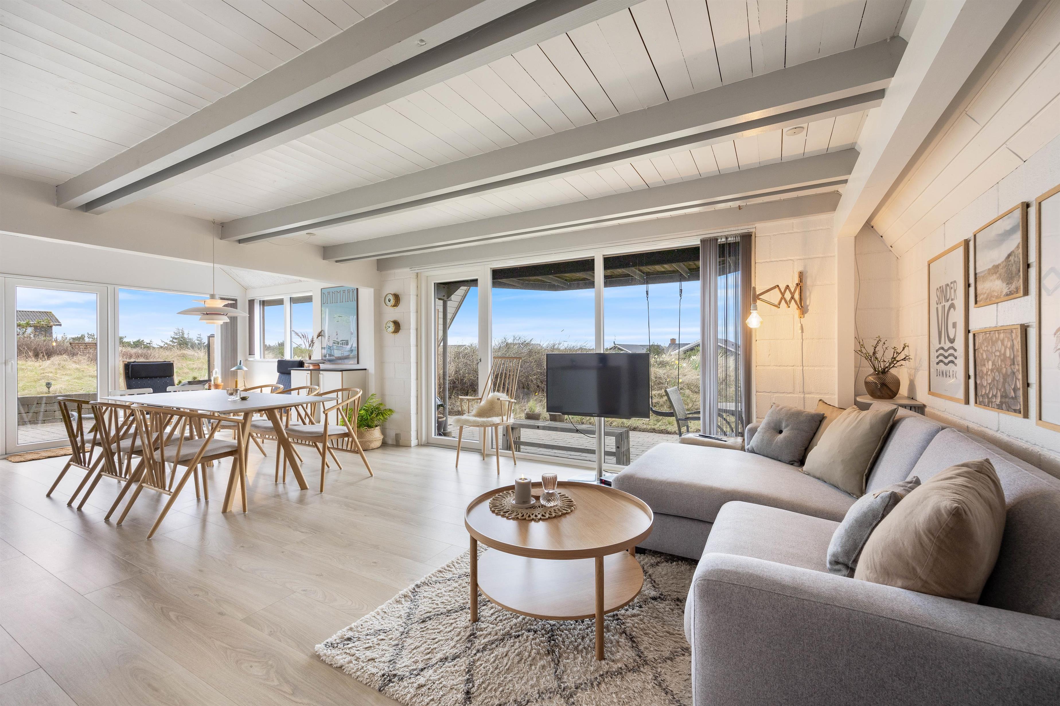 Både den kilometerlange strand og den nærmeste indkøbsmulighed ligger kun fem minutters kørsel fra sommerhuset. Er I friske på shopping og aktiviteter, kan I tage en tur til den populære ferieby Søndervig, der kun ligger et par kilometer væk.