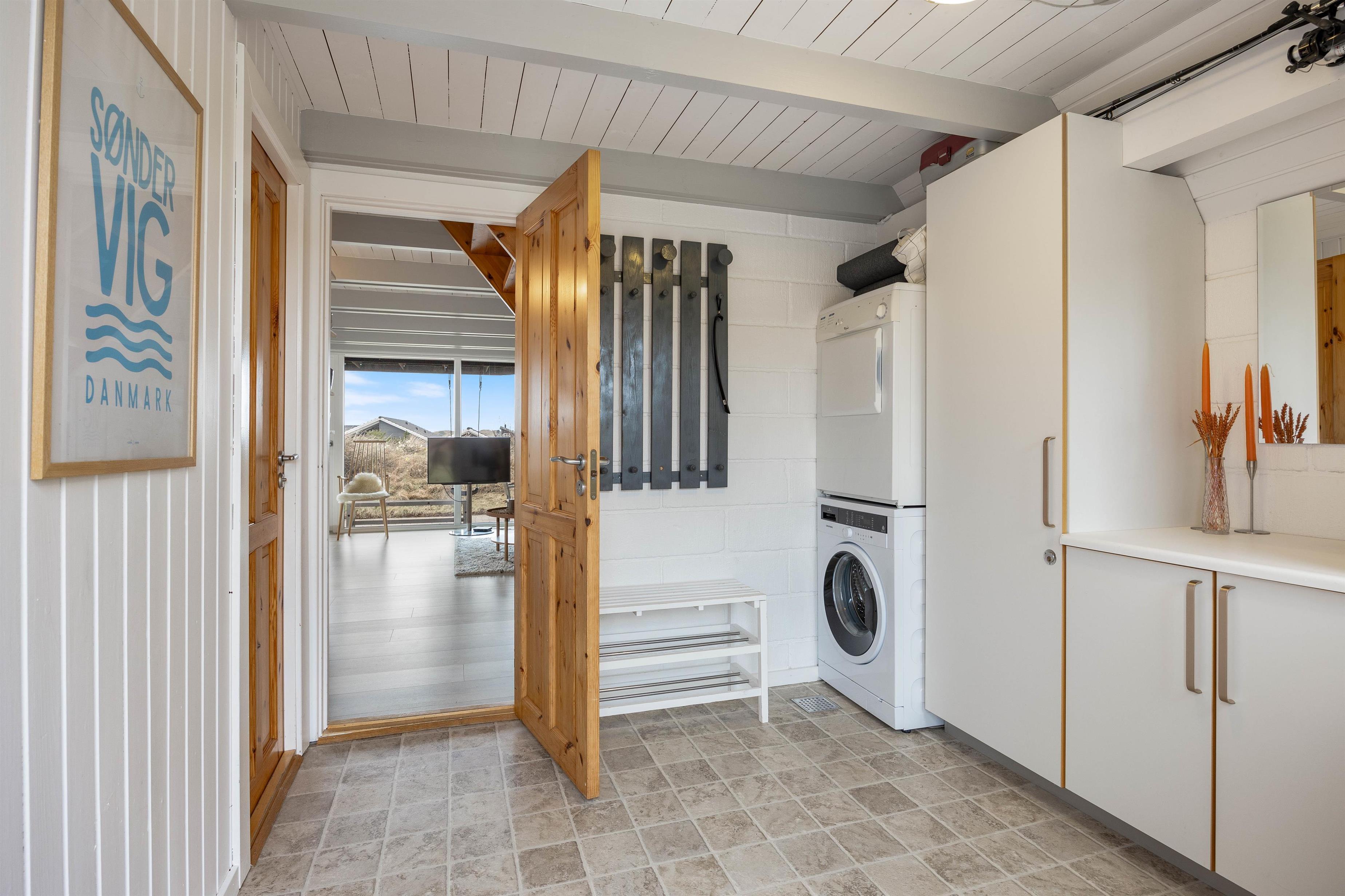 Dertil kommer et badeværelse, et soveværelse og et praktisk bryggers med både vaskemaskine og tørretumbler.