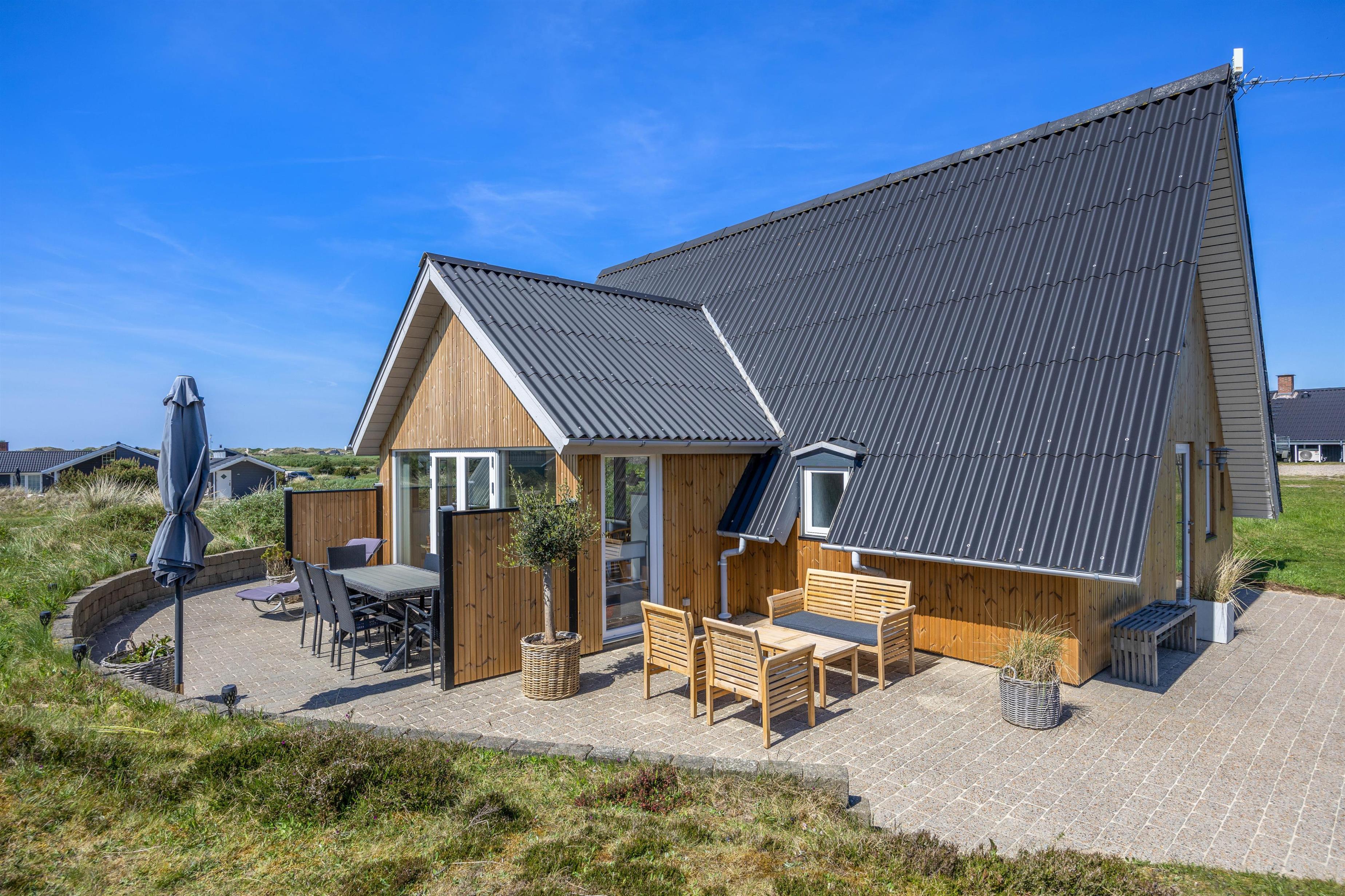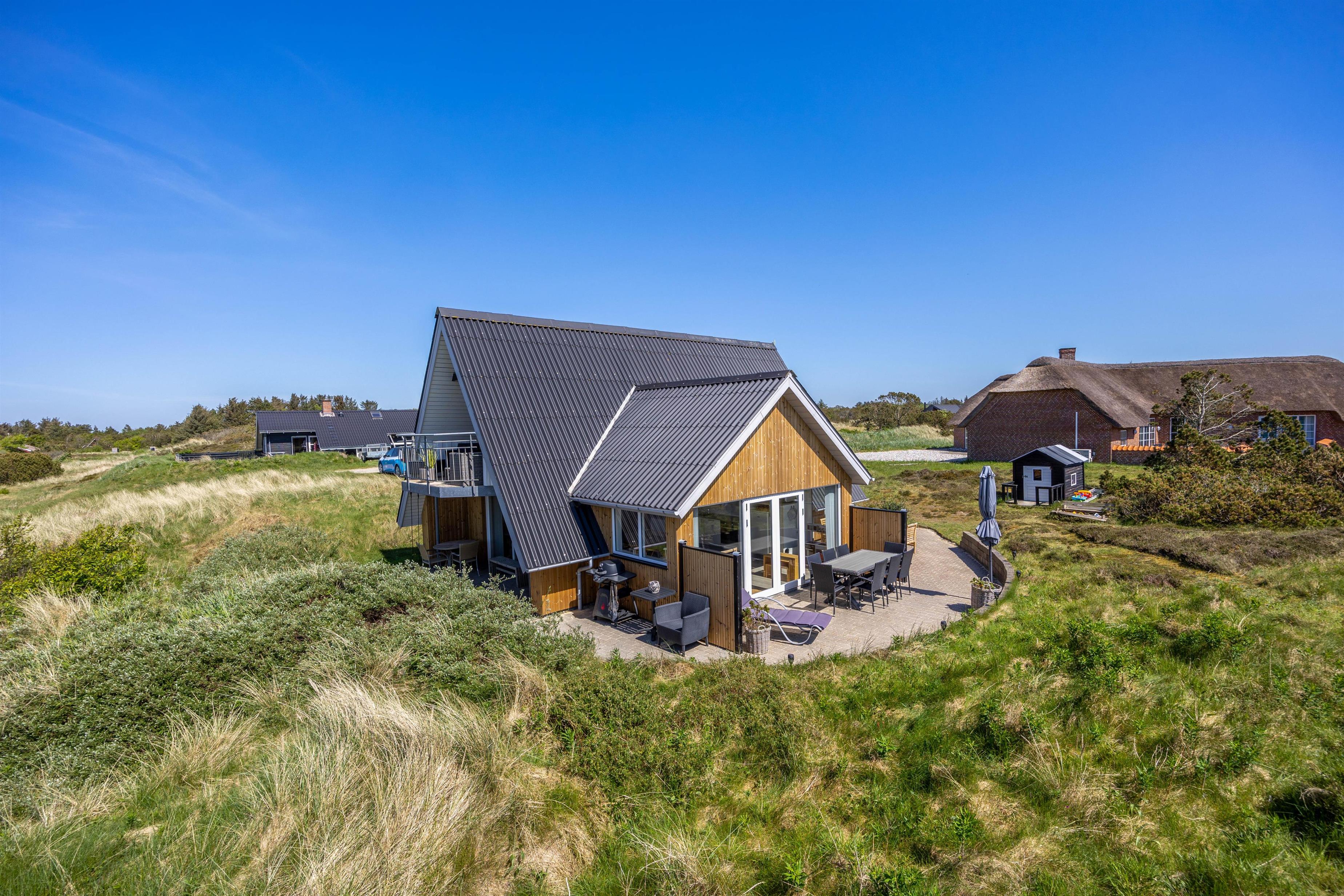 Sommerhuset på Lærkealle 7 danner de perfekte rammer for en skøn ferie ved Vesterhavet fyldt med muligheder for at nyde den vestjyske natur. Det renoverede sommerhus fra 2024 byder på en lys og hyggelig indretning, og fra første sal er der udgang til en altan med fantastisk udsigt over ferieområdet og klitlandskabet. Både strand og indkøb ligger kun få minutters kørsel fra sommerhuset.