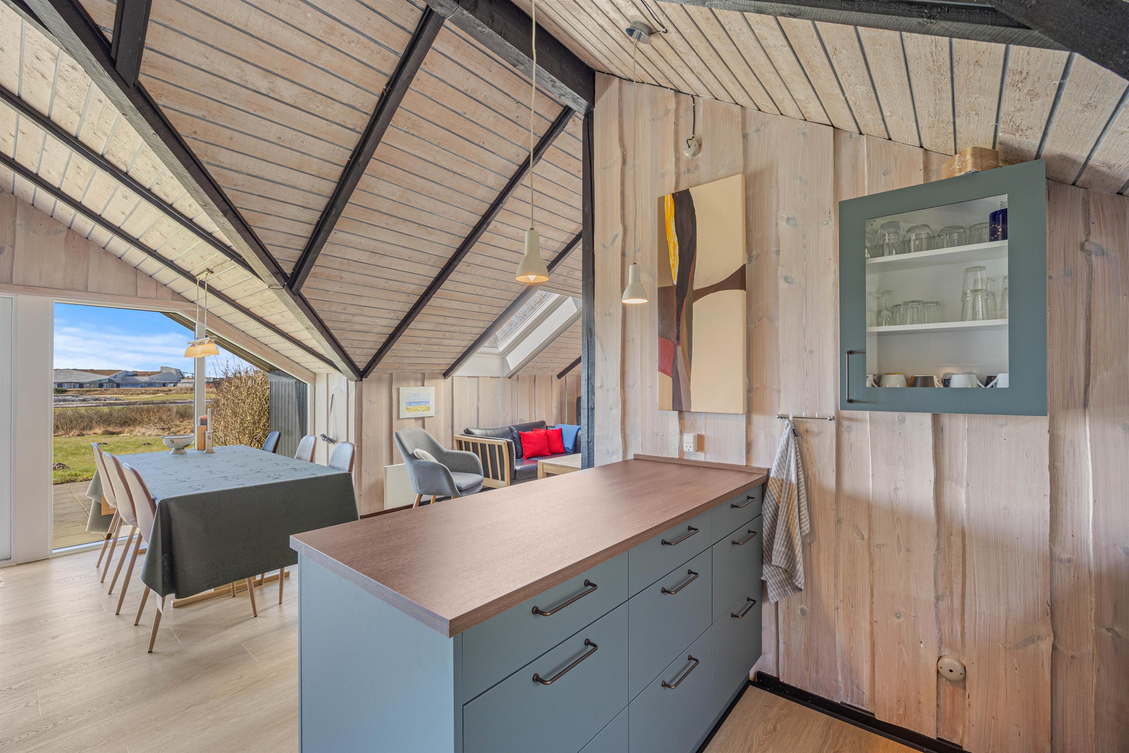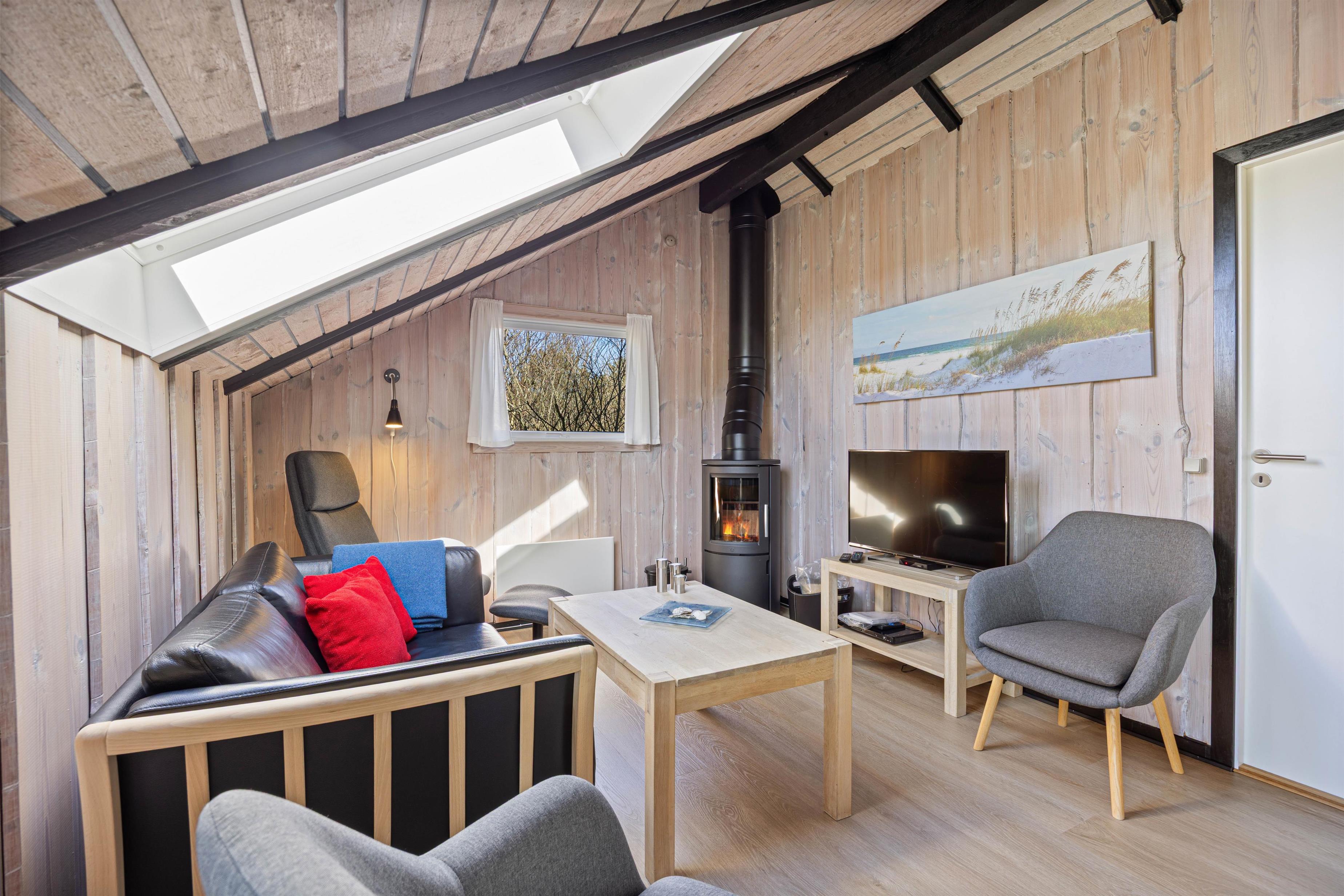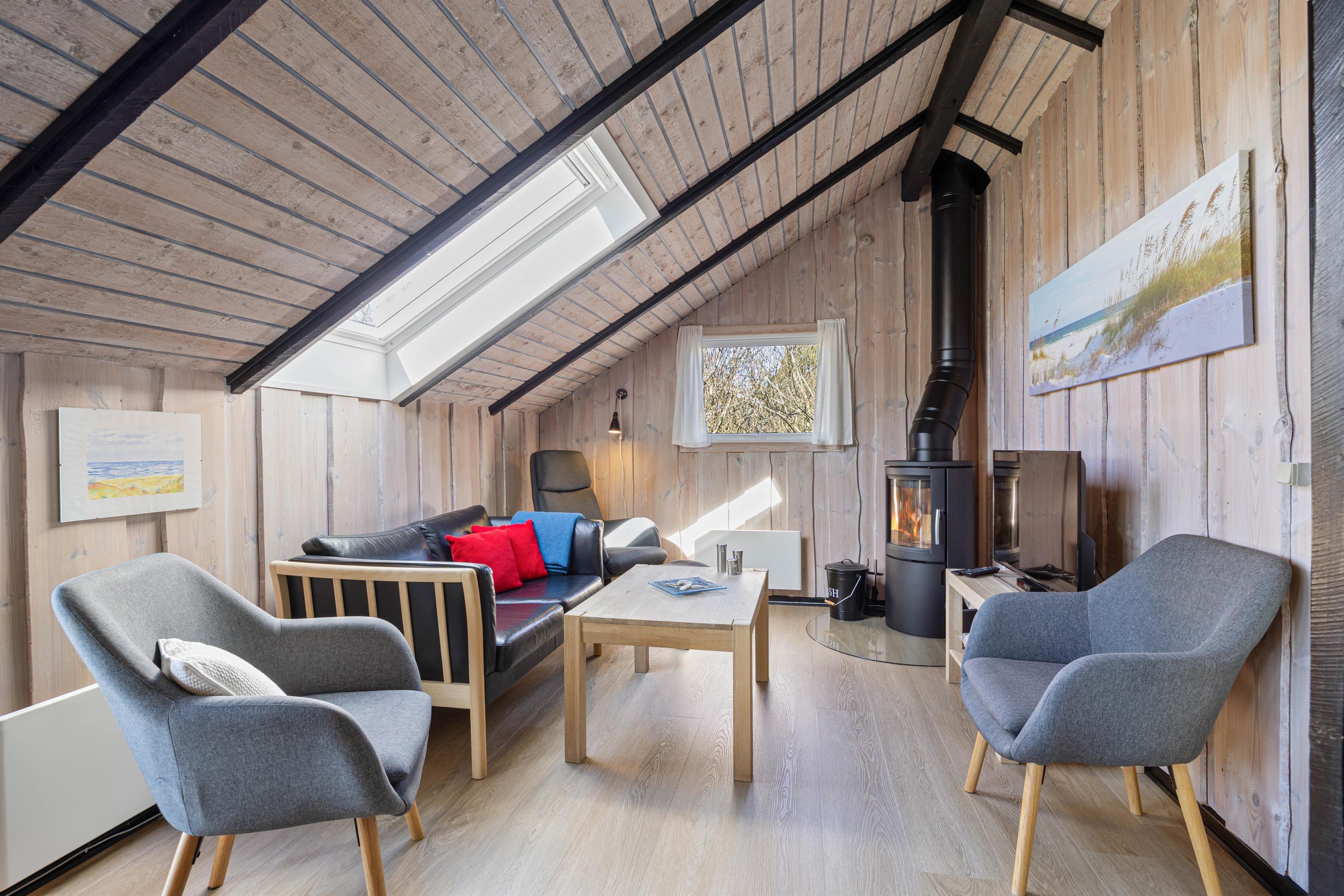 I det hyggelige og nyrenoveret køkken kan store og små lave mad sammen om køkkenøen, og oprydningen klares nemt med hjælp fra opvaskemaskinen. De forskellige siddekroge i huset giver alle feriegæster mulighed for at trække sig lidt tilbage eller at starte et fælles brætspil ved et af bordene. For ekstra hygge kan I tænde op for brændeovnen, og mærke varmen brede sig i hele sommerhuset.