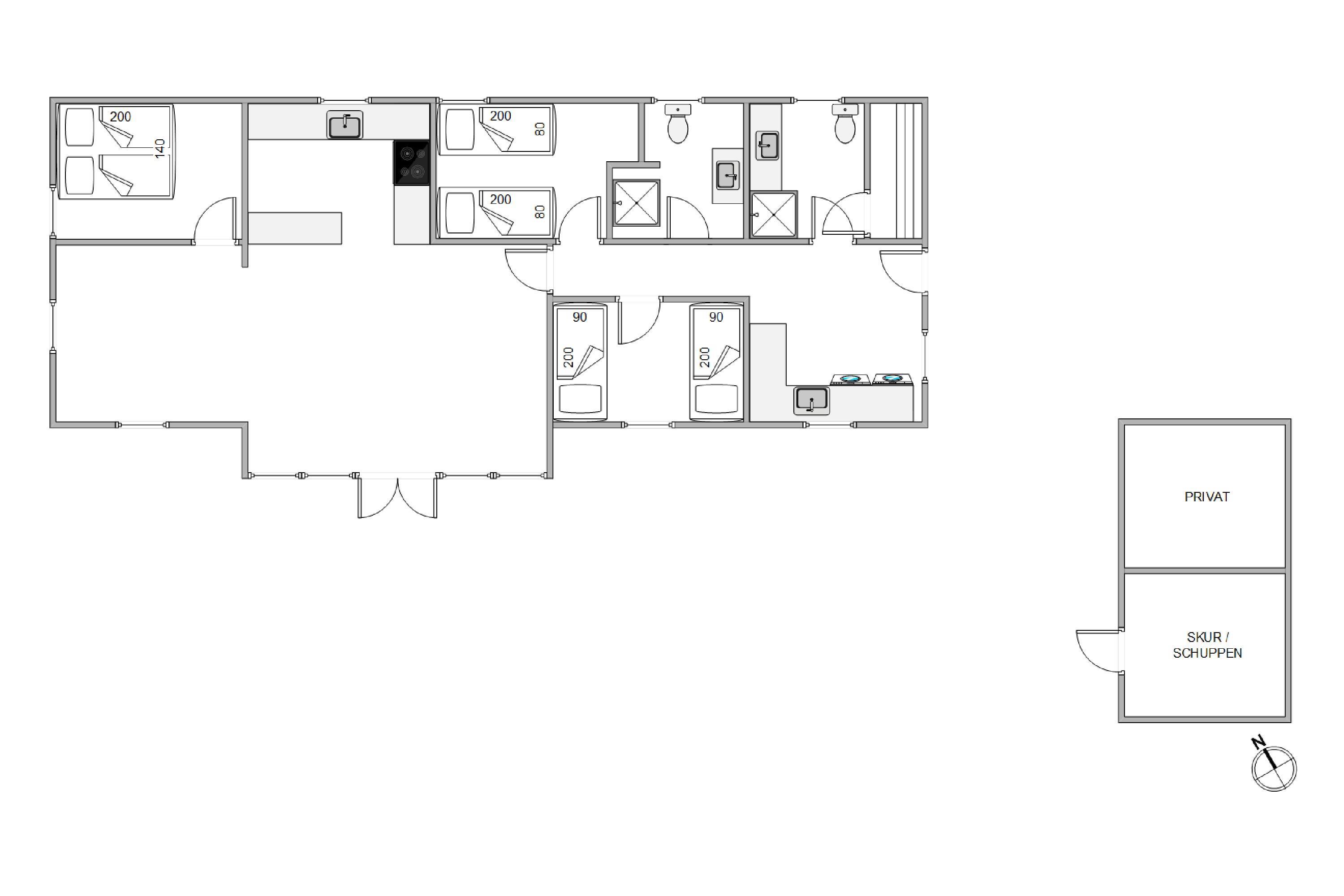 På sommerhusets 85 m2 er der 2 badeværelser og 3 soverum med en dobbeltseng og fire enkeltsenge. I husets bryggers står en vaskemaskine og tørretumbler klar til at ordne tøjvasken for jer under ferien. Imens kan I nyde varmen i saunaen, som året rundt varmer hele kroppen op med en dejlig feriestemning.