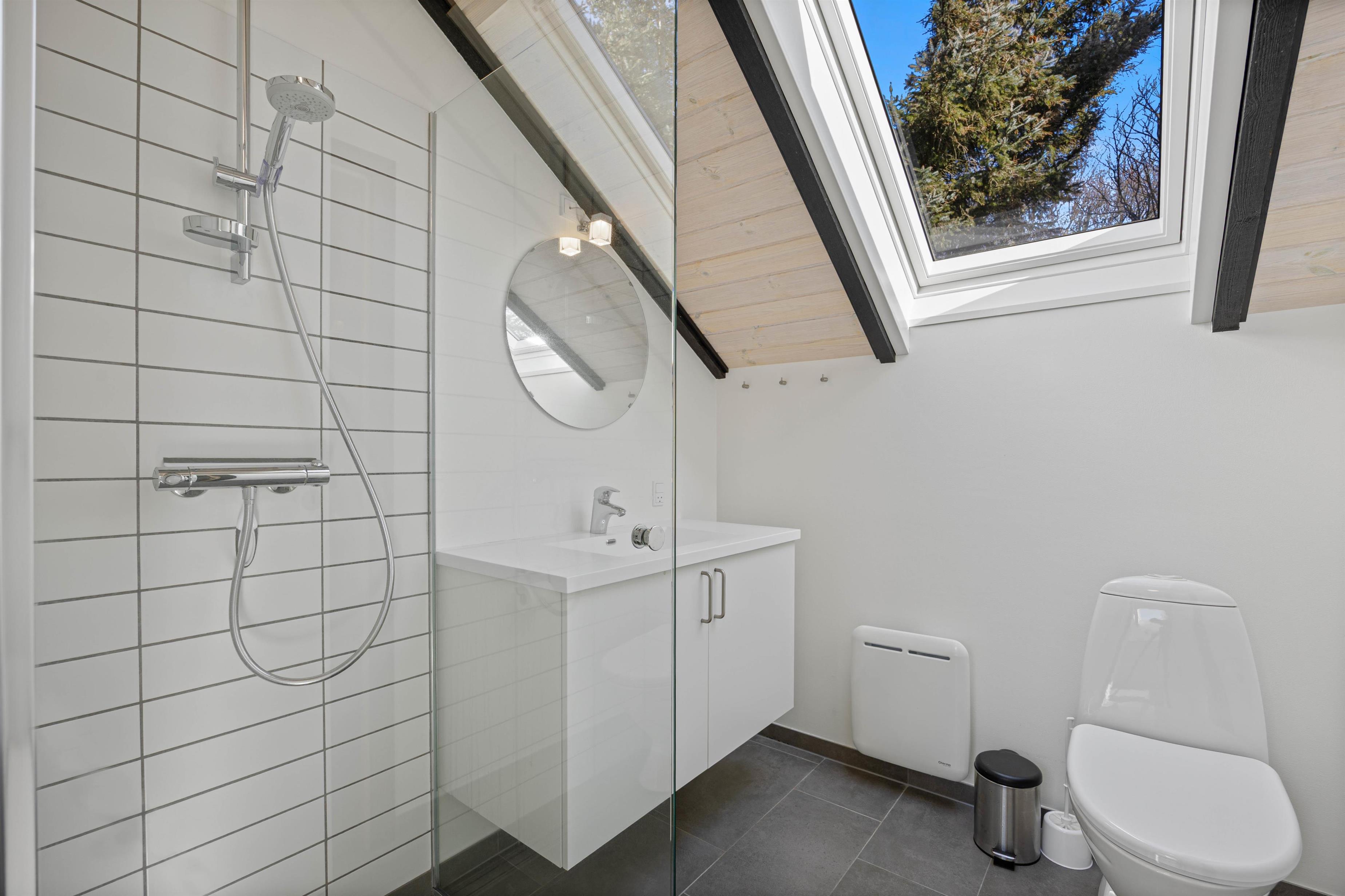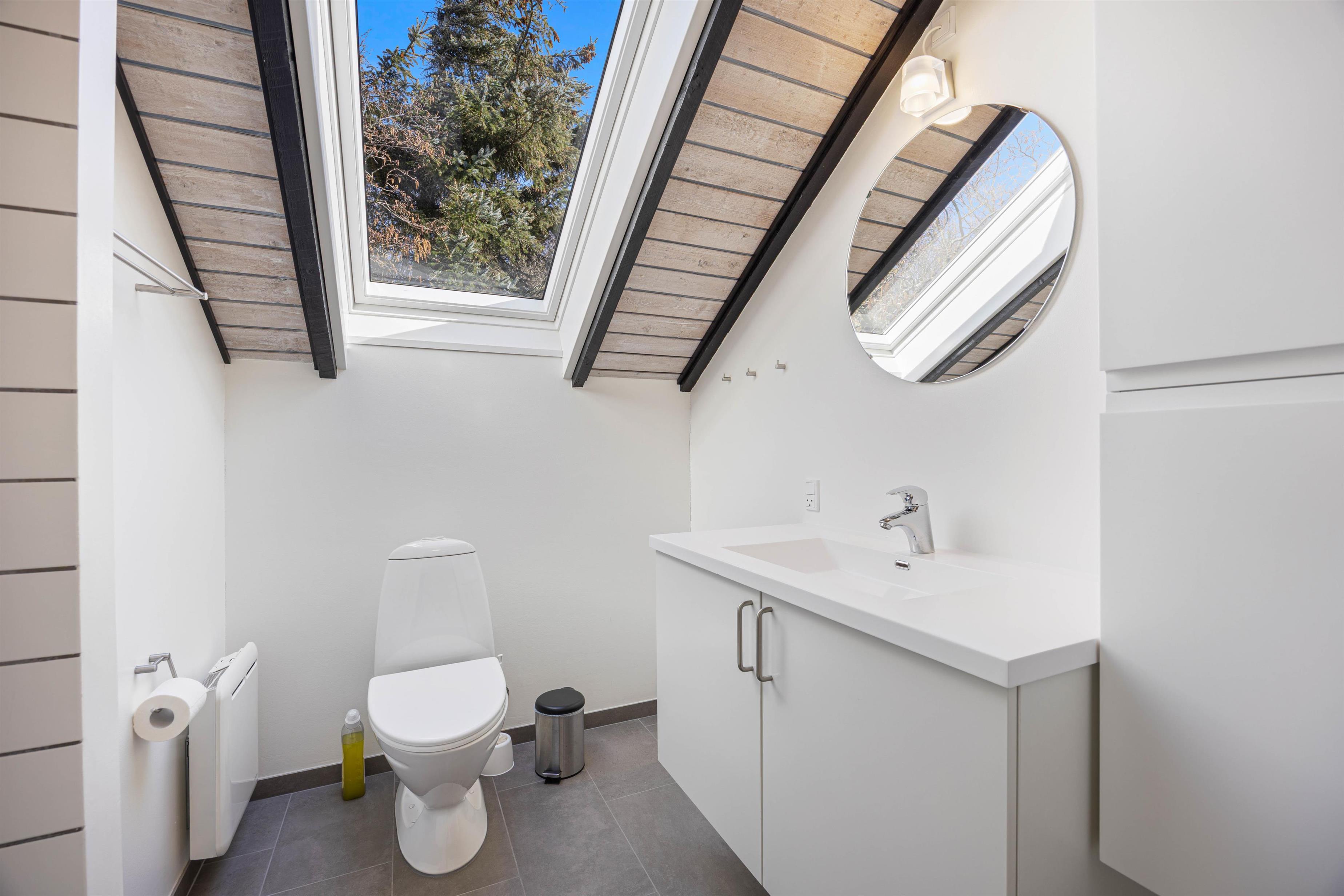 Terrassen foran huset er det perfekte sted at nyde solen på liggestolene. I kan flytte rundt på terrassen langs huset for at få både morgen- og aftensolen med. På den 2730 m2 store grund finder I også et skjult siddehjørne blandt buskene. Børnene kan tumle sig på den store græsplæne, udforske naturgrunden eller flyve højt til vejrs på gyngerne.