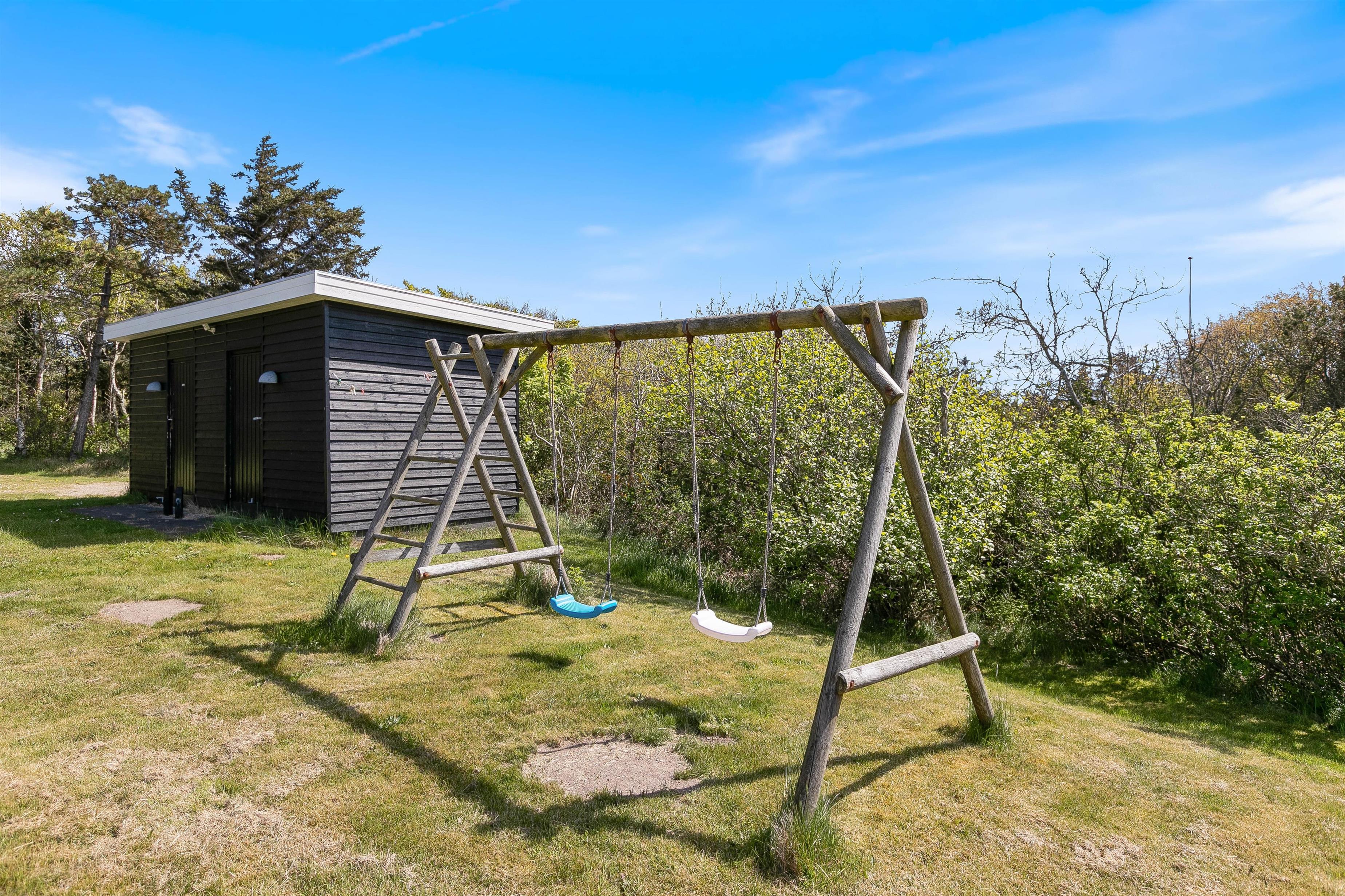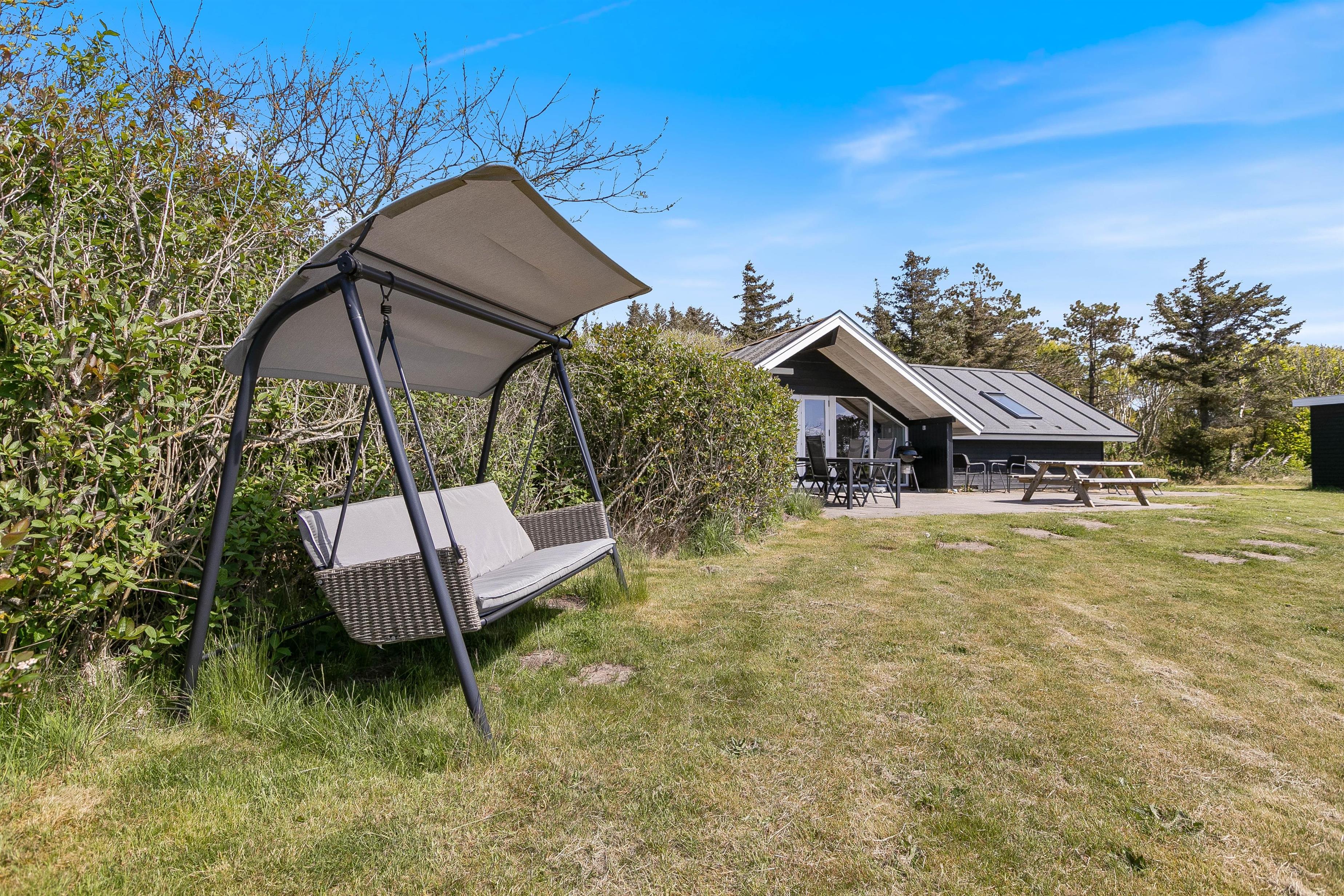 På Lodbjerg Hede på en grøn naturgrund kan I med op til 6 personer og 1 hund holde ferie i dette stilfulde sommerhus. Feriehuset blev renoveret i 2019 og kombinerer i sit nye interiør den klassiske sommerhusstemning med en moderne indretning. Huset har både opvaskemaskine, vaskemaskine og tørretumbler og gynger til børnene.