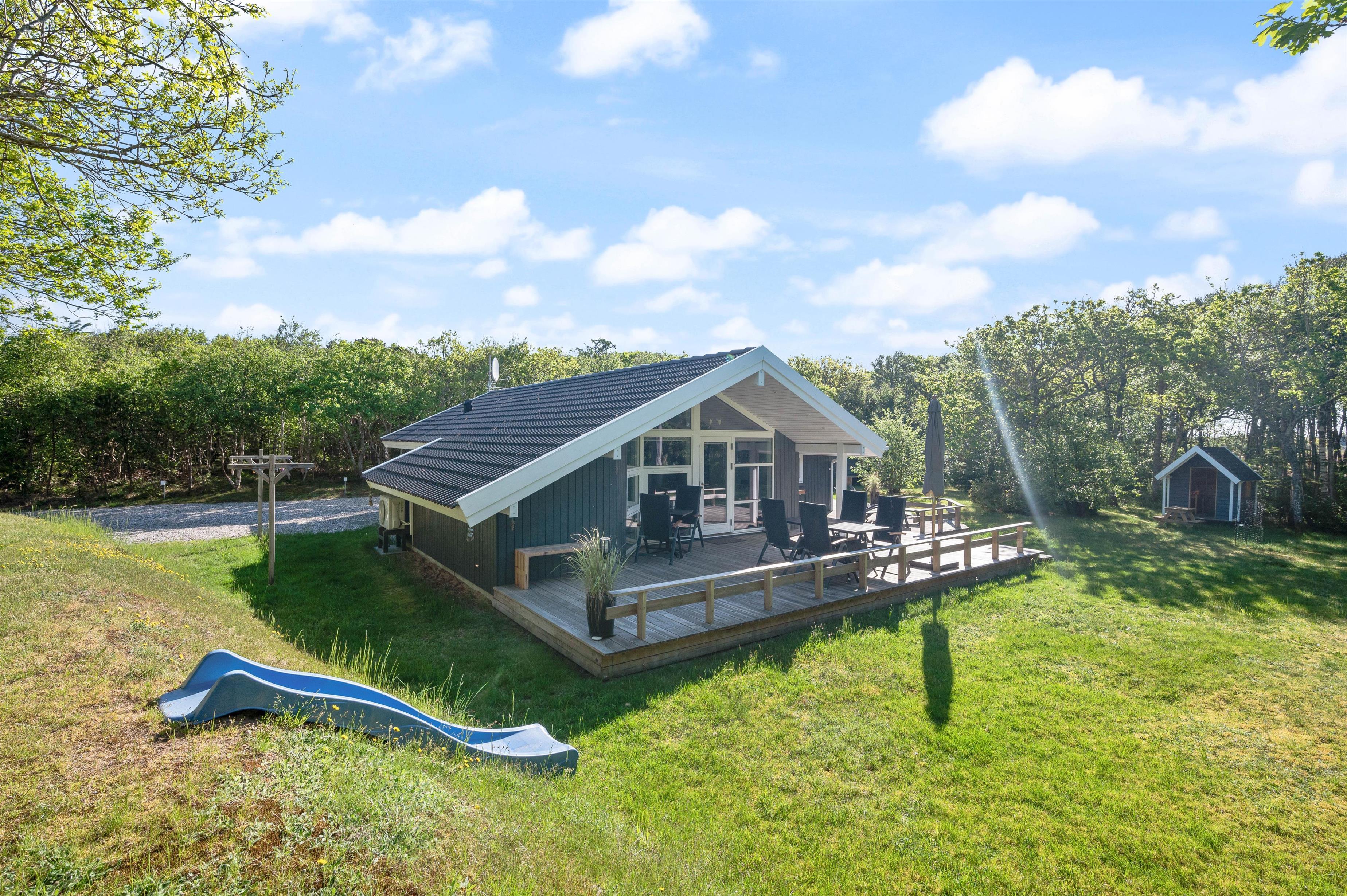 Den smukke naturgrund udgør på alle måder den perfekte ramme for leg og aktivitet i ferien. Ikke alene ligger den behagelig ugeneret, men haven byder også på mange udfoldelsesmuligheder for familiens yngste. Foruden en stor græsplæne består haven af hyggelige rum, hvor børnene kan boltre sig. I finder også et gyngestativ og en sandkasse på grunden, der med garanti vil vække stor begejstring hos de små.