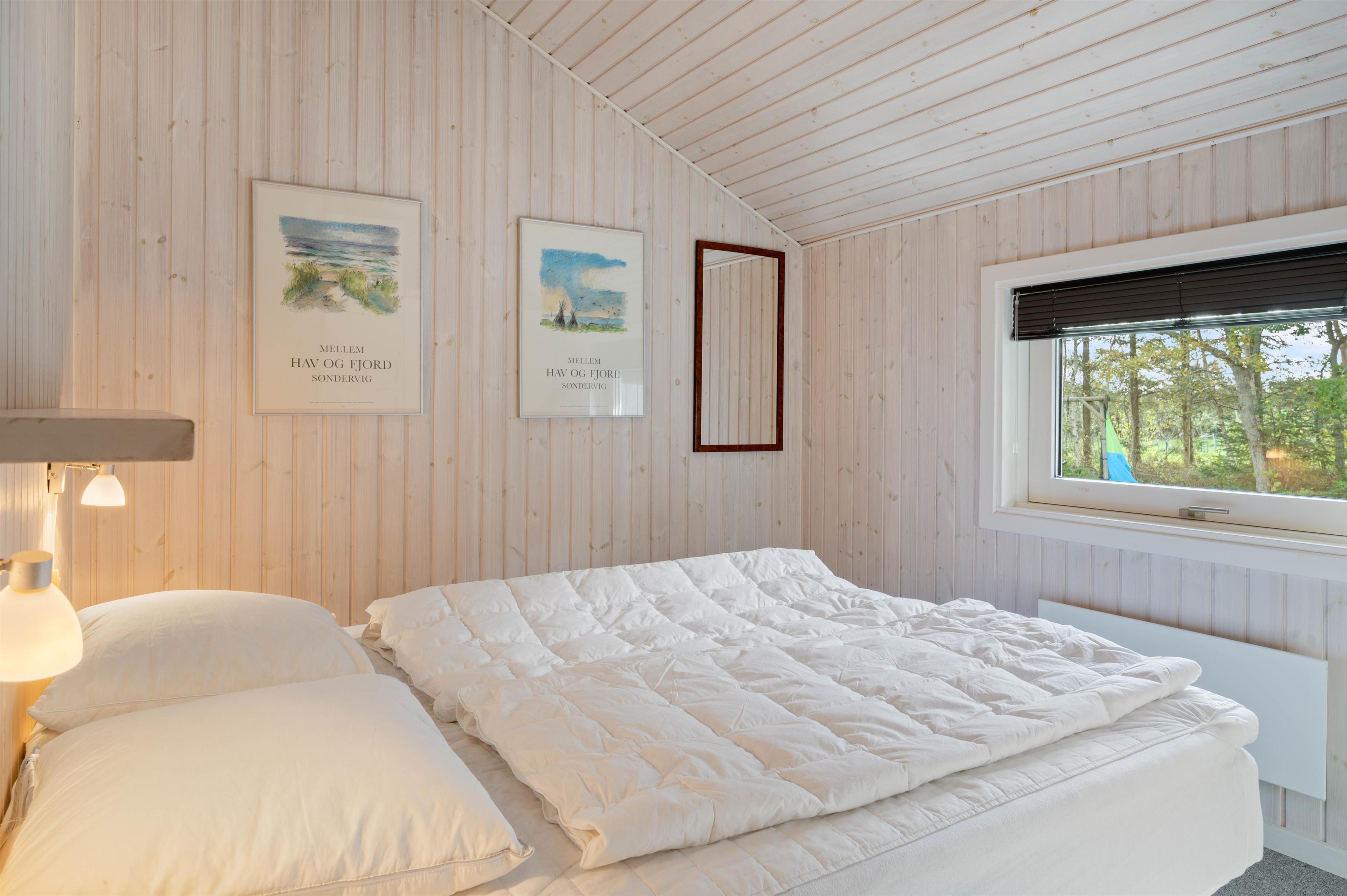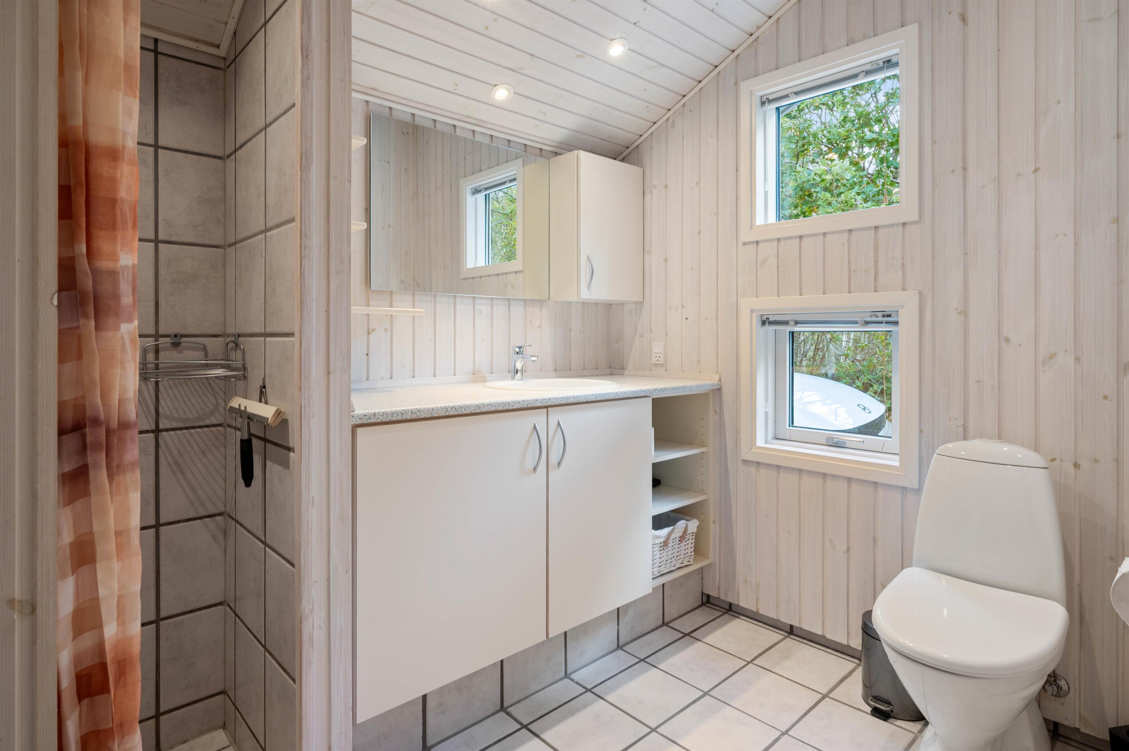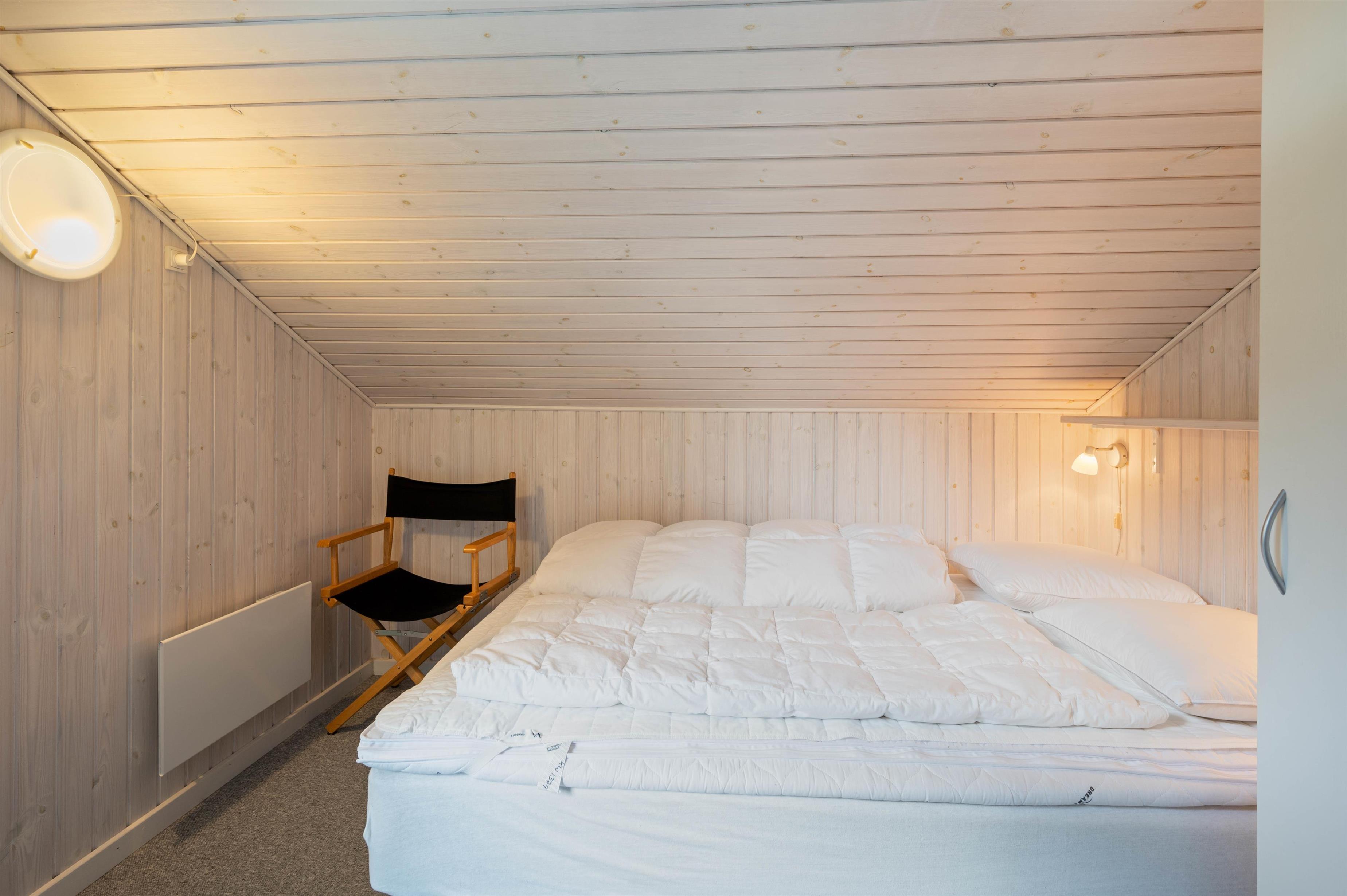 Der findes i alt 4 værelser i sommerhuset. I kan derfor uden problemer invitere bedsteforældrene med på jeres ferie. 3 af værelserne er indrettet med dobbeltsenge, mens det sidste værelse består af 2 enkeltsenge. Vægge og lofter på værelserne er ligesom resten af sommerhuset beklædt med lyse paneler, der bidrager til den hyggelige sommerhusstemning. Herudover har sommerhuset et skønt badeværelse med bruseniche og opvarmet gulv.