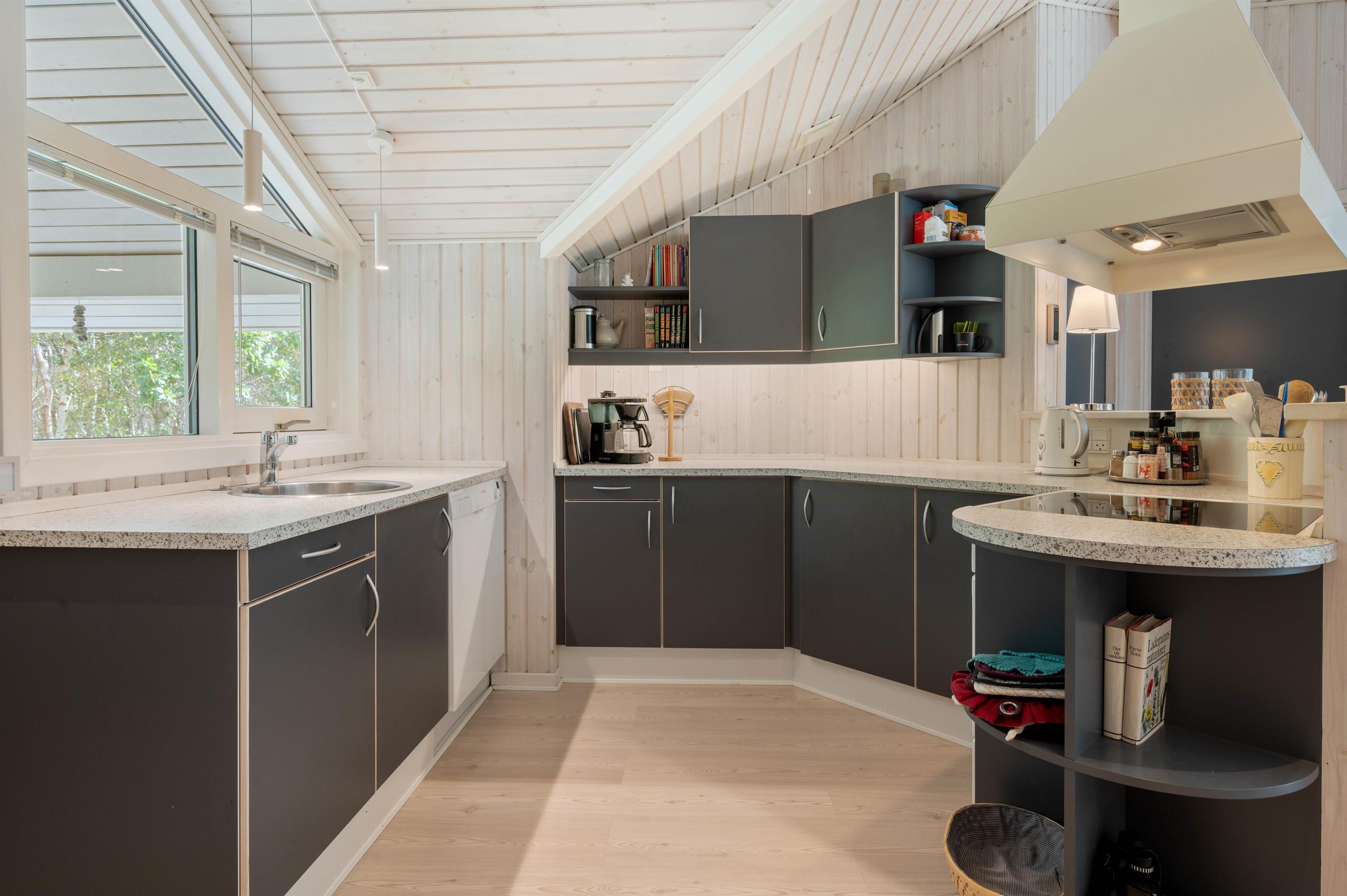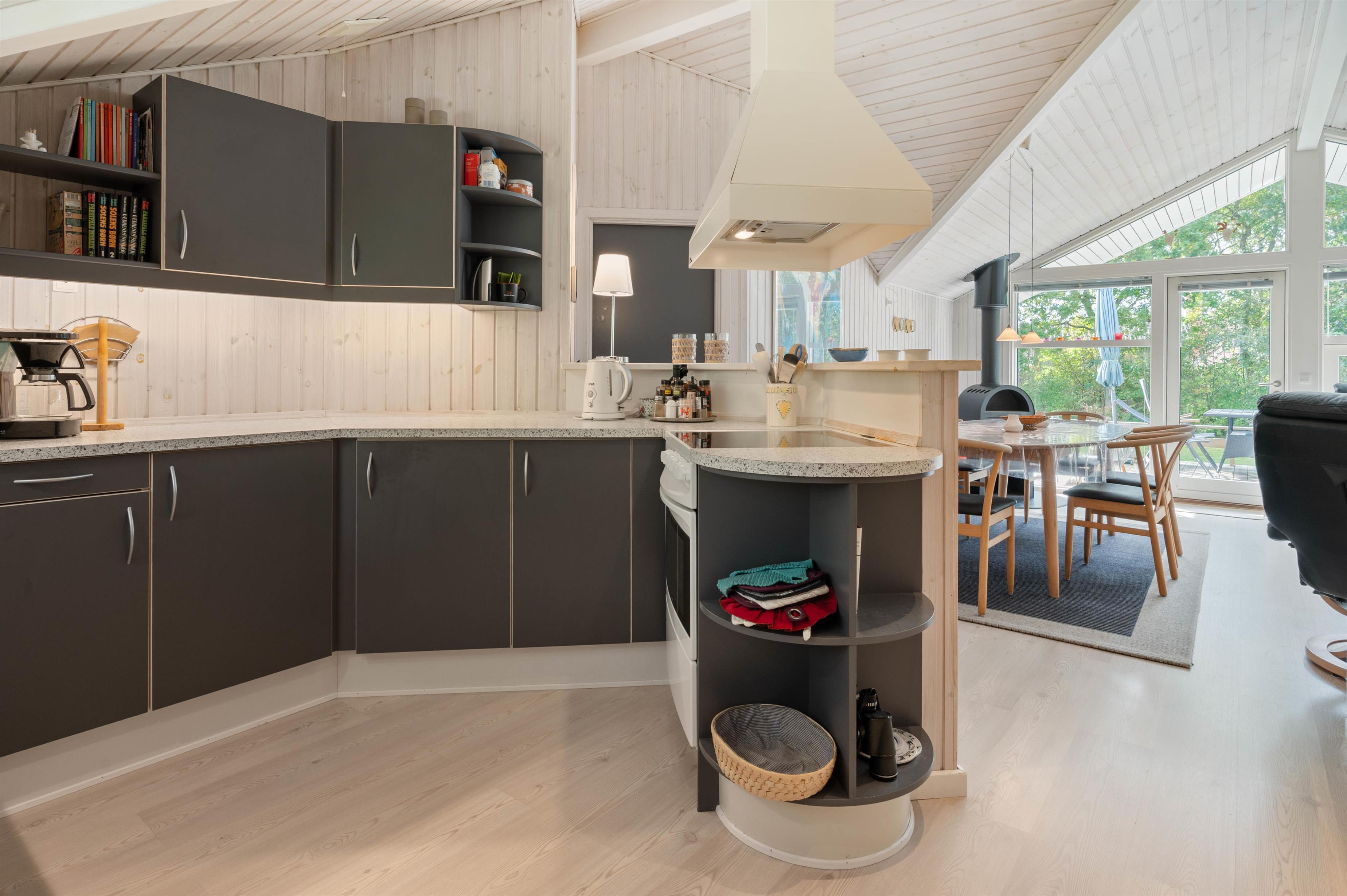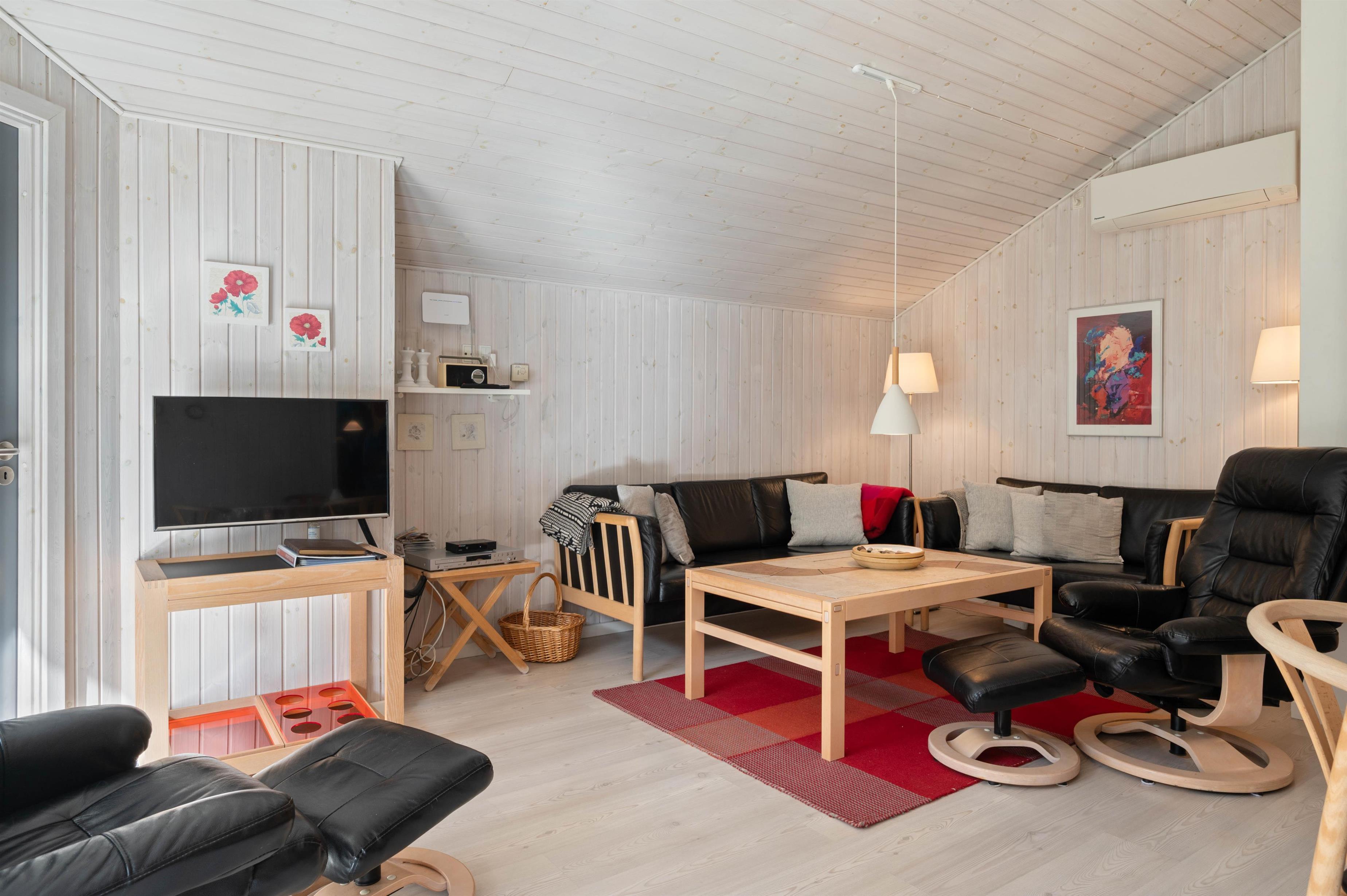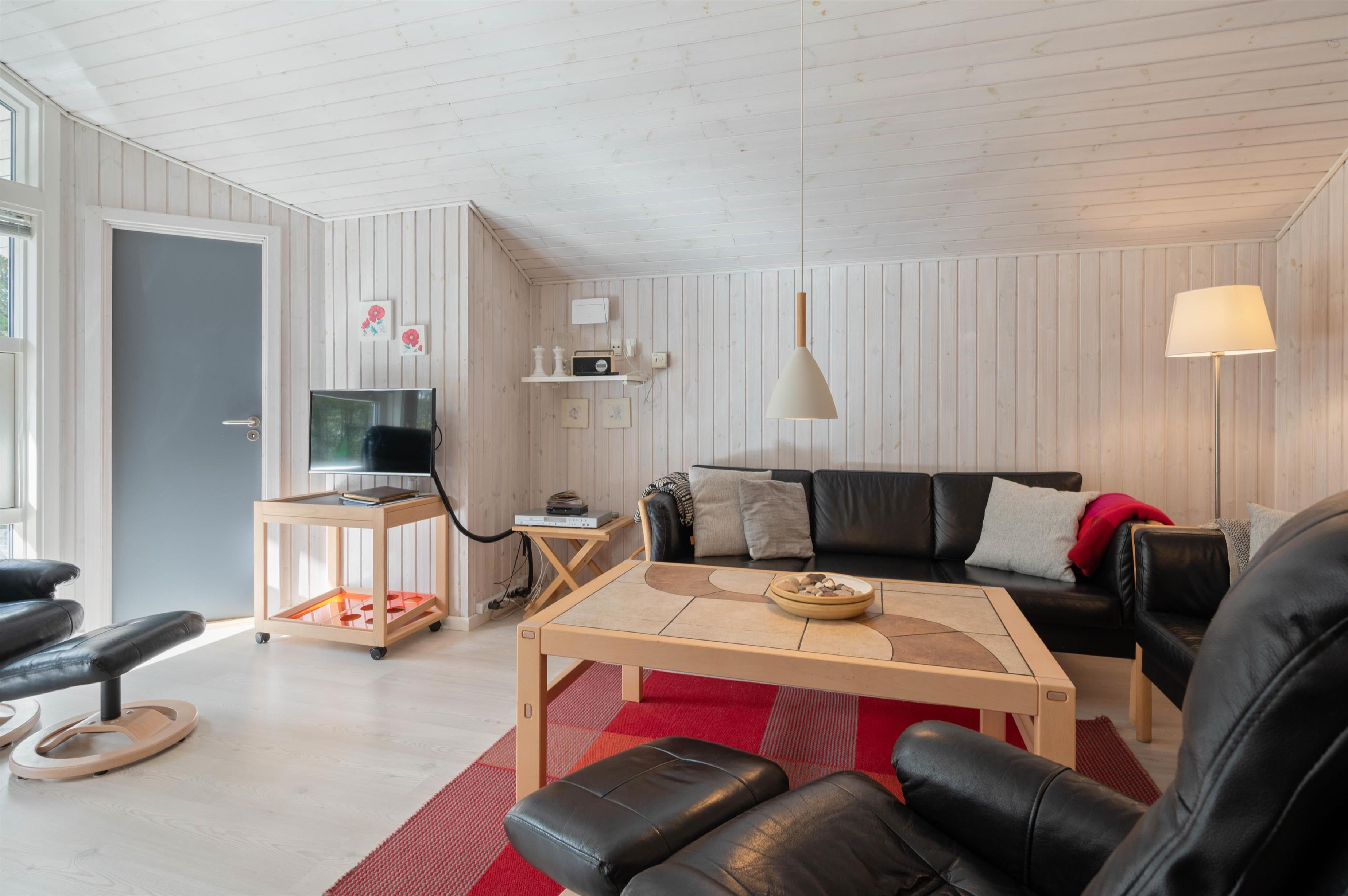 Der findes i alt 4 værelser i sommerhuset. I kan derfor uden problemer invitere bedsteforældrene med på jeres ferie. 3 af værelserne er indrettet med dobbeltsenge, mens det sidste værelse består af 2 enkeltsenge. Vægge og lofter på værelserne er ligesom resten af sommerhuset beklædt med lyse paneler, der bidrager til den hyggelige sommerhusstemning. Herudover har sommerhuset et skønt badeværelse med bruseniche og opvarmet gulv.