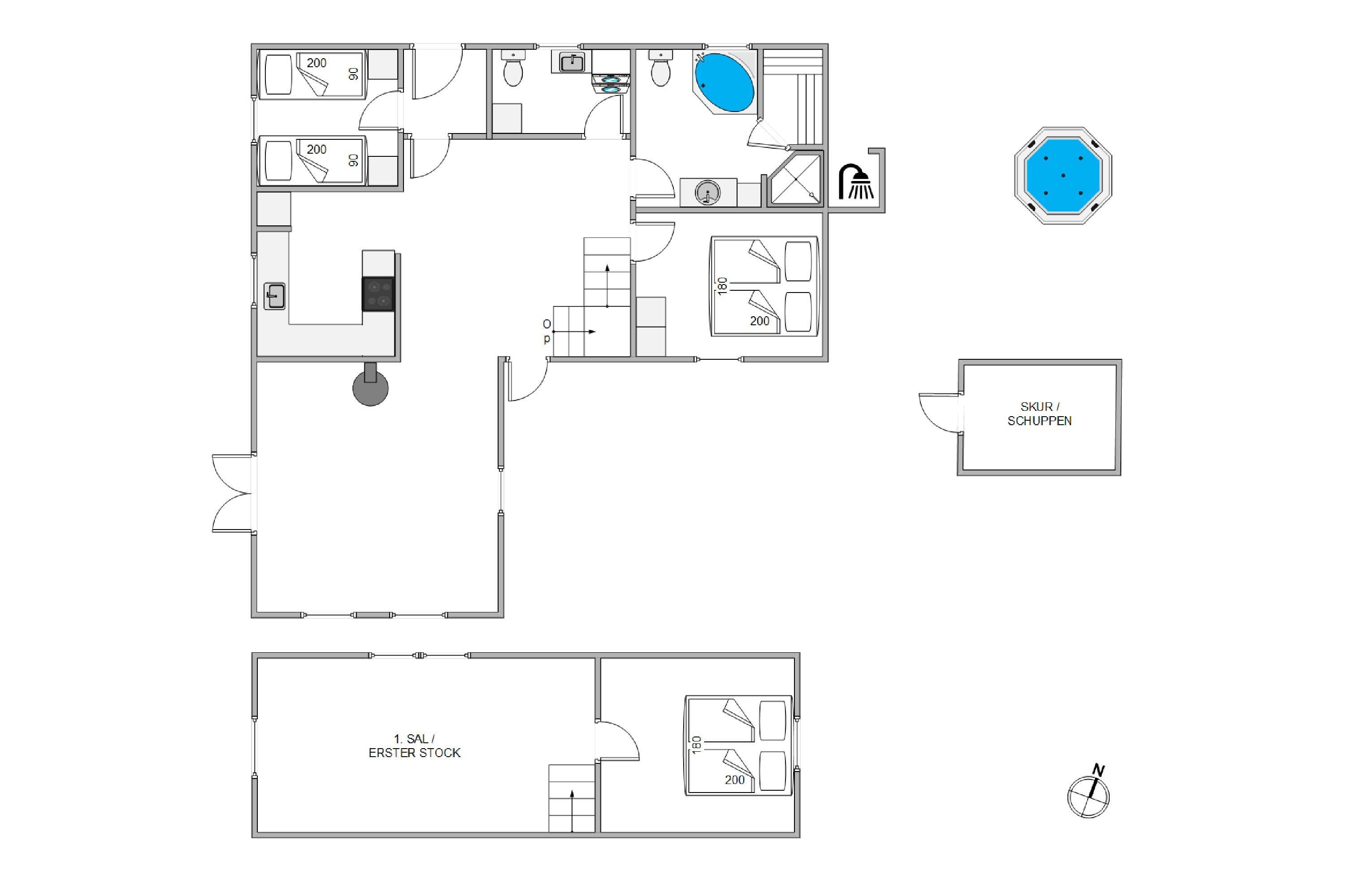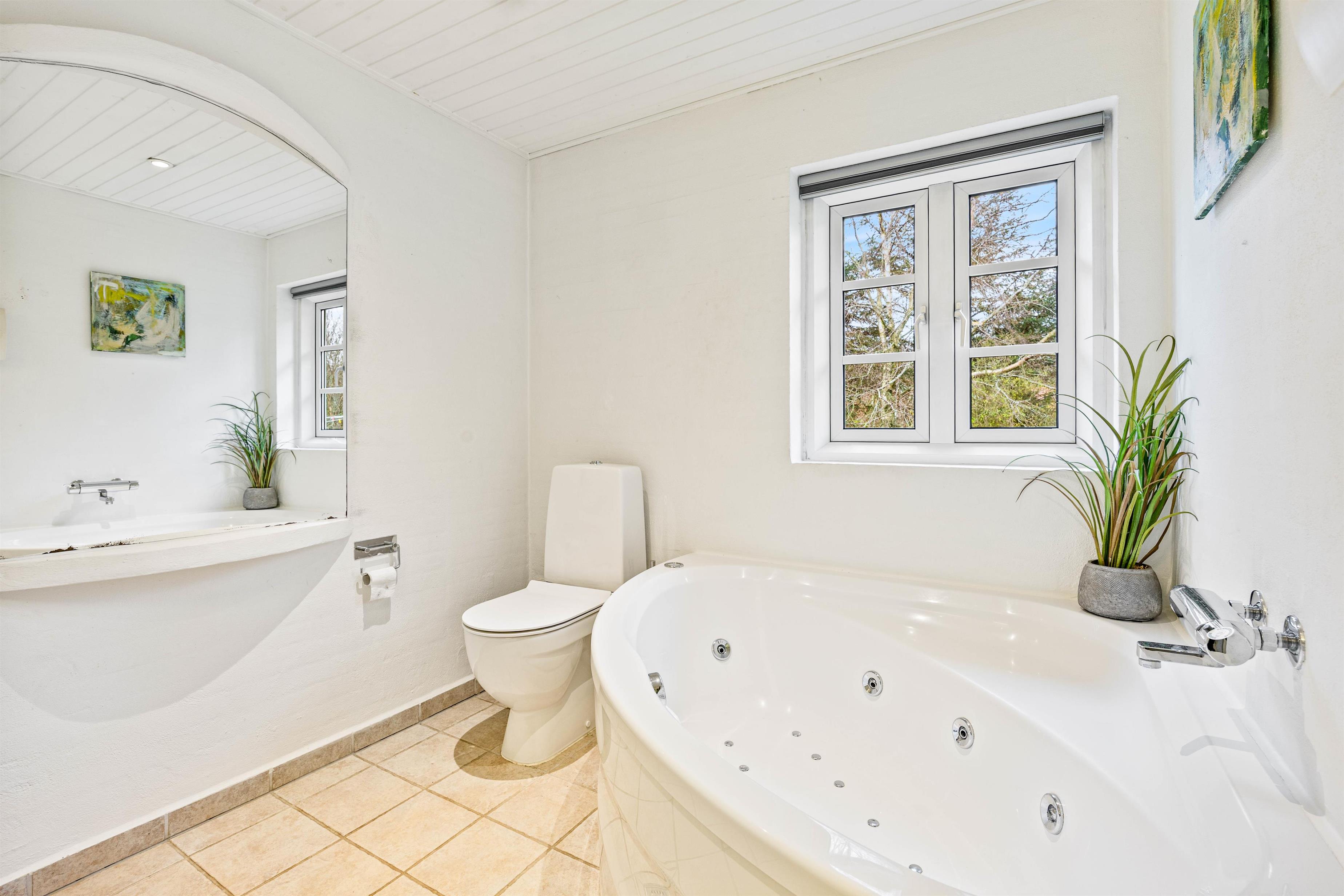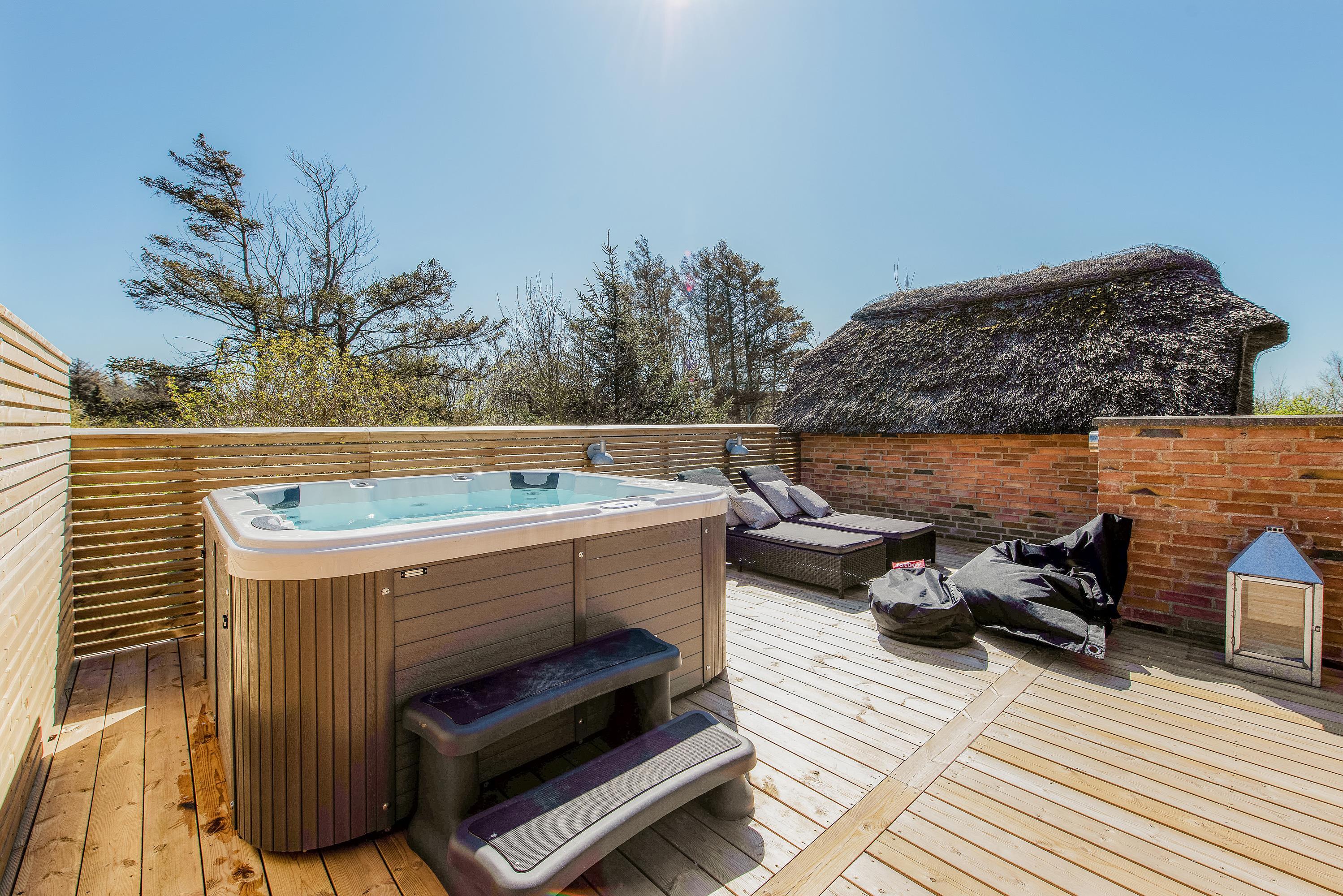 Huset ligger for enden af en rolig stikvej, så her er mulighed for at glemme hverdagens stress og jag, mens I sidder i udespaen. Der er også et godt stisystem omkring huset, som er ideelt til traveture med børn og hund. Udover golf– og fiskemuligheder tæt på, er der heller ikke langt til Vesterhavet. Badebyen Søndervig er hyggelig hele året rundt, men især i sommerhalvåret er der masser af liv og aktivitet i de gode butikker og restauranter. Den gamle charmerende købstad Ringkøbing er også et besøg værd.