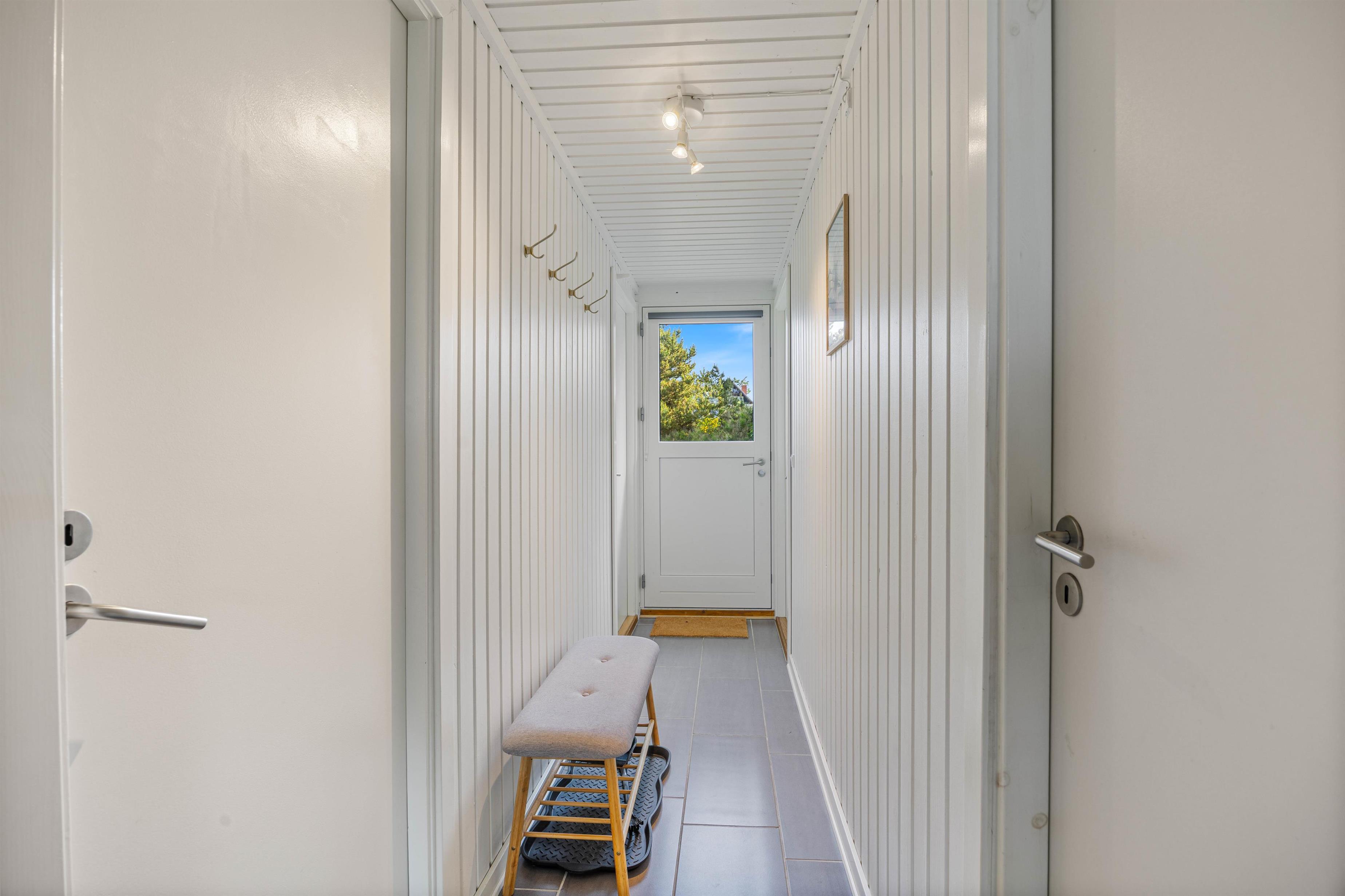 Det fine badeværelse er naturligvis med gulvvarme og med både vaskemaskine og tørretumbler kan håndklæder og børnetøj hurtigt blive klar til næste dags strandtur. Et godt alternativ til opvarmning af huset, er sommerhusets luft-til-luft varmepumpe, der giver jeg muligheden for at nyde en behagelig indetemperatur hele året rundt.