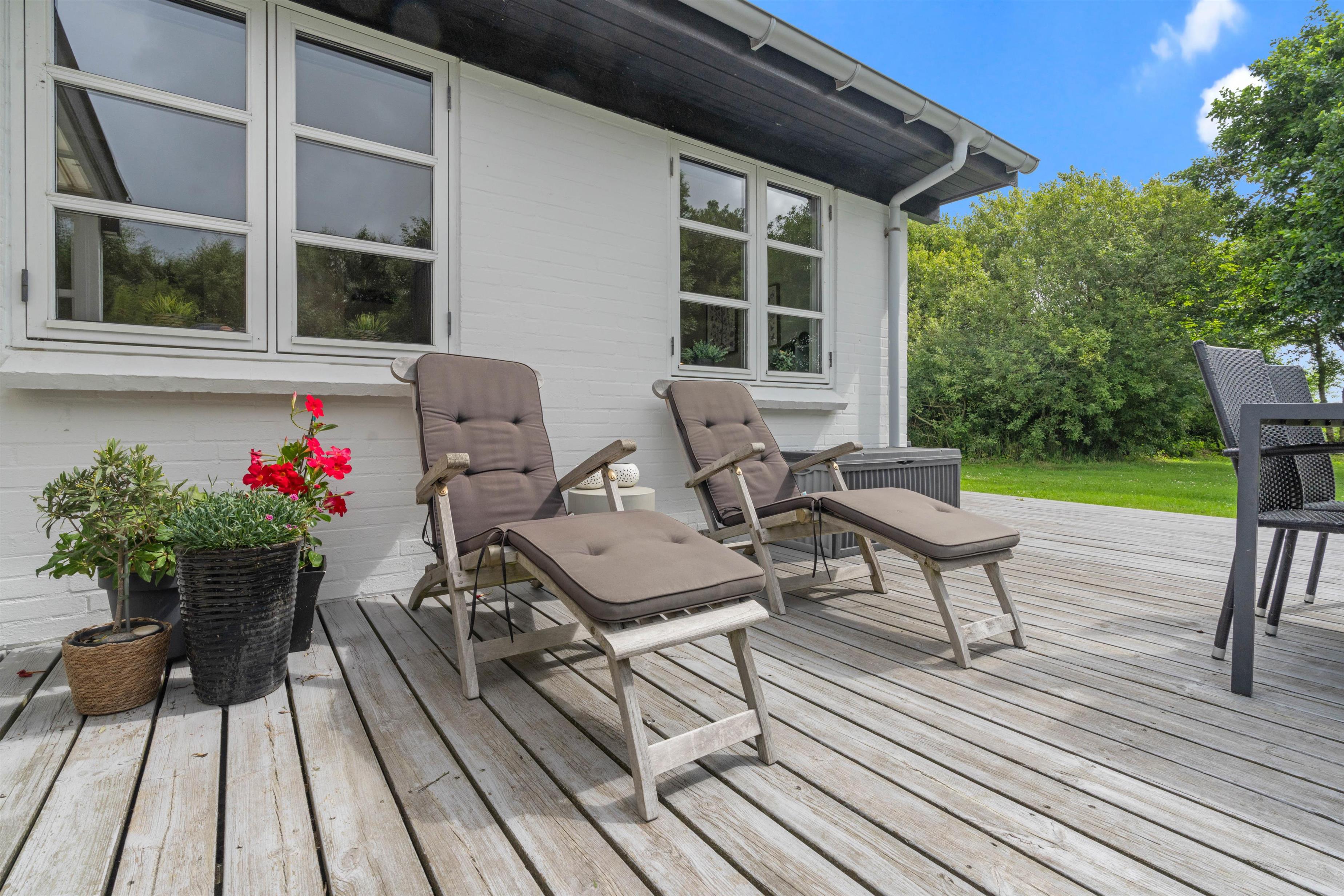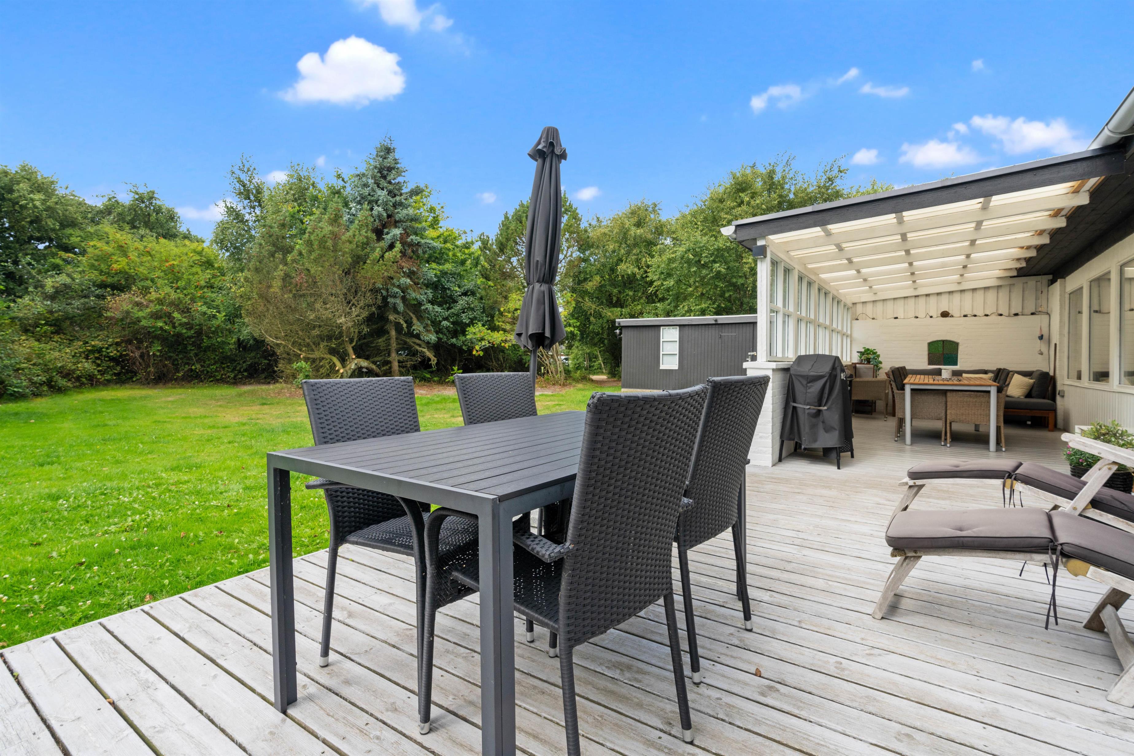 På Gransagervej 32 er der en 2300 m2 stor, smukt anlagt græsplæne som i den grad indbyder til at jeres børn og jeres hund kan lege og boltre sig. Uanset om I spiller fodbold eller badminton, er sjov garanteret her. Terrasseområdet er også skønt anlagt og lader intet tilbage at ønske. Takket være overdækningen og den meget gode vindbeskyttelse står intet i vejen for lange, hyggelige aftener.
