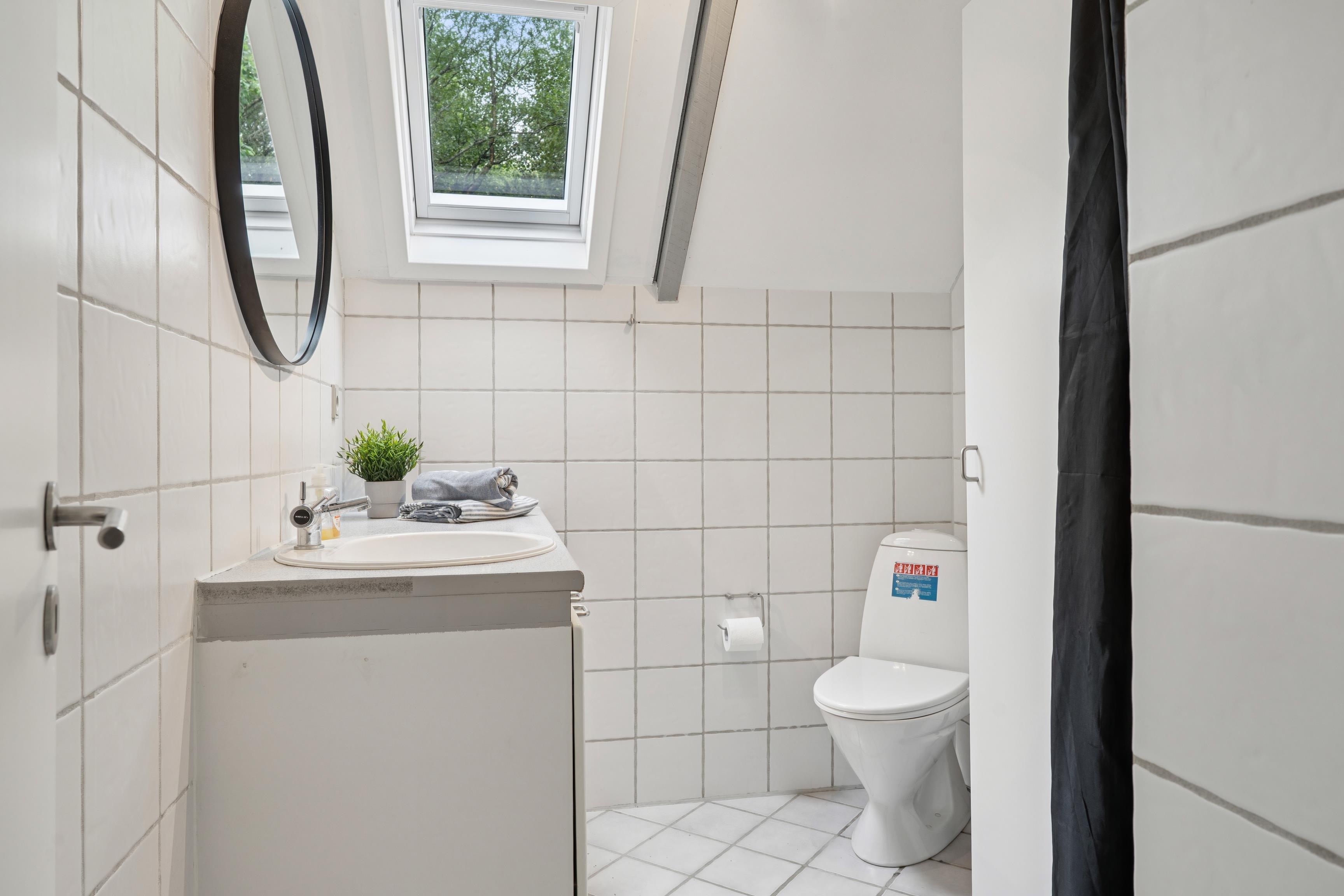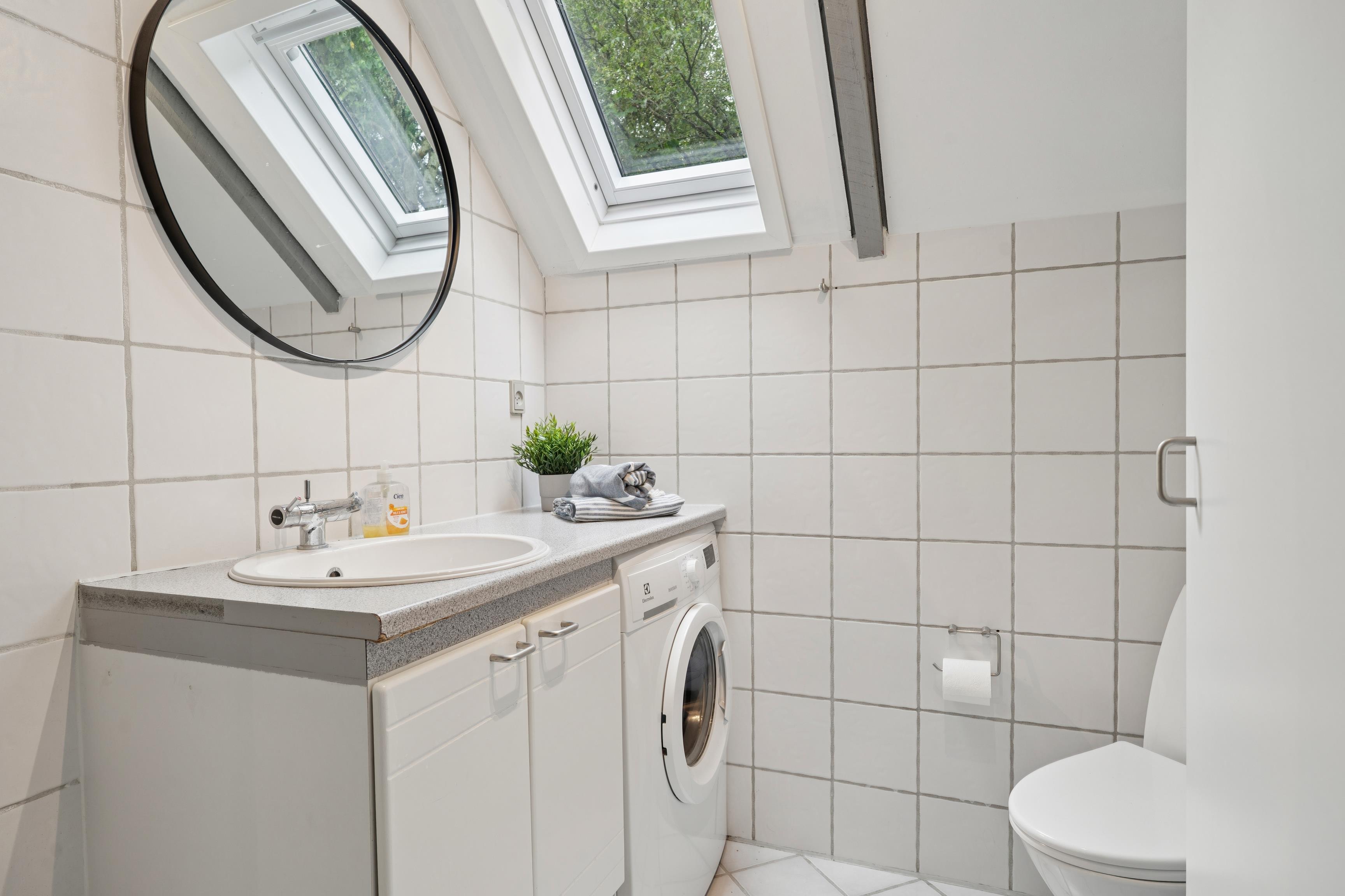 Badeværelset har gulvvarme, bruseniche, toilet, håndvask og opvaskemaskine.