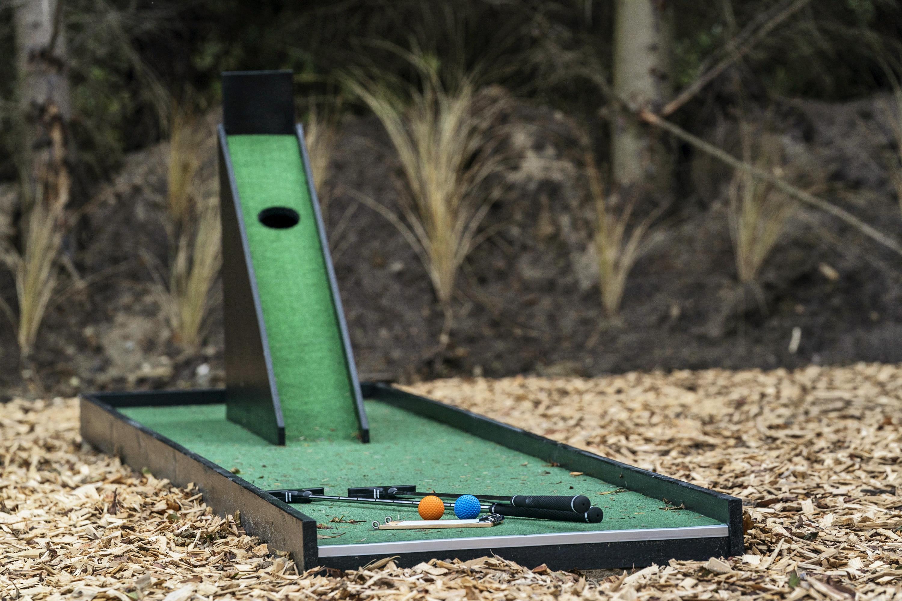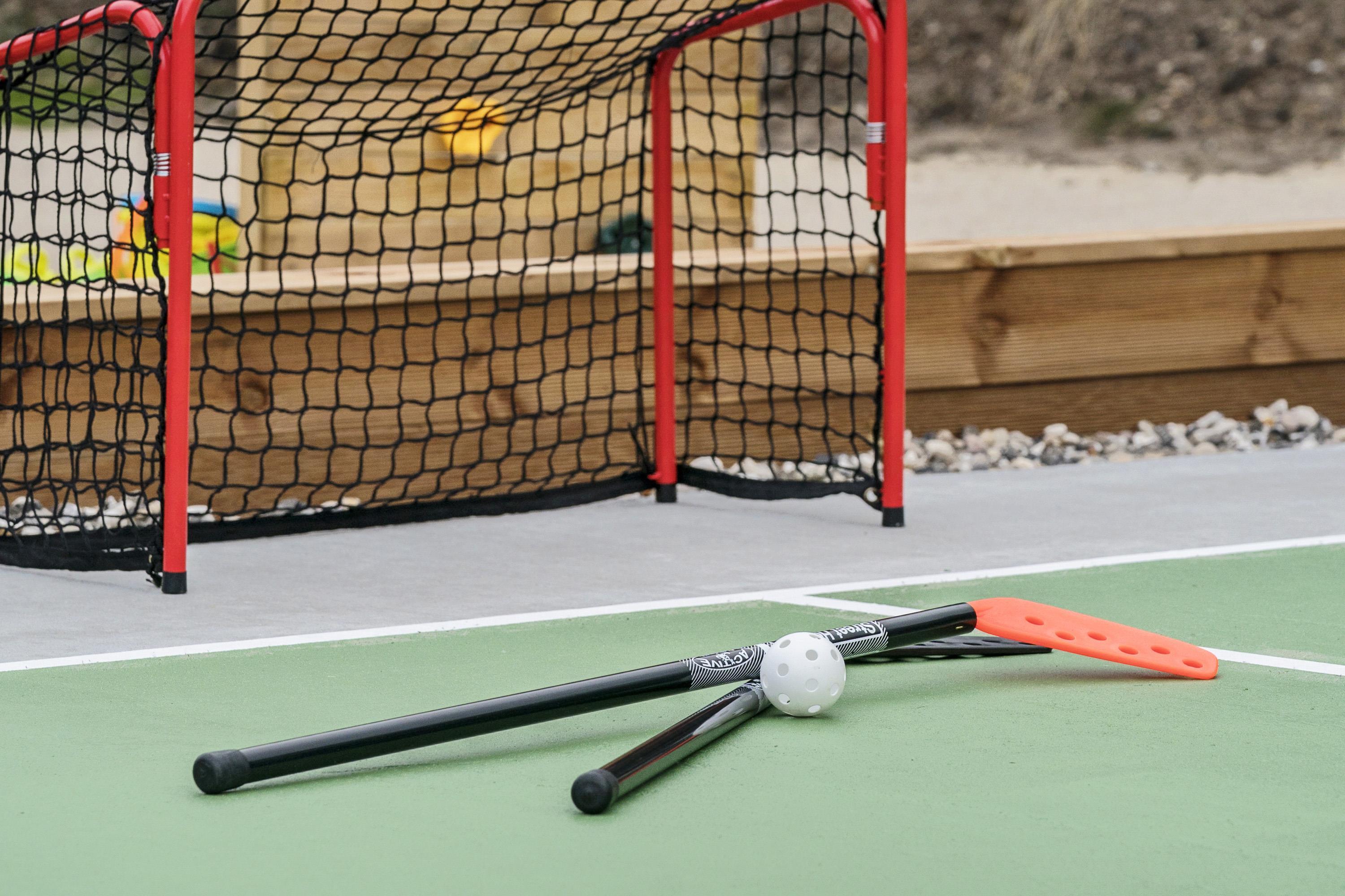 For de små gæster er der en trampolin og et legetårn med gynge og rutsjebane.