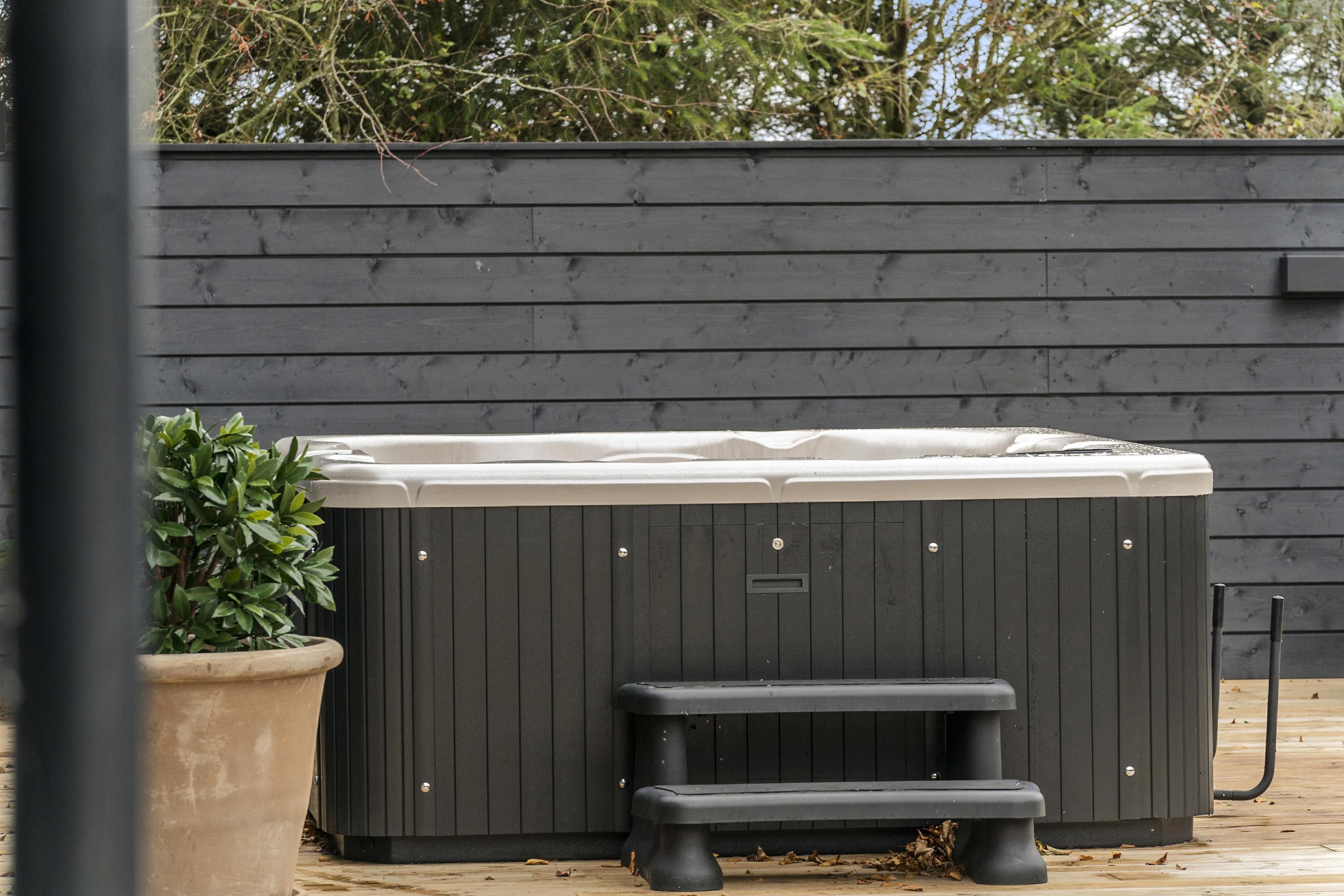Der er også et 6-personers udendørs spa, hvor du kan slappe af og nyde solen.