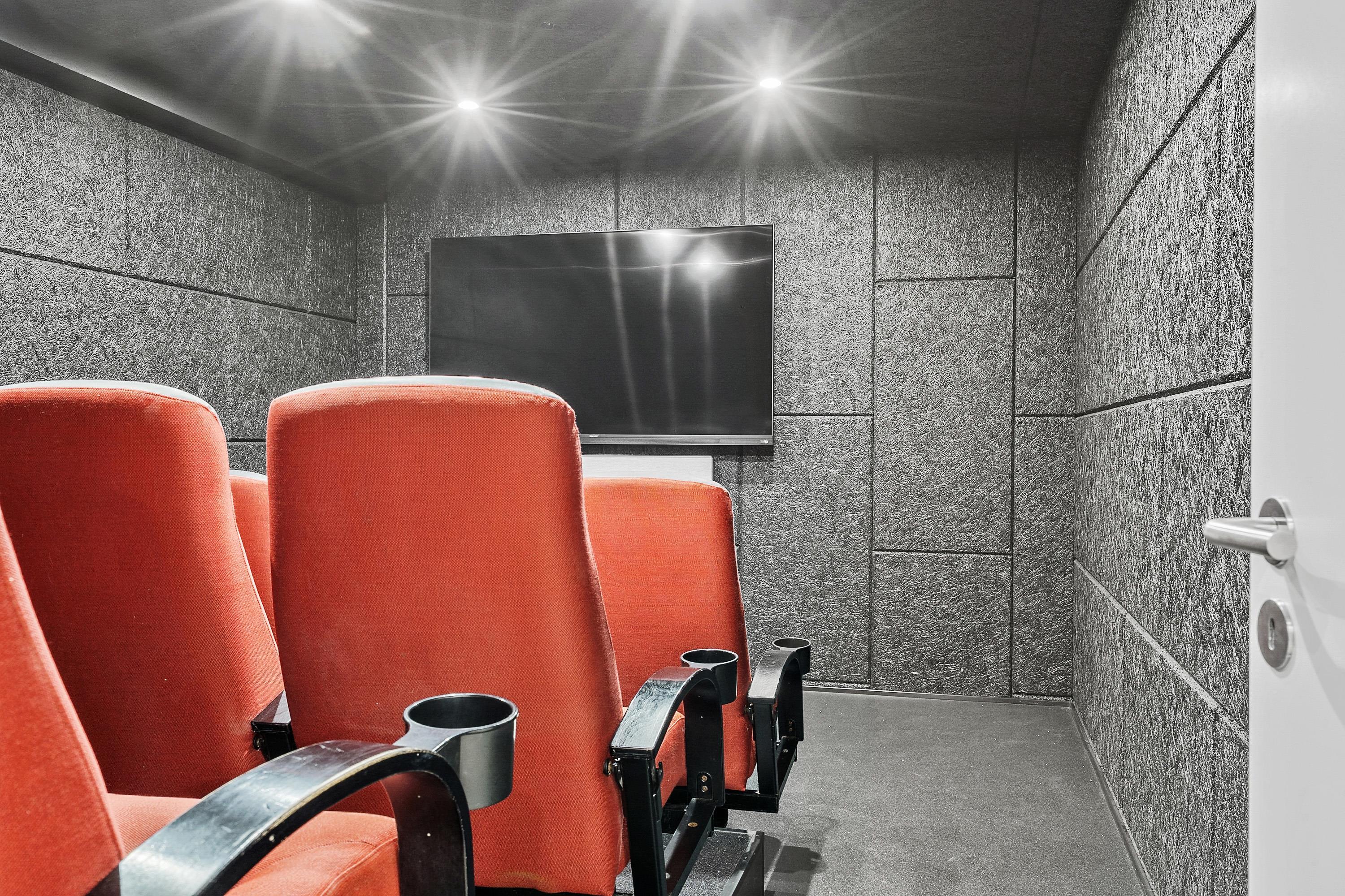 Indvendigt finder du en hjemmebiograf, hvor du kan se dine yndlingsfilm i biograflignende omgivelser. Der er også et stort aktivitetsrum med alt, hvad du behøver til en god gang sjov og ballade.
