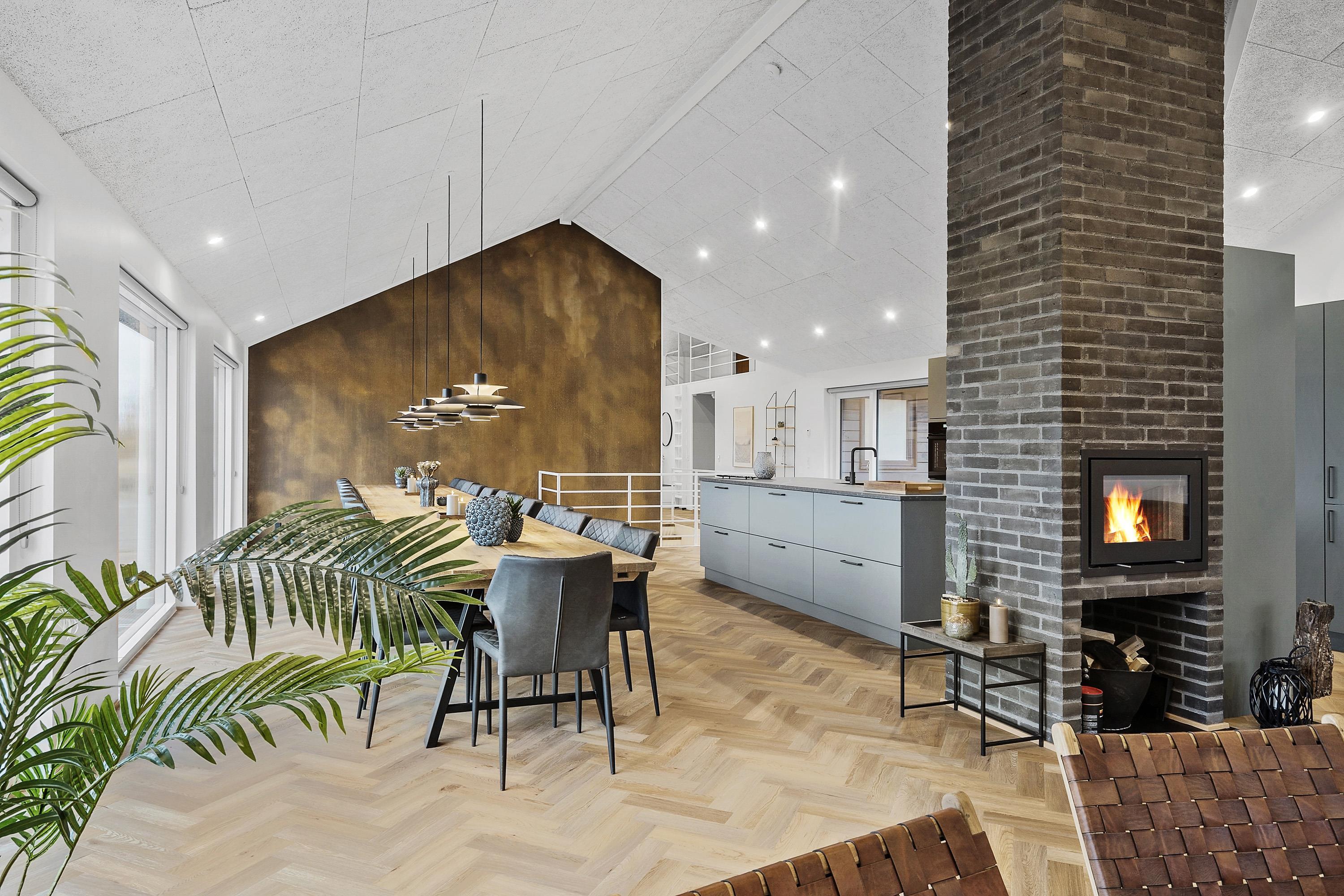 Huset er udstyret med en energivenlig luft-til-vand-varmepumpe og gulvvarme i hele huset. Der er også vaskemaskine, tørretumbler, en fryser på 60 liter og en hyggelig brændeovn.