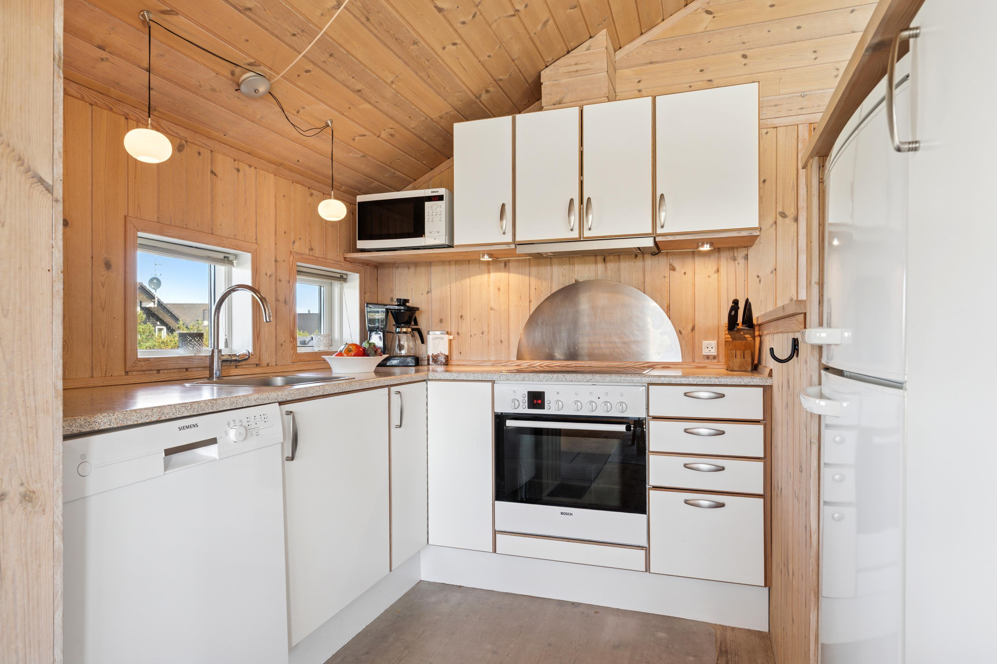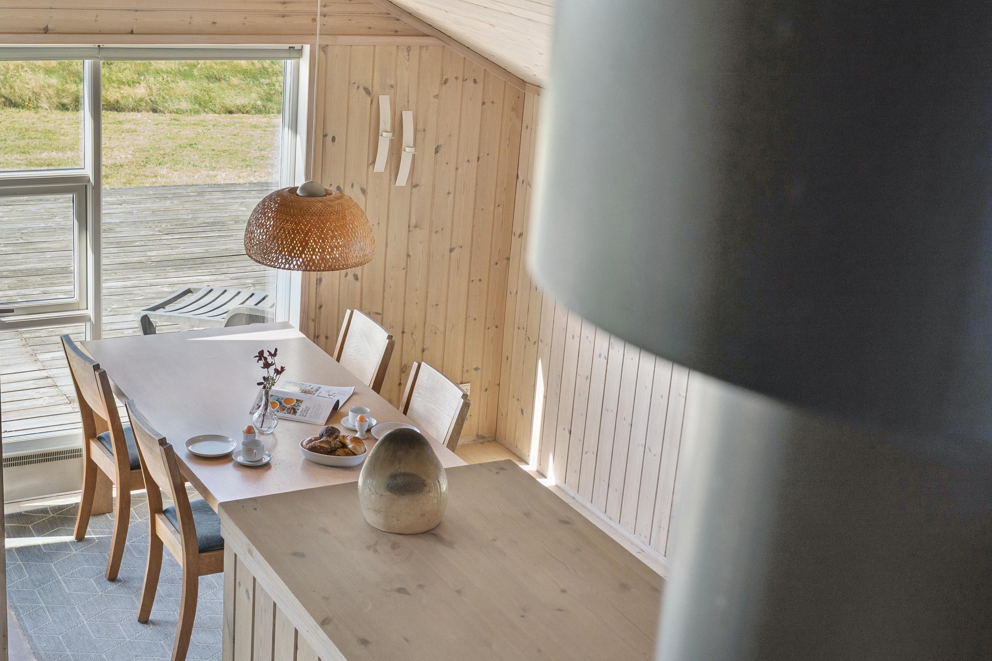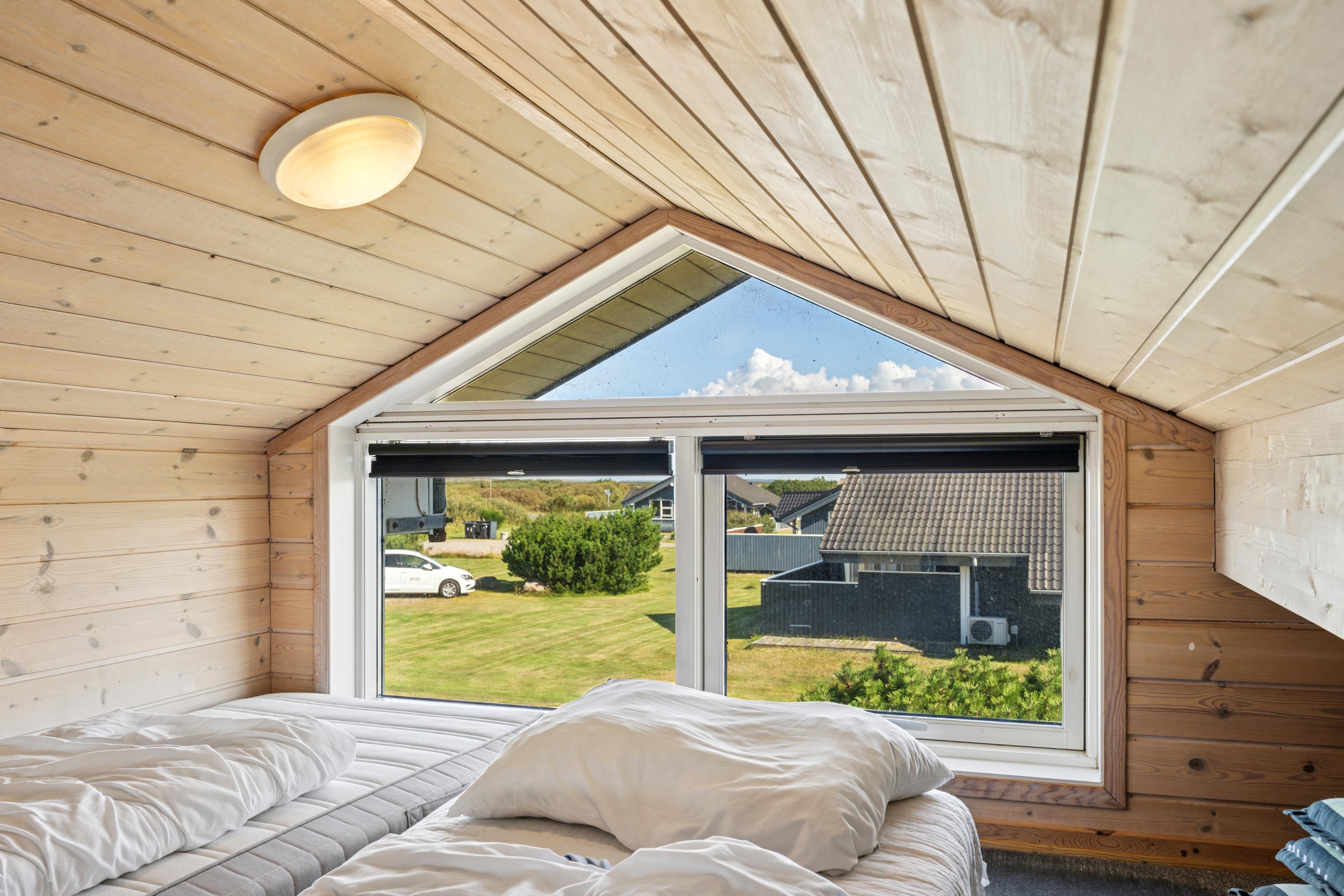 Huset er indrettet med 2 værelser med dobbeltseng samt 2 soverpladser på hems. Stue, køkken og spiseplads er åbent, så i kan hygge jer sammen om madlavningen, et spil kort eller læse en god bog. Der kan tændes op i brændeovnen på de kølige dage, hvor roen kan sænke sig efter en aktiv dag. Badeværelset byder på både spa og sauna.