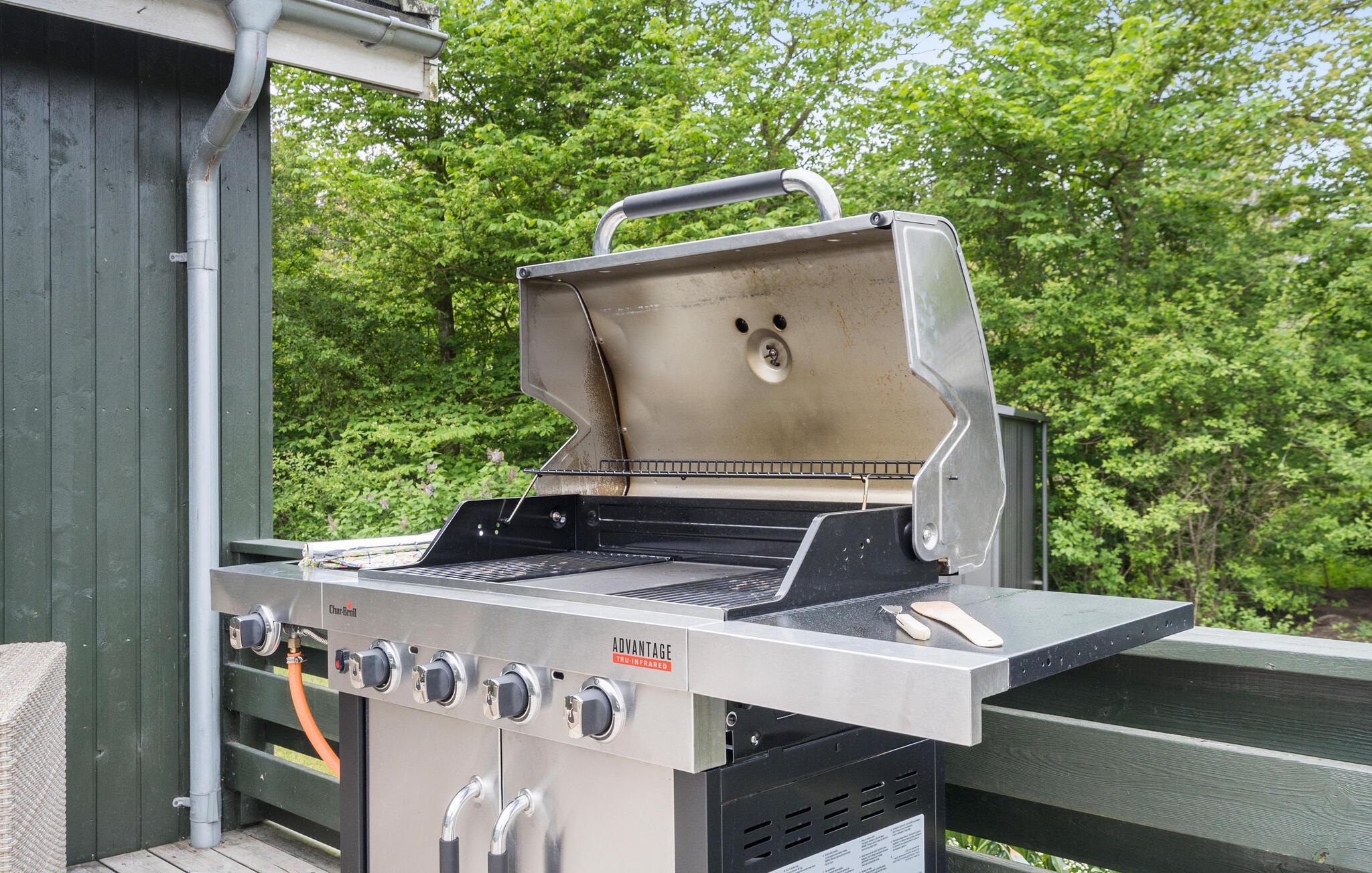Husets perle er den store, solrige terrasse, som bliver jeres anden stue, når vejret er godt. Begynd dagen med en friskbrygget kop kaffe, tag morgenmaden med udenfor og lad børnene gå fra bordet, så de kan gå på opdagelse i haven og brænde energi af på trampolinen. Hvis vejret holder hele dagen, kan I fyre op i grillen og runde en smuk sommerdag af med saftige bøffer under den lune aftensol.