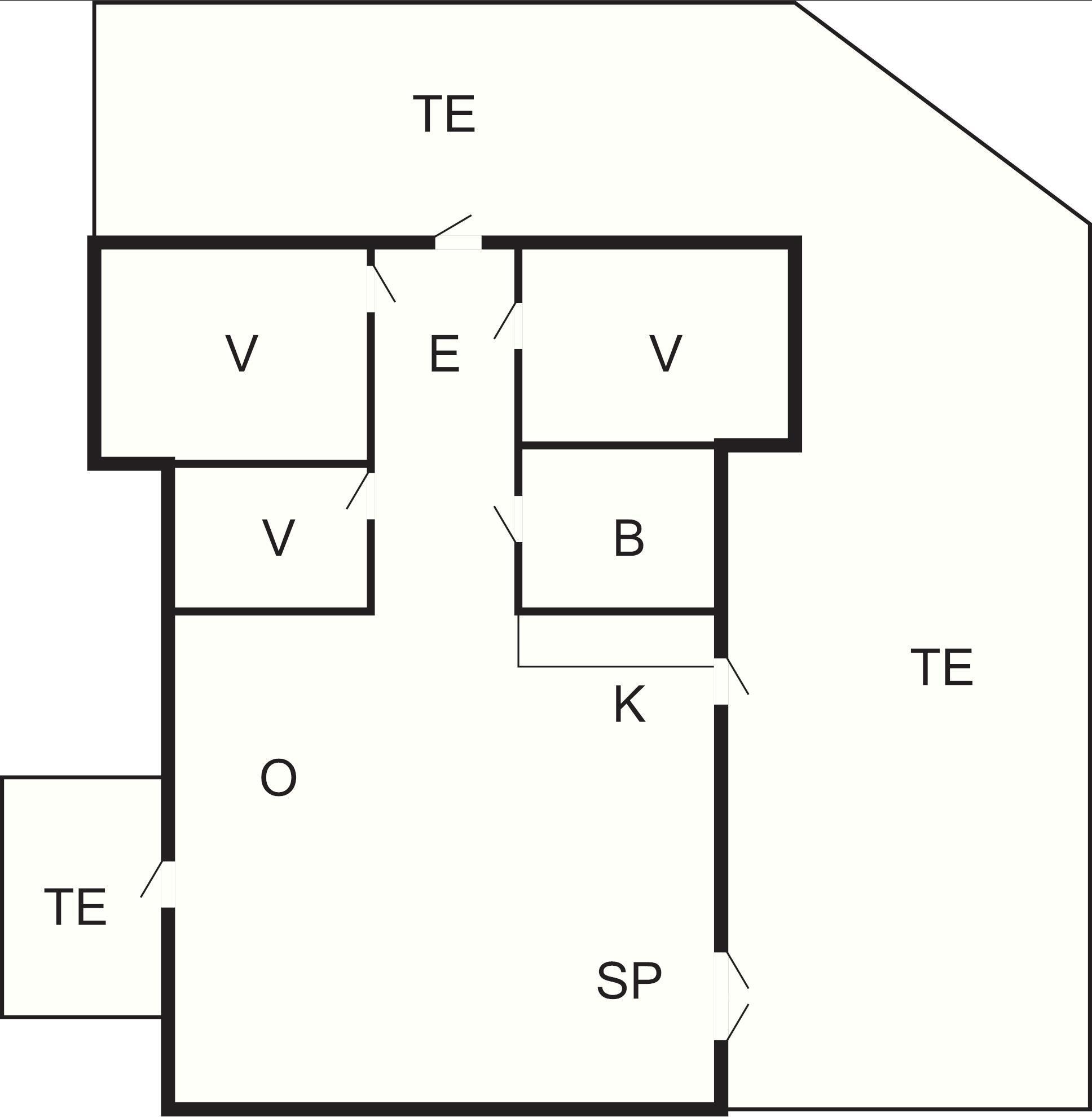 Huset henvender sig for op til 6 personer med tre soveværelser fordelt på to med dobbeltsenge og det sidste med køjeseng.
