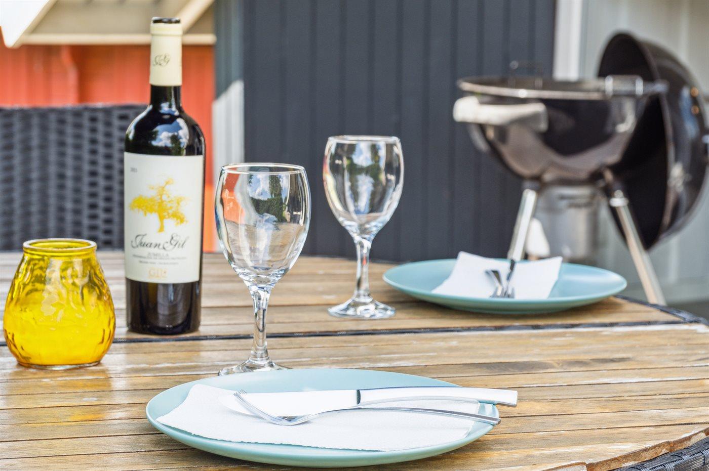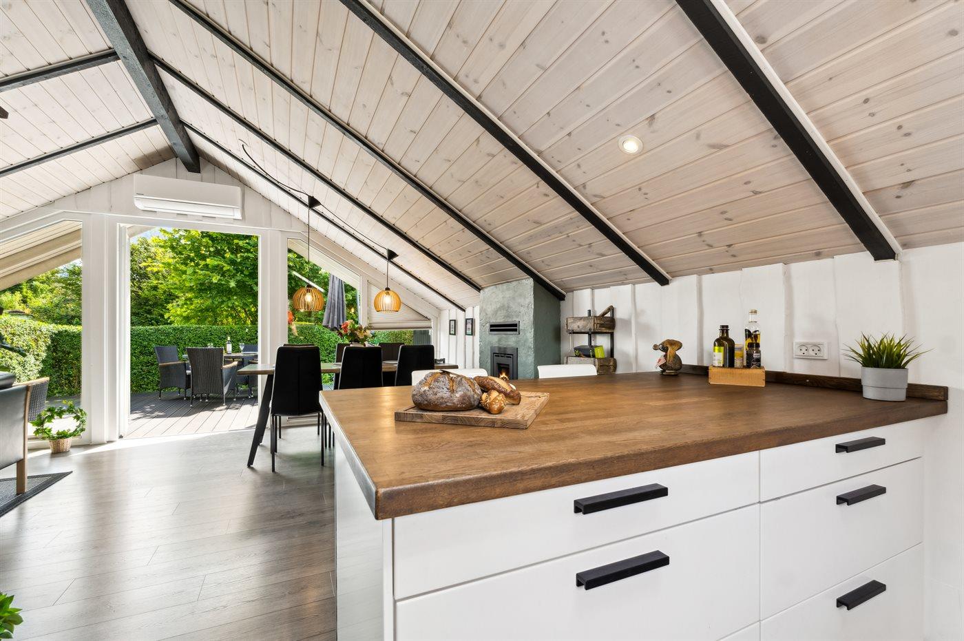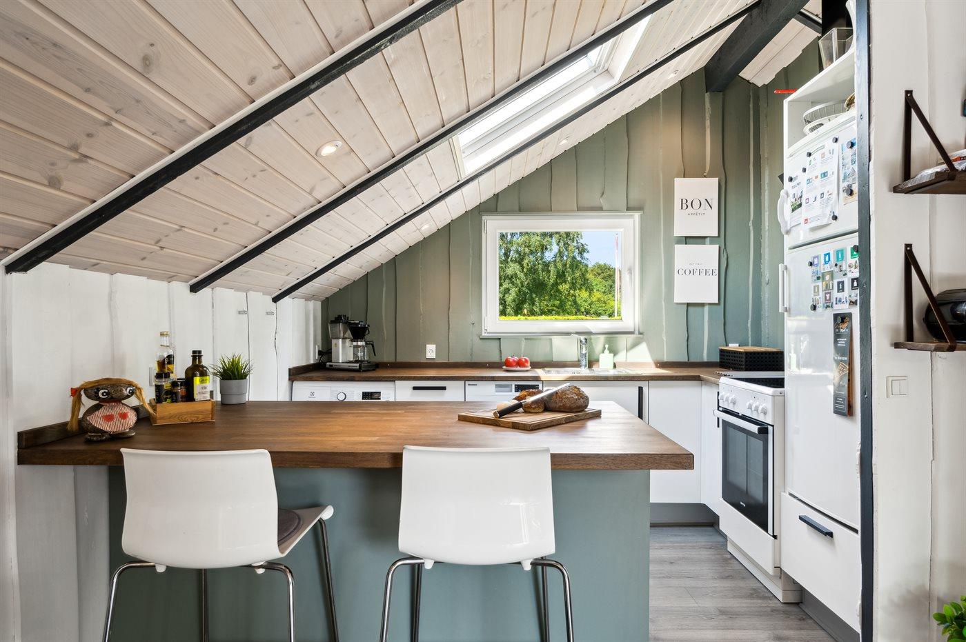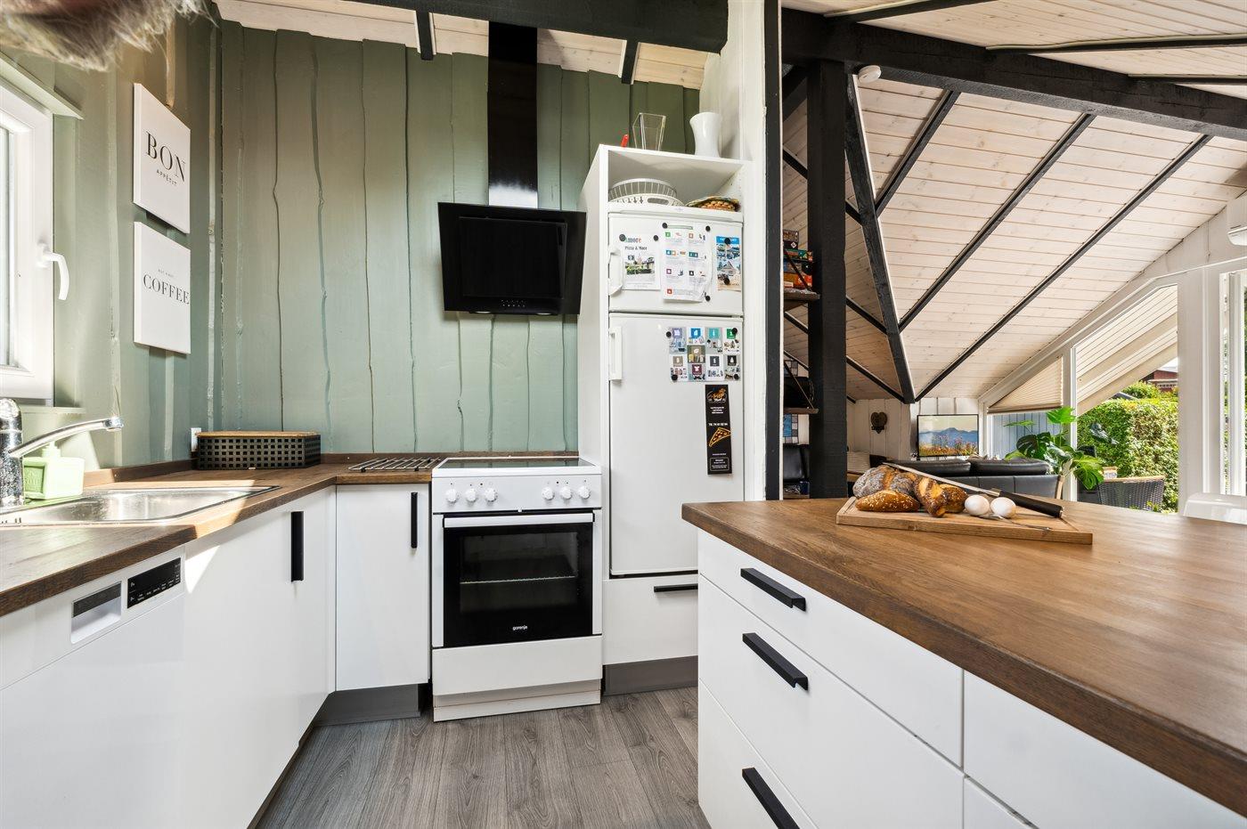 Køkkenet er udstyret med 1 køleskab. Der er 4 induktionskogeplader, varmluftovn samt opvaskemaskine.