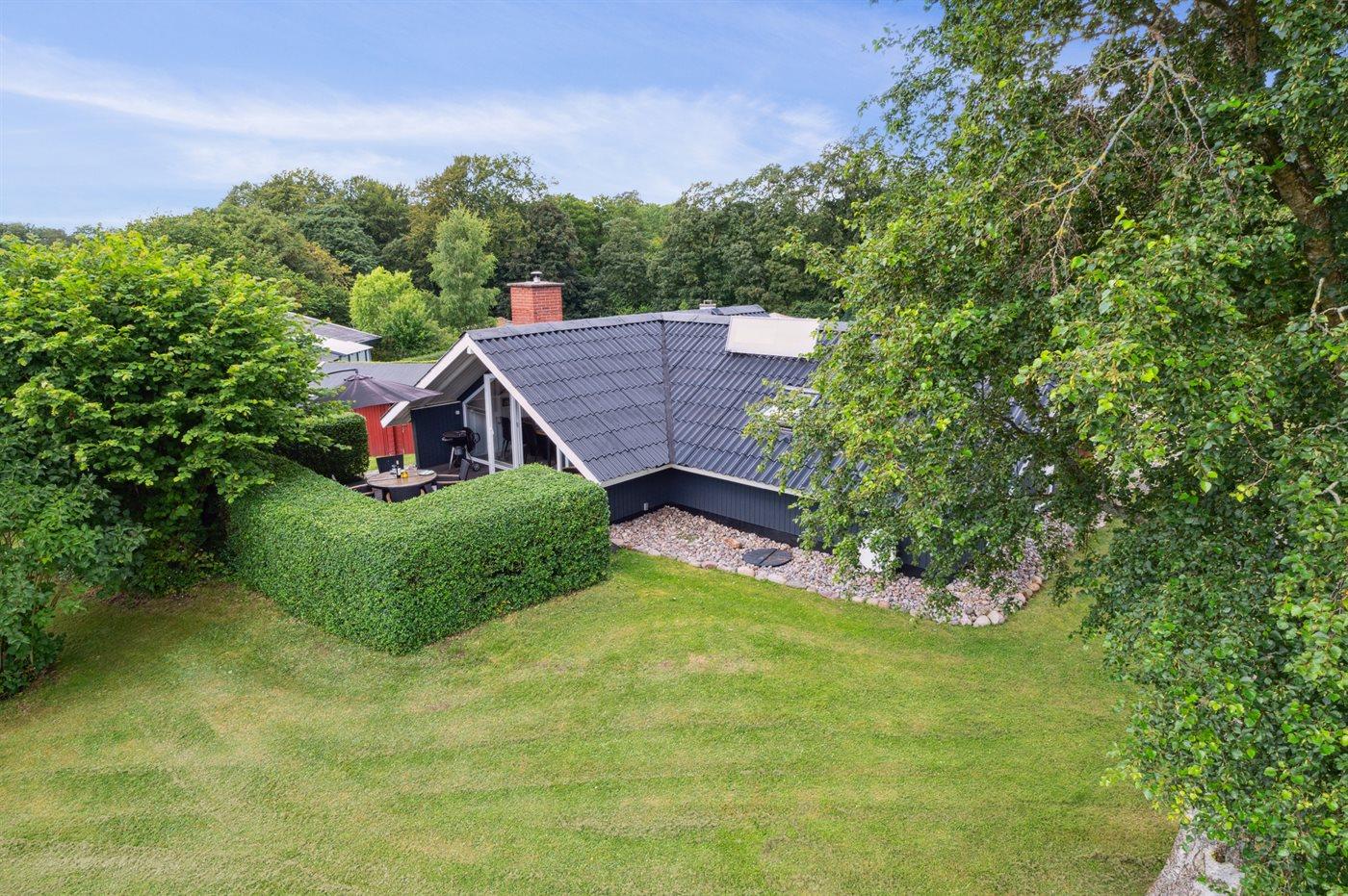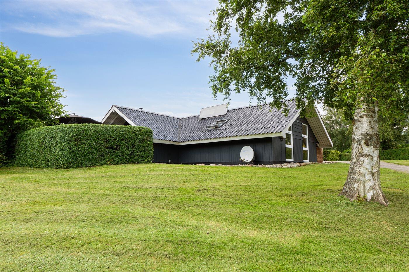 Ferieboligen er beliggende på en 900 m² stor havegrund. Der er 800 m til havet. Der er en badebro i nærheden. Nærmeste forretning er beliggende i en afstand af 5000 m. Der er en golfbane i en afstand af 5000 m. Til ferieboligen hører åbent terrasseareal. Desuden er der overdækket terrasse. Der er redskabsrum. Gynge. Sandkasse. Grill til rådighed. Parkering ved ferieboligen.