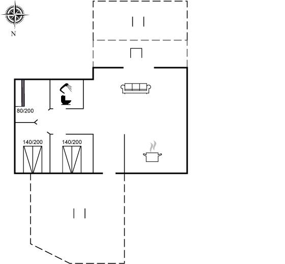 Der er i alt 3 soveværelser. Sovepladserne fordeler sig på: 4 sovepladser i dobbeltsenge. 2 sovepladser i køjeseng. Derudover er der 1 stk. barneseng.