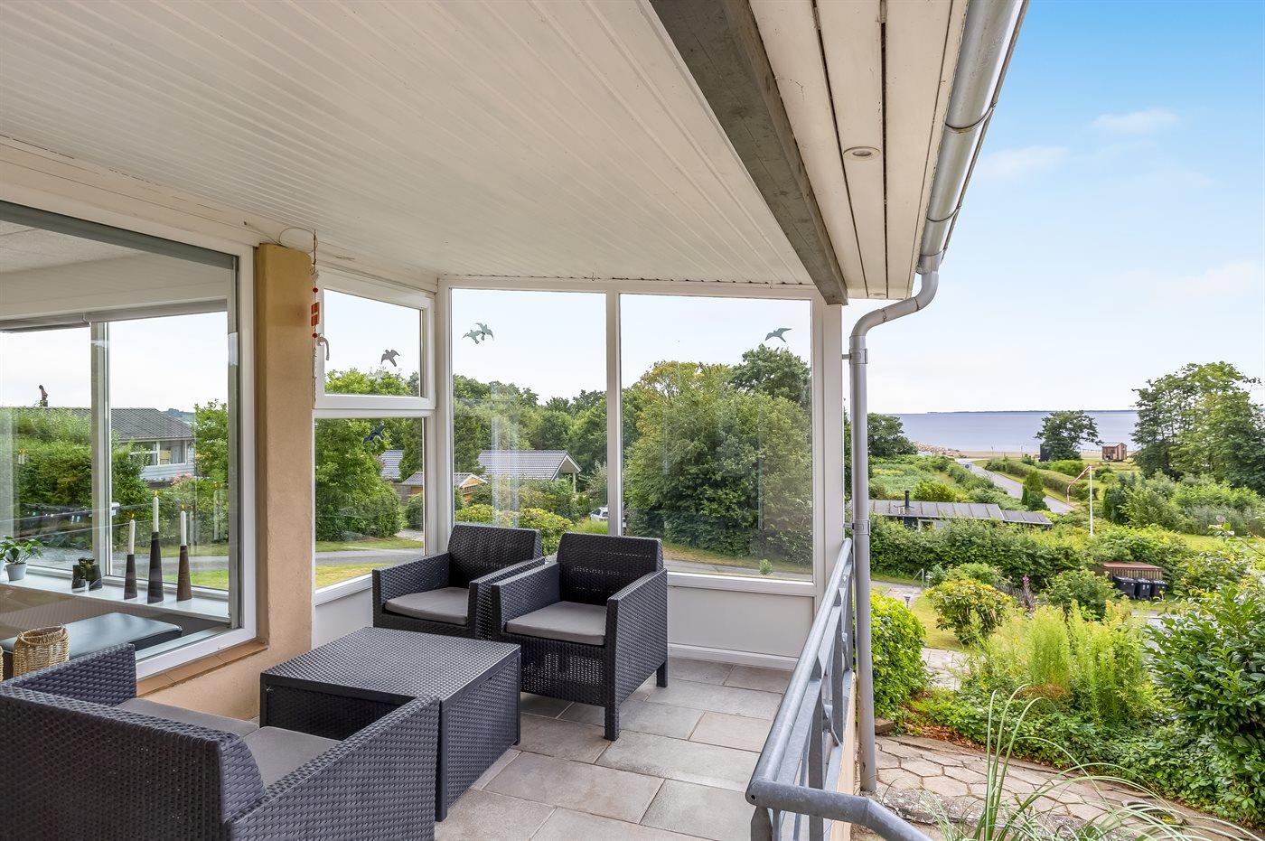 Ferieboligen er beliggende på en 800 m² stor havegrund. Der er 150 m til havet. Der er en badebro i nærheden. Nærmeste forretning er beliggende i en afstand af 5000 m. Der er en golfbane i en afstand af 5000 m. Til ferieboligen hører åbent terrasseareal. Desuden er der overdækket terrasse. Grill til rådighed. Parkering ved ferieboligen.