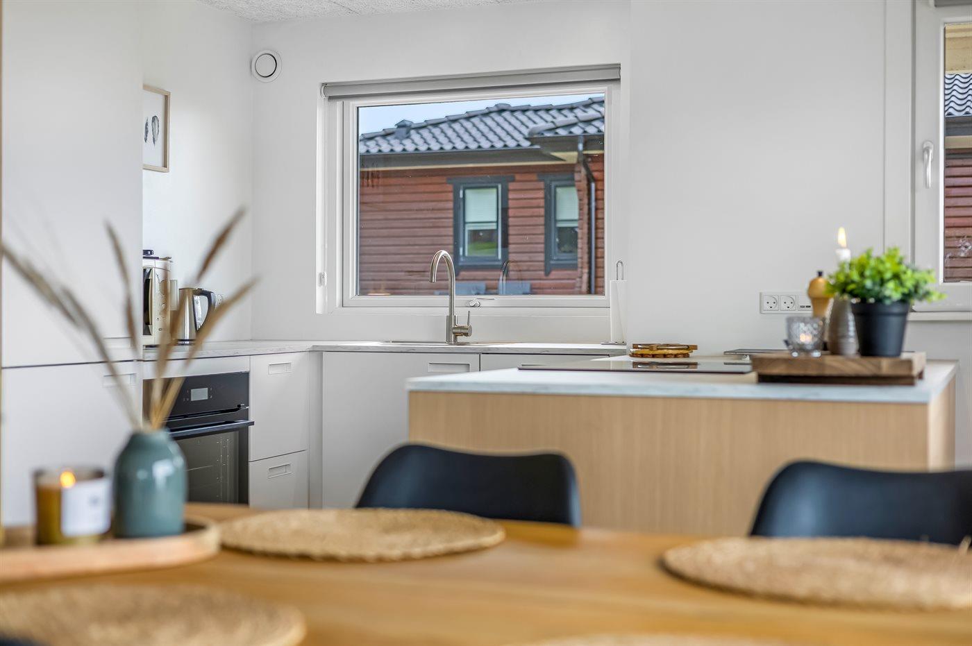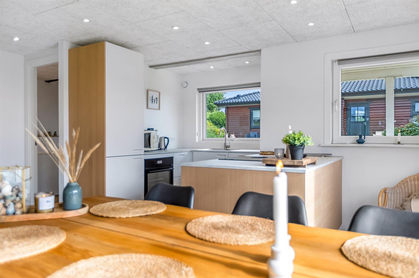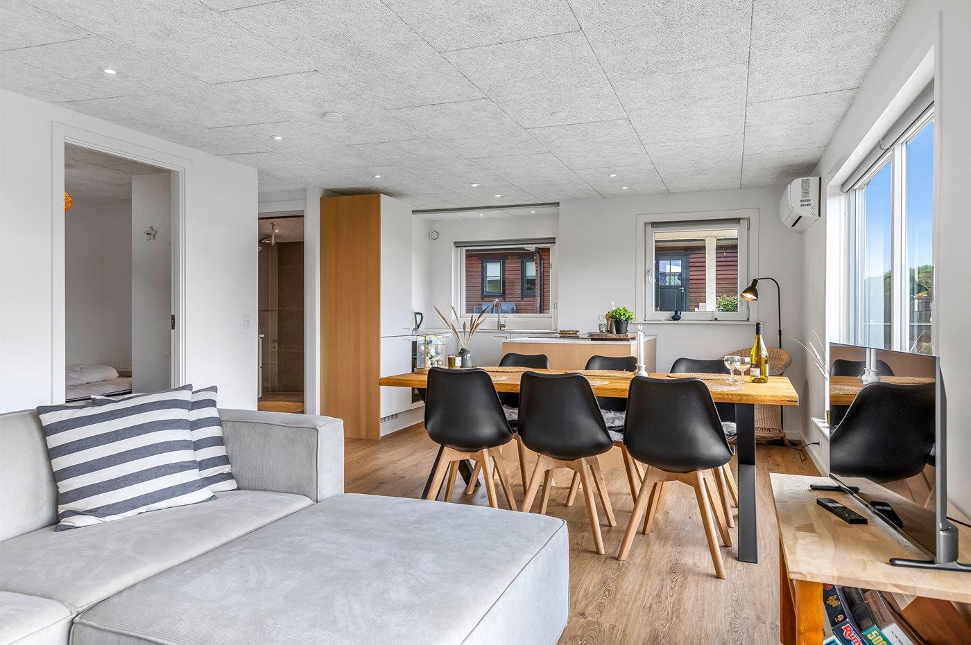 Køkkenet er udstyret med 1 køleskab. Der er 4 induktionskogeplader, varmluftovn, mikrobølgeovn samt opvaskemaskine.