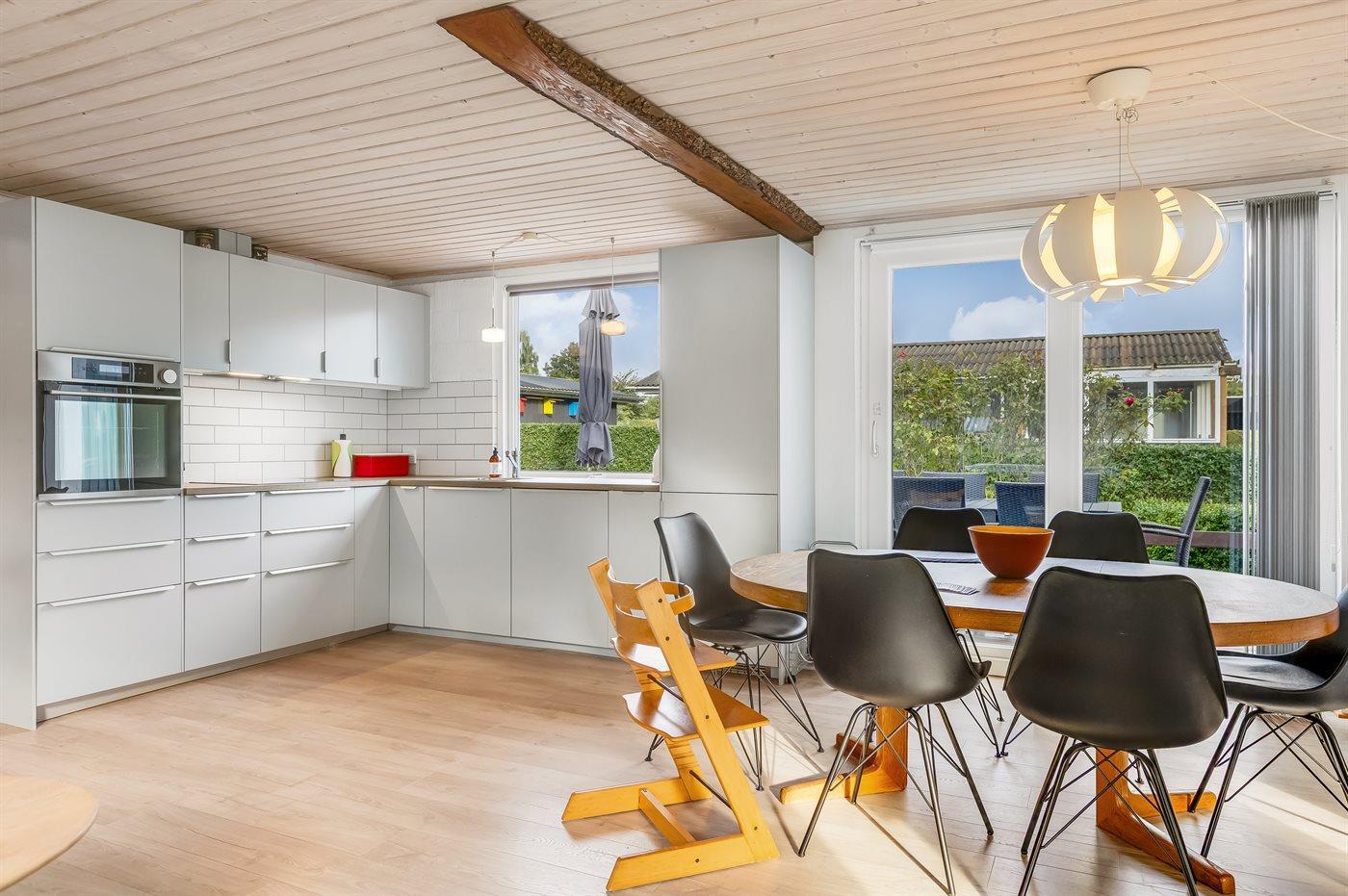 Køkkenet er udstyret med 1 køleskab. Der er 4 induktionskogeplader, varmluftovn, mikrobølgeovn samt opvaskemaskine.