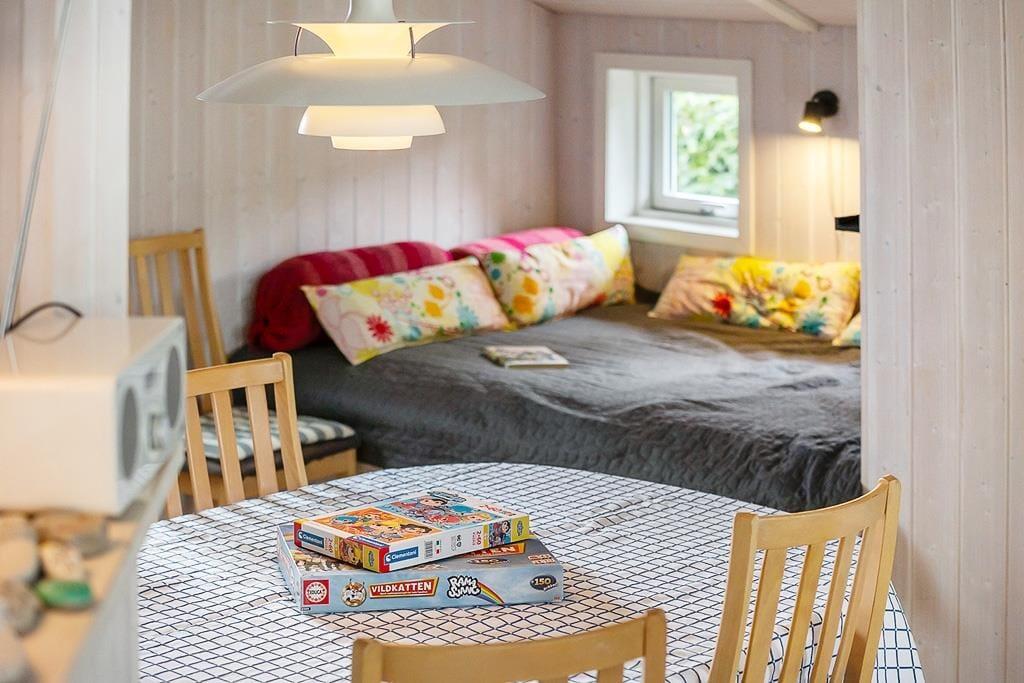 Indenfor mødes du af en varm og indbydende stemning, hvor indretningen emmer af klassisk sommerhushygge. Her er der plads til at trække stikket og nyde hinandens selskab, uanset om ferien byder på stille dage eller aktive udflugter. Stuen indbyder til afslappede stunder med en god bog, brætspil og lange snakke, mens lyset strømmer ind og skaber en rolig atmosfære. Efter en dag i den friske luft kan du forkæle dig selv med ren velvære i husets spabad og sauna – perfekt til at løsne musklerne og lade feriestemningen brede sig i kroppen. Det er nemt at forestille sig, hvordan skuldrene sænker sig, mens varmen omslutter dig, og hverdagen for alvor slipper sit tag.