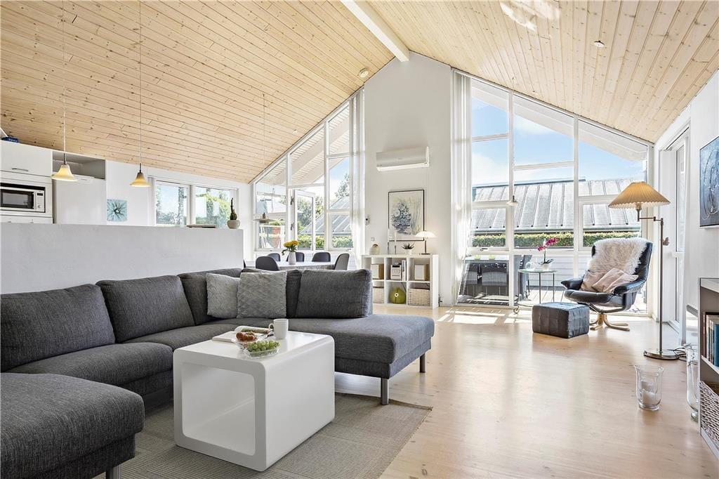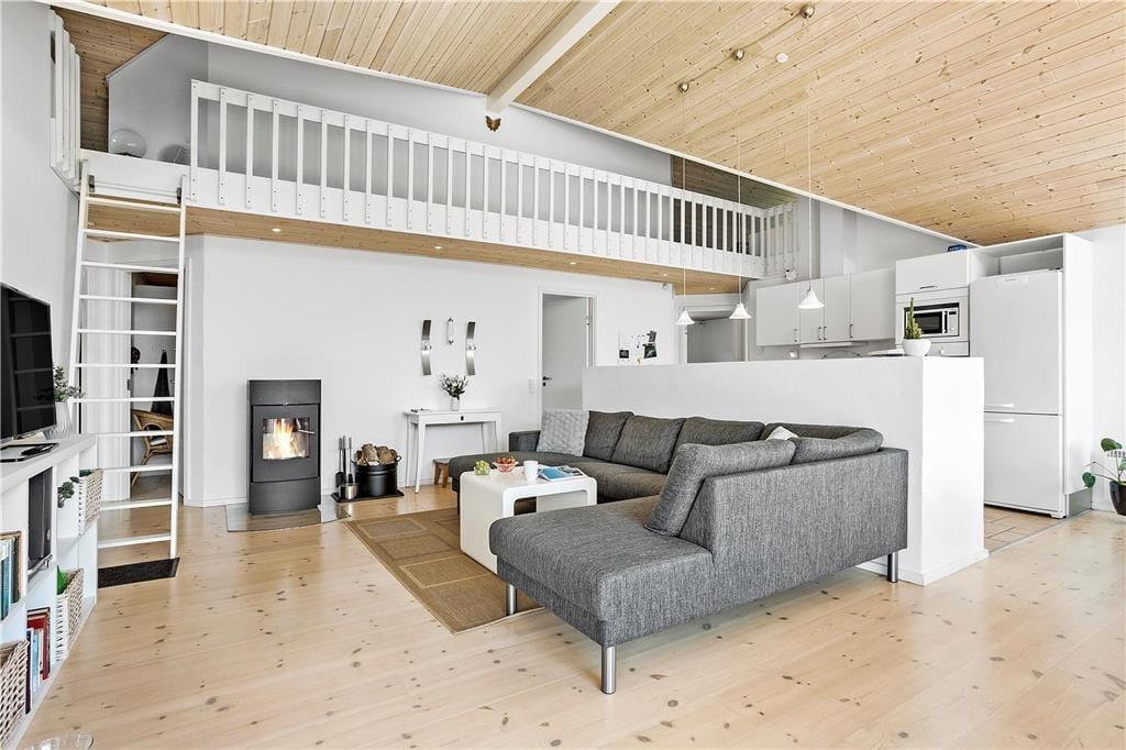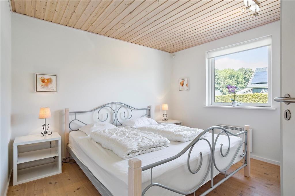 Huset er indrettet i lyse og venlige farver og er særdeles veldisponeret med et stort bryggers med vaskesøjle, godt køkken med alt i hårde hvidevarer og i åben forbindelse til stor og lys spise- og opholdsstue med brændeovn, varmepumpe og udgang til stor træterrasse. Der er to separate soveafdelinger med hver to gode soveværelser med dobbeltsenge og skabe samt eget badeværelse med bruseniche. Fra to af de store soveværelser er der ligeledes udgang til terrassen, som rummer flere gode sol- og lækroge. Til familiens alleryngste er der puslepude, babybadekar, høj stol og en god gæsteseng til rådighed. Haven, der primært er udlagt med græs indbyder til leg, hygge og ikke mindst afslapning for hele familien – de mindste vil elske sandkassen eller en tur på gyngen, mens de større nok foretrækker bålpladsen hvor adskillige snobrød er blevet bagt.