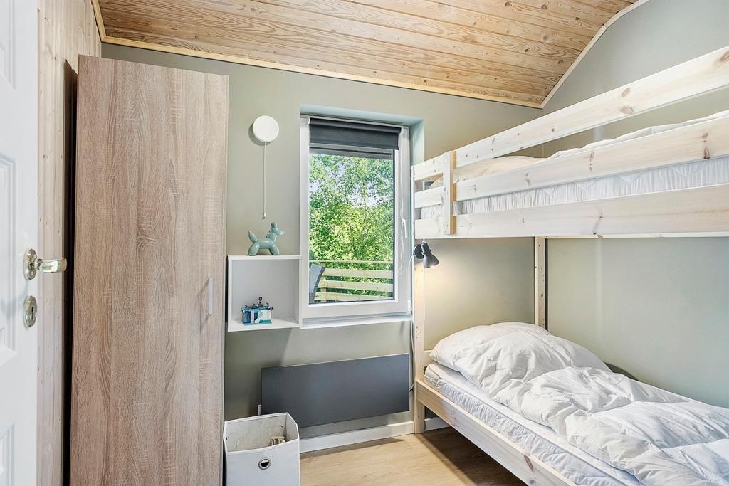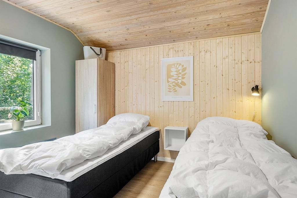Når du træder ind i sommerhuset, mærker du straks den lyse og venlige atmosfære, hvor de nyrenoverede rum skaber en følelse af frisk start. Det åbne køkken og stue står i naturlig forbindelse med hinanden, og her kan familien samles til spil, samtaler eller en stille stund med kaffe på bordet. Brændeovnen er perfekt til kølige aftener og spreder en beroligende varme og hyggelig knitren, som sætter scenen for afslapning efter en dag i naturen. Indretningen er gennemført enkel – uden unødvendige detaljer – og giver plads til at slappe af og nyde samværet.