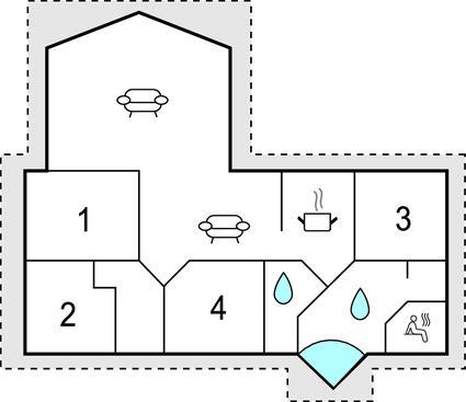 Badeværelse (nr. 1) - WC. Varmt og koldt vand. Bruser