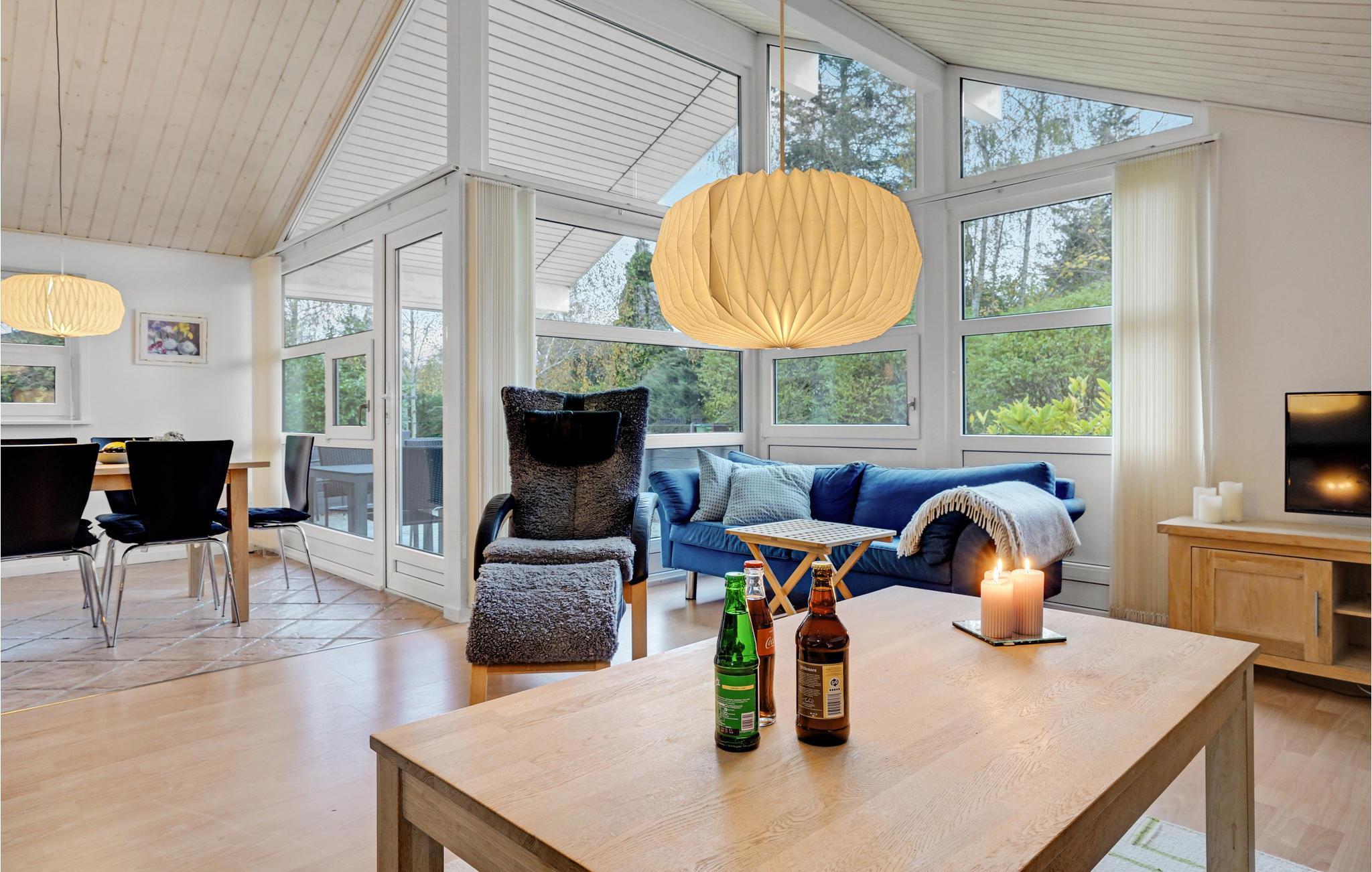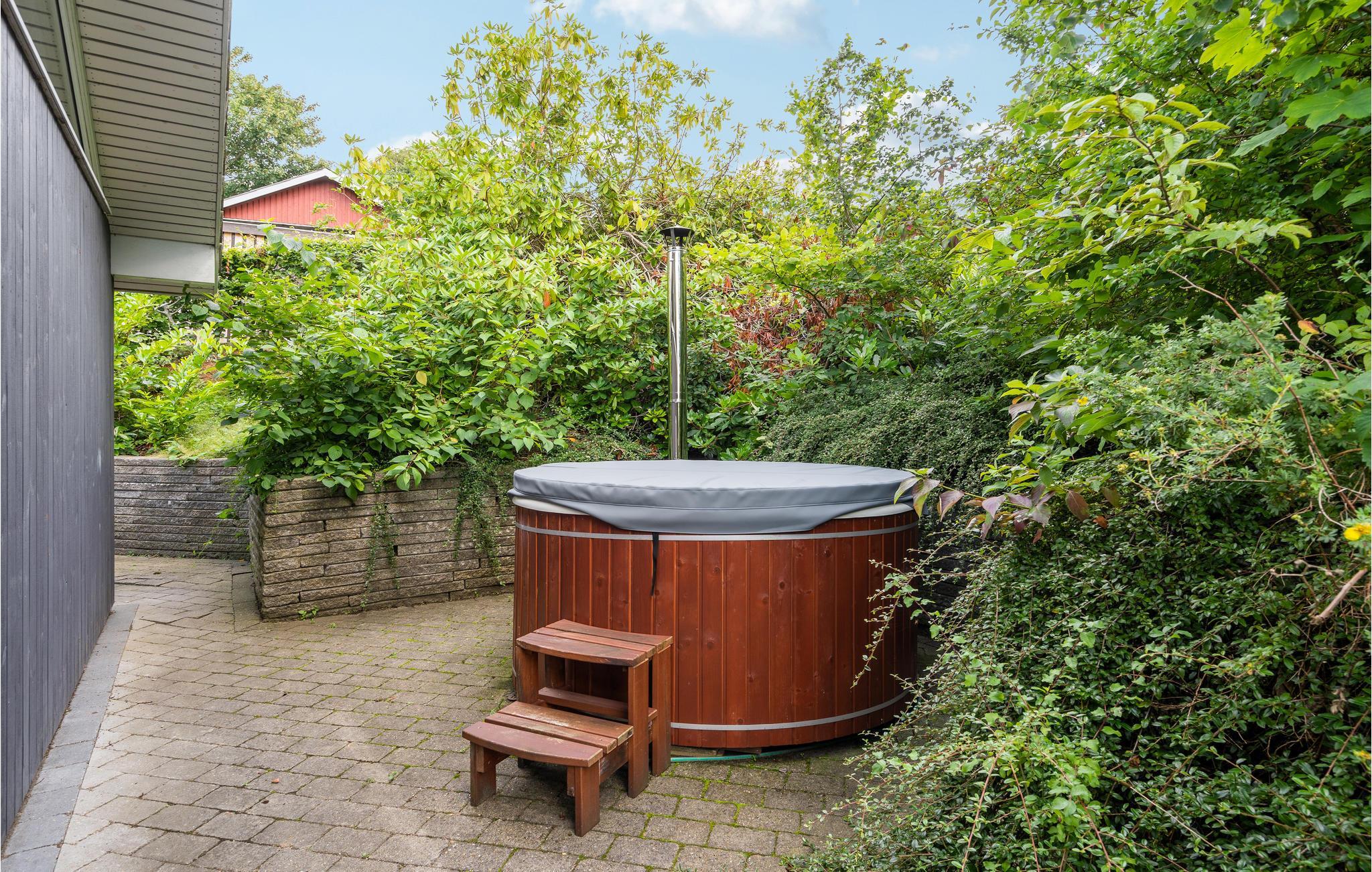 I vil føle jer hjemme, så snart I træder ind ad døren. Åbent til kip i kombination med trægulve- og lofter og masser af vinduer skaber en rummelig, lys og hyggelig atmosfære. Huset har alt I behøver til en afslappende ferie uanset årstiden. Om efteråret og vinteren kan I tænde op i brændeovnen efter en frisk gåtur. Om sommeren kan I starte dagen med at tilberede en lækker morgenmad i husets store, veludstyrede køkken og derefter nyde den på den delvist overdækkede terrasse. Her kan I sole jer og læse en god bog i løbet af dagen, mens børnene leger i haven, og senere kan I afslutte dagen med en hyggelig grillaften efterfulgt af en god film i fjernsynet i opholdsstuen.