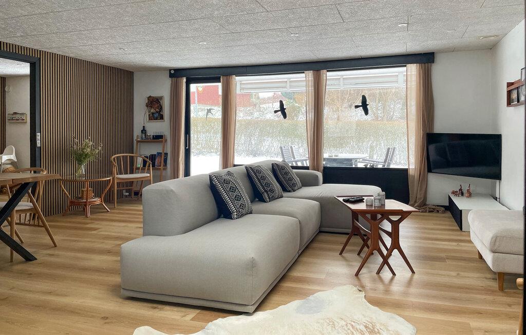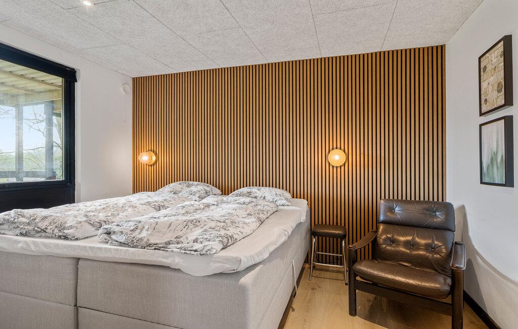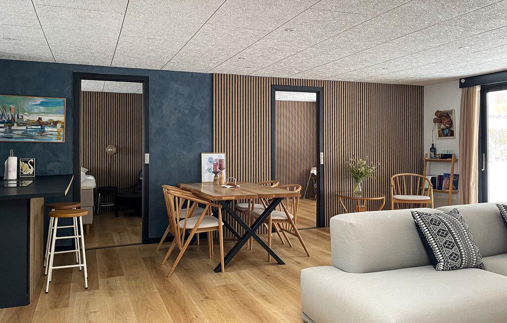 Tilbring jeres fritid i dette komfortabelt designede træhus, som lægger op til afslapning med sin varme atmosfære. Begynd dagene afslappet med en afslappet morgenmad ved spisebordet ved siden af ??det åbne, moderne køkken og brug den lyse opholdsstue til fælles øjeblikke. Spil kort, se en film, eller slap af med en bog i de rummelige sofaer.