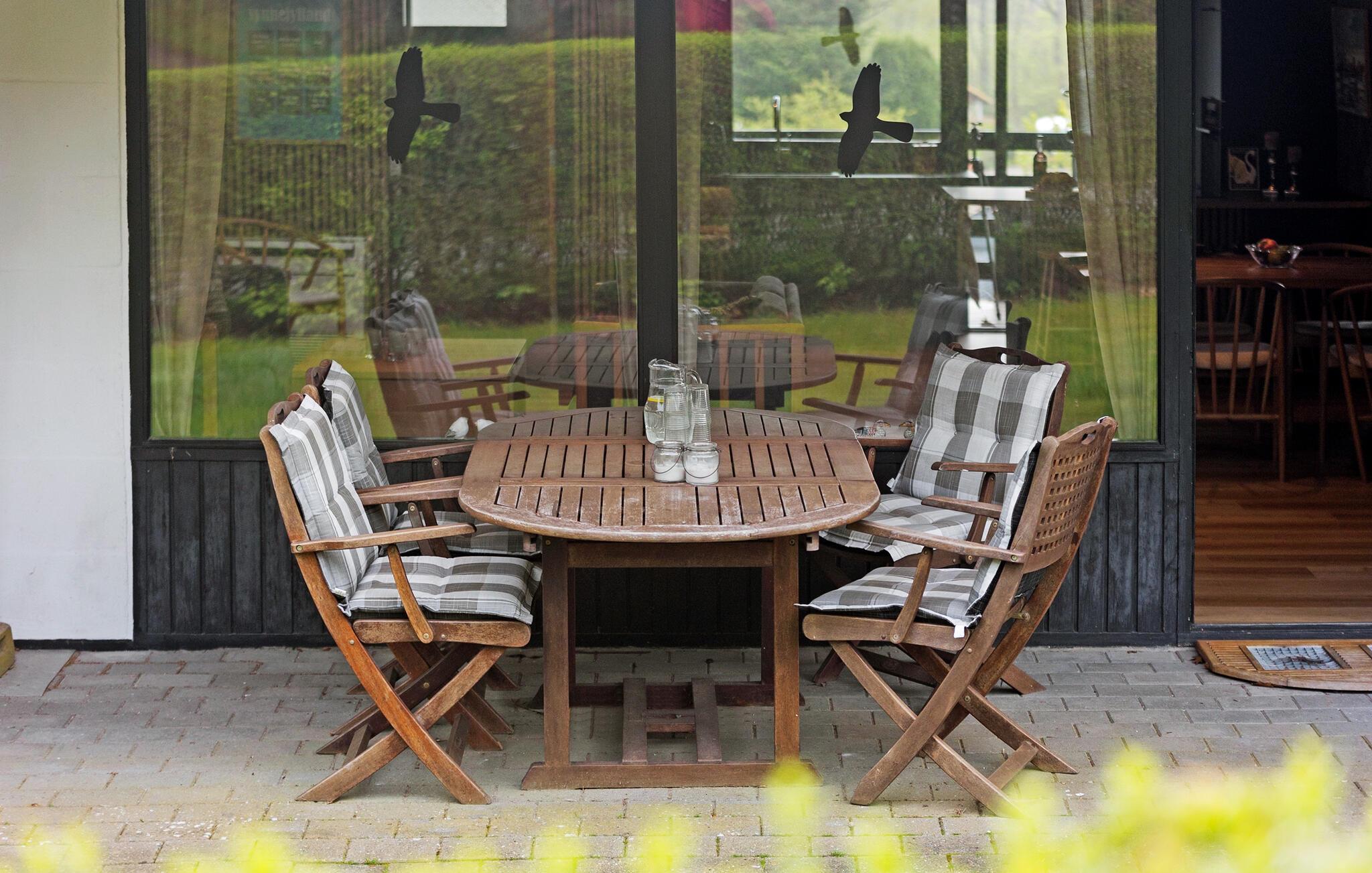 Udenfor indbyder den store terrasse til at blive hængende. Gør det behageligt i havemøblerne og tilbered et lækkert måltid på grillen. De små feriegæster vil nyde at have plads til at lege på græsplænen.