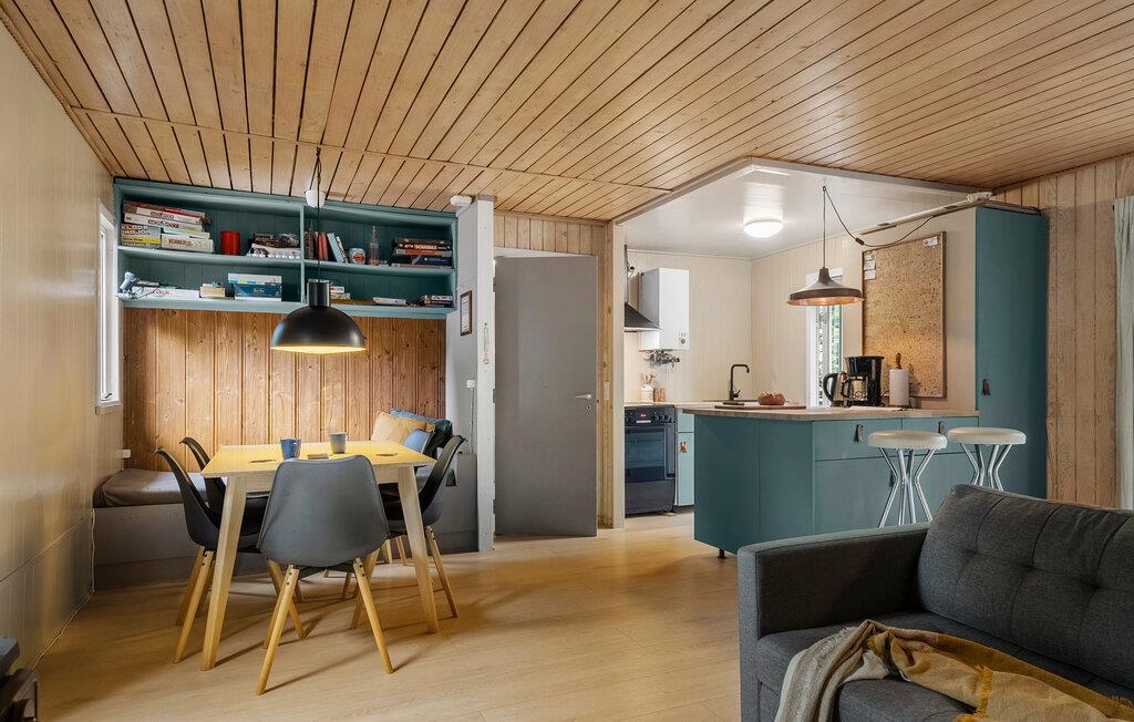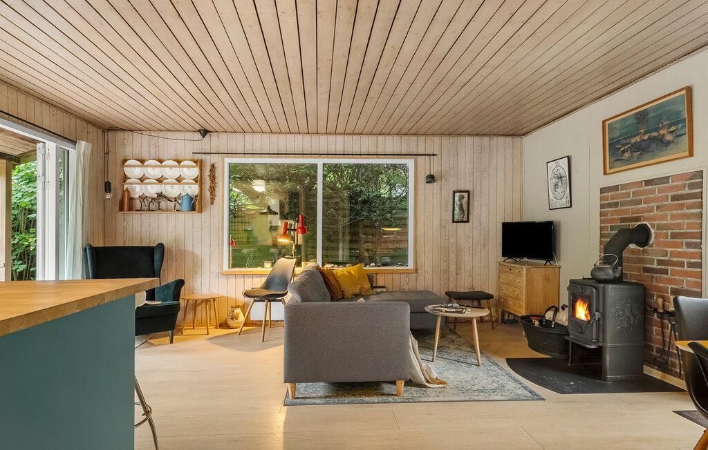 Glæd jer til en afslappende ferie i dette charmerende feriehus, nogle få minutters gang fra stranden. Lad jer byde velkommen af den varme atmosfære i opholdsstuen. Trælofter, store vinduer og kærligt afstemte møbler skaber en hyggelig atmosfære. Gør det behageligt i sofaen, nyd udsigten over de grønne områder eller varm jer ved brændeovnen. Det åbne køkken er moderne udstyret og giver med sine varme farver og praktiske planløsning rige muligheder for at tilberede lækre måltider. Ved spisebordet med det komfortable siddeområde kan I spise sammen, spille spil eller planlægge jeres næste udflugt.