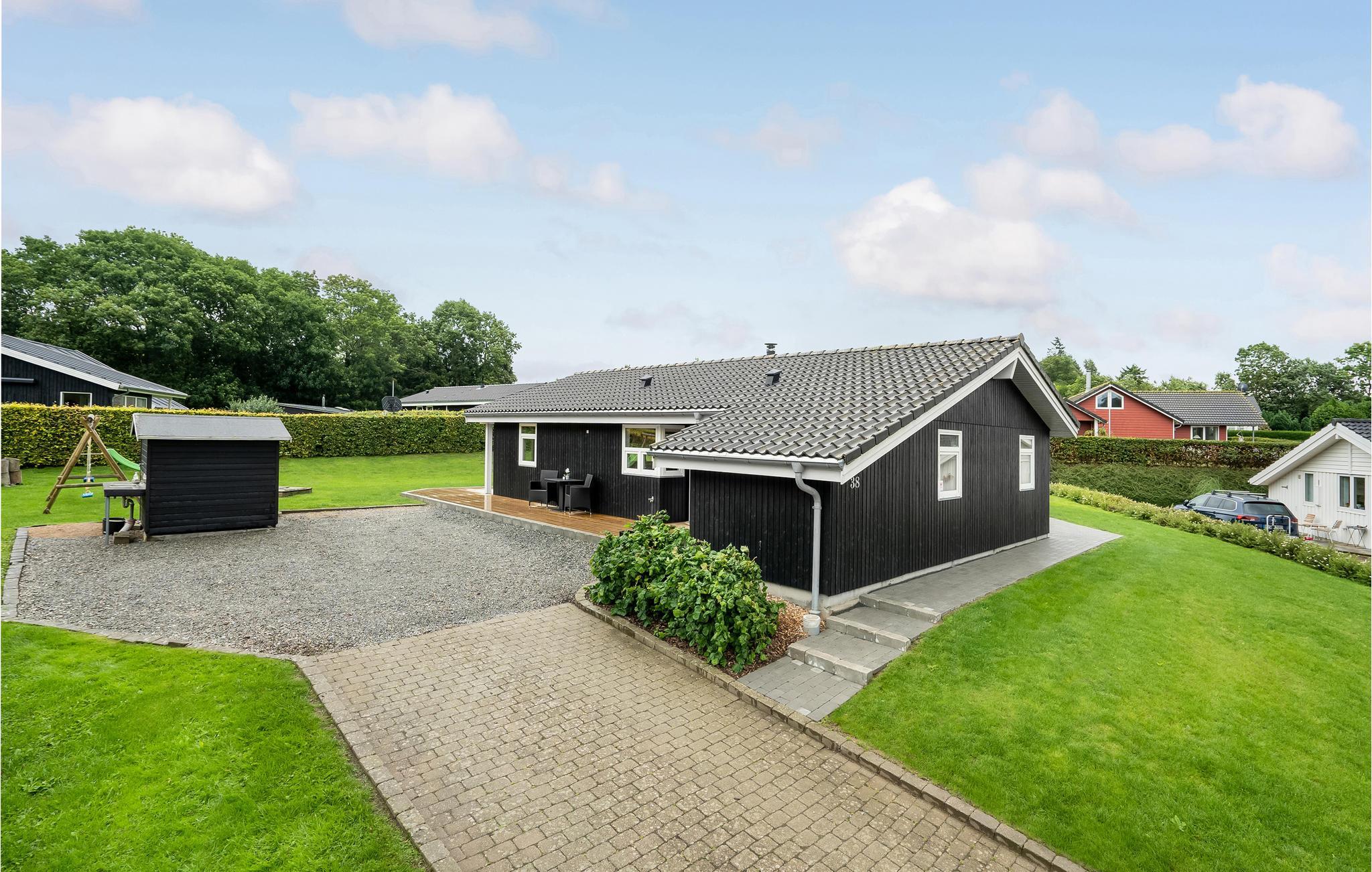 Flot feriehus nær stranden med spabad, sauna og stor have i naturskønne omgivelser ved Aabenraa.