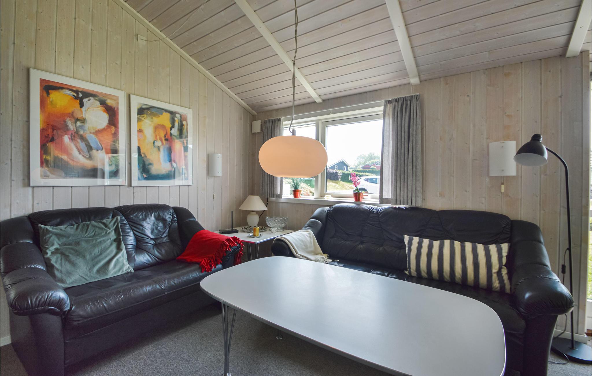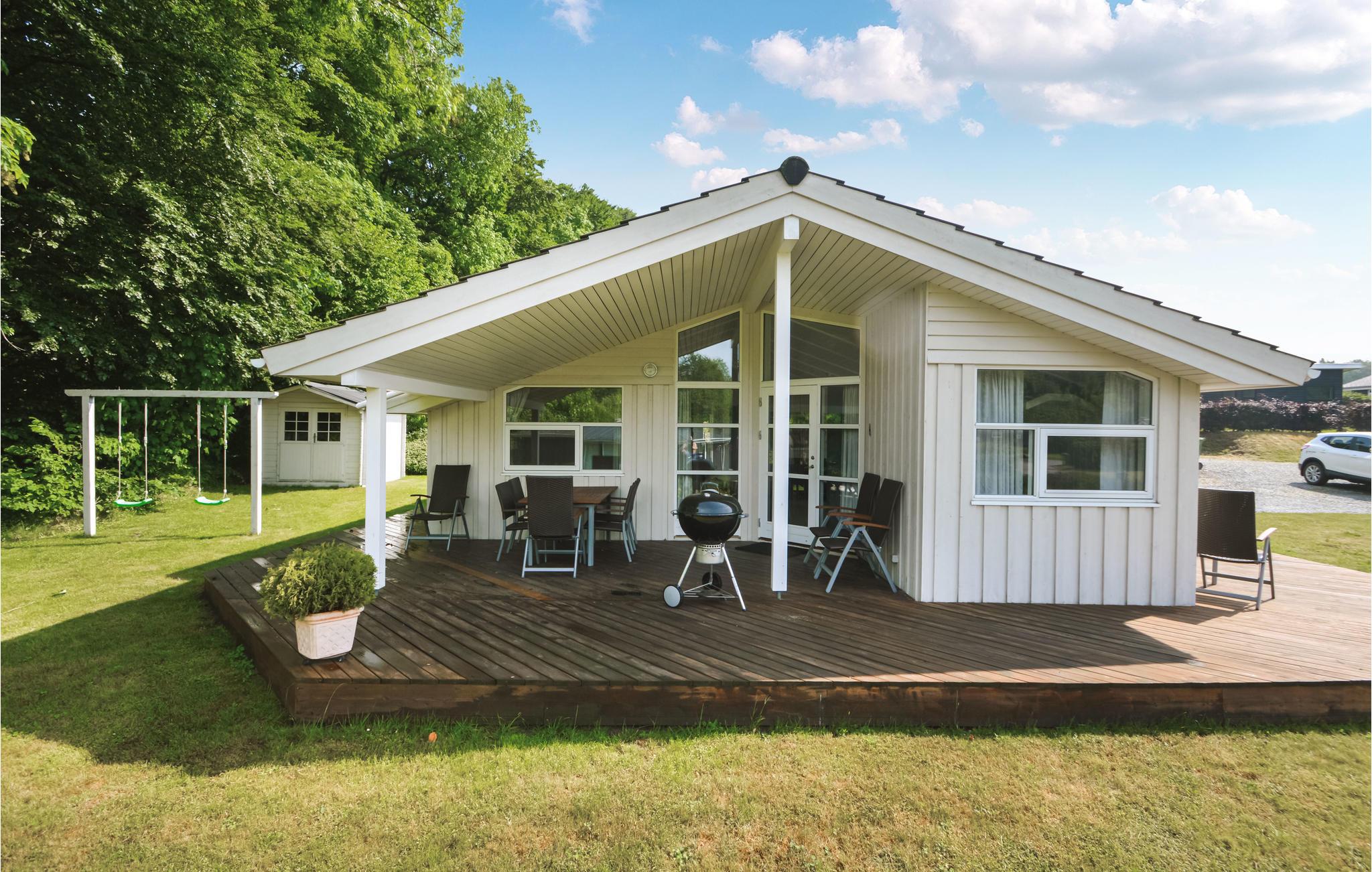 Dette skønne feriehus er lyst og imødekommende, det indbyder til ferie og afslapning. selve huset indeholder et dejligt køkken, en pæn lys stue med brændeovn og gulv til loft vinduer, 3 soverum hvoraf to er med dobbelt seng og et men 2 enkelt senge. Husets badeværelse er med bruser, spa og direkte adgang til sauna. Udendørs er der opført en træterasse delvis rundt om huset, en del af terassen er overdækket, hvor det vil være muligt at forlænge de lune sommeraftner. Der er en anlagt have med en god græsplæne som ligger op til gode udendørs aktiviteter og med kort afstand til stranden er der rig mulighed for at bade og fiske .