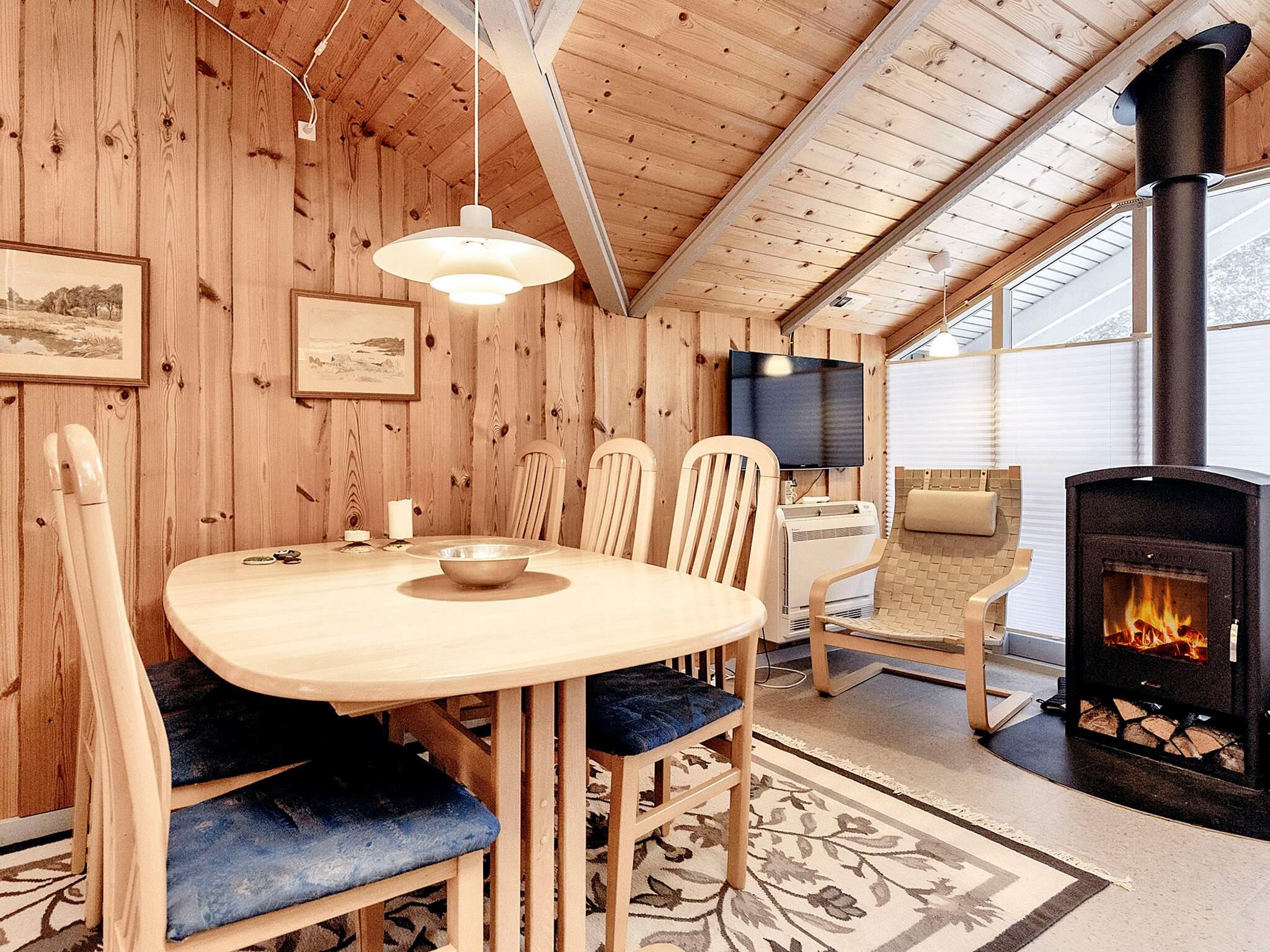 Sommerhuset er bl.a. udstyret med energibesparende luft/luft varmepumpe og der er desuden brændeovn, vaskemaskine og frysekapacitet på 60 liter. Der er tre soveværelser fordelt på et værelse med dobbeltseng, et værelse med 3/4-seng og en køjeseng samt et værelse med en enkeltseng.