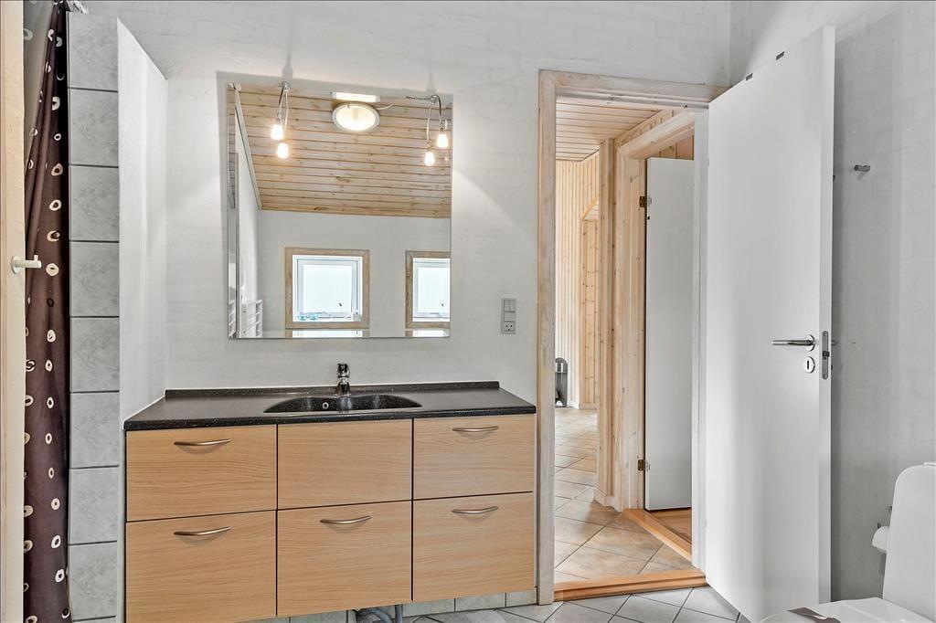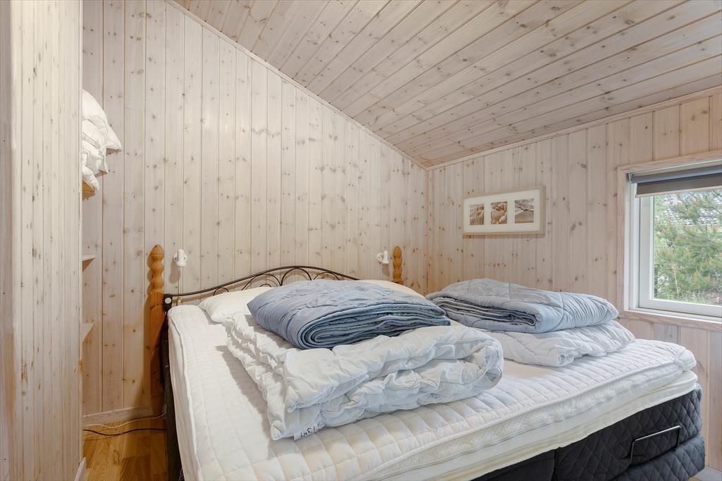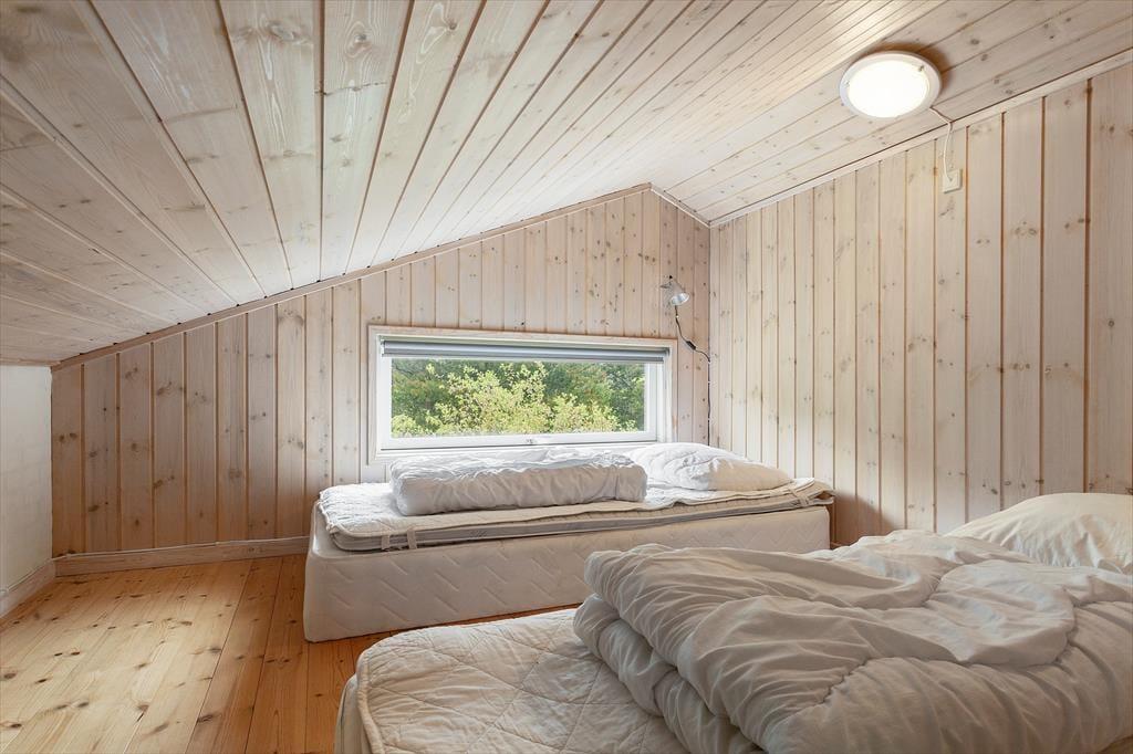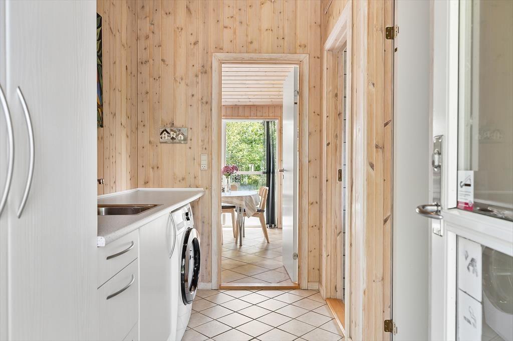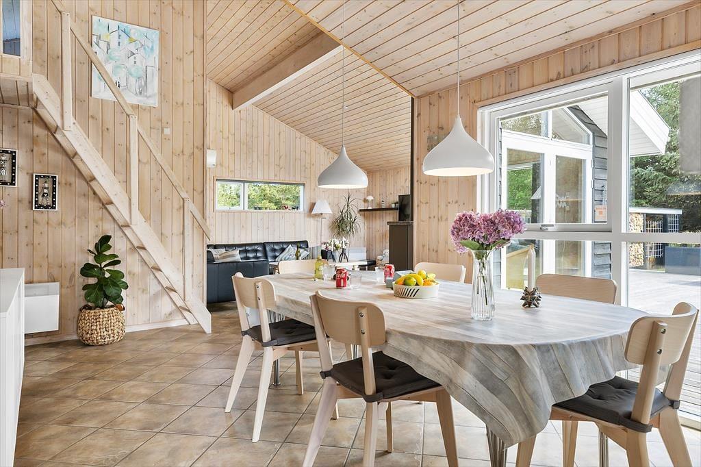 Sommerhuset byder på en lys og venlig atmosfære, der straks får dig til at føle dig hjemme. Stuen er rummelig og har store vinduer, der inviterer sollyset indenfor og giver et dejligt kig ud til de grønne omgivelser. Den åbne planløsning mellem stue og køkken gør det let at være sammen, uanset om I laver mad, spiller spil eller slapper af i sofaen. Med sit indbydende interiør og komfortable møbler er huset som skabt til hyggelige stunder med familien, uanset om det er foran brændeovnen på en kølig aften eller ved spisebordet til en fælles middag.