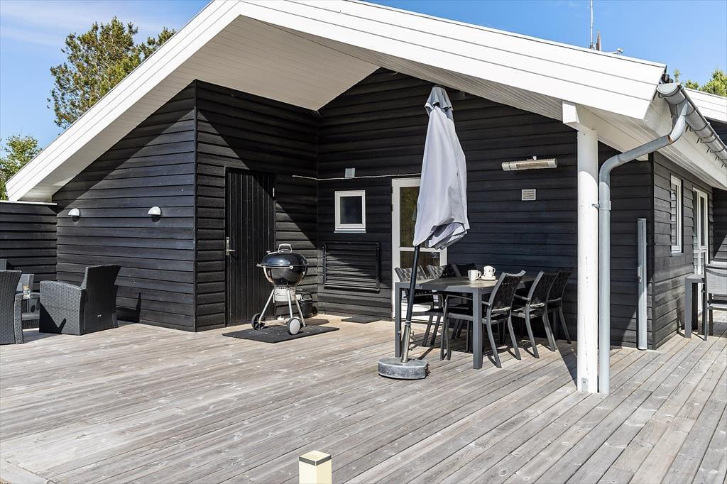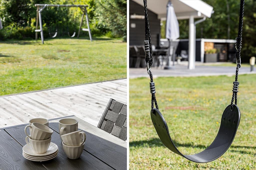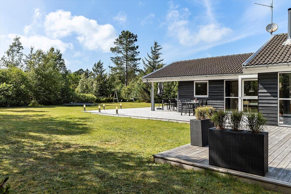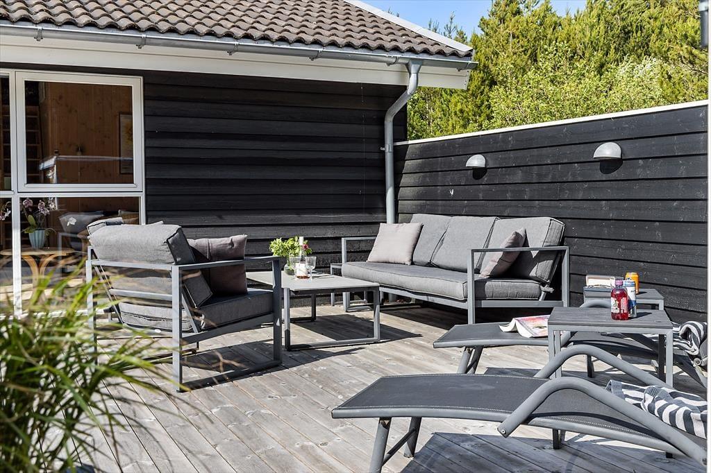 Udendørsområderne er en ren fornøjelse. Den store terrasse indbyder til afslapning under åben himmel, og der er gode havemøbler, hvor du kan nyde morgenkaffen, solens varme eller en lækker grillmiddag. Grunden er udlagt med en stor græsplæne, som børnene vil elske at lege på – her er masser af plads til boldspil og andre aktiviteter. De naturskønne omgivelser gør det nemt at finde ro og nyde feriens små glæder, mens fuglesang og duften af sommer understreger den særlige stemning.