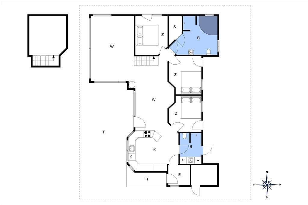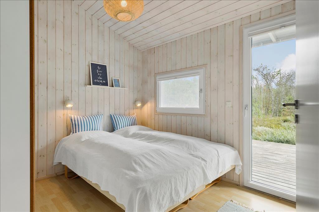 Så snart du træder ind i sommerhuset, mærker du, hvordan roen sænker sig. Det store vinduesparti i opholdsrummet trækker naturen med helt ind i stuen, og de lyse lofter til kip skaber luft og rummelighed, mens den varme glød fra brændeovnen indbyder til hyggelige timer med spil, snak og nærvær. Indretningen er enkel og venlig, med et åbent køkken-alrum, hvor du nemt kan kokkerere feriens måltider uden at gå glip af selskabet. På hemsen kan børn eller teenagere trække sig tilbage med en film, og to badeværelser – det ene med både spa og sauna – sikrer, at hele familien kan forkæles efter en lang dag ude i det fri. Her får du en feriebolig, hvor det er nemt at føle sig hjemme.