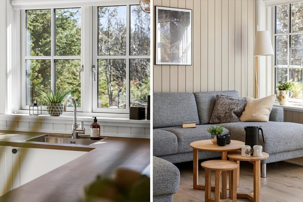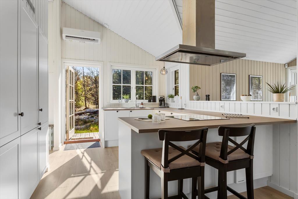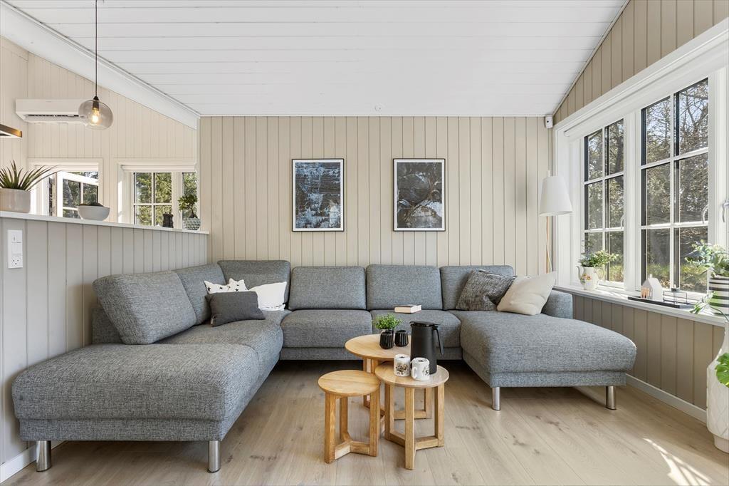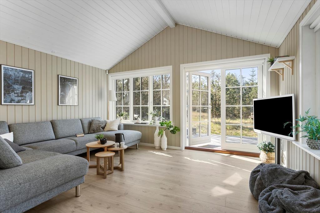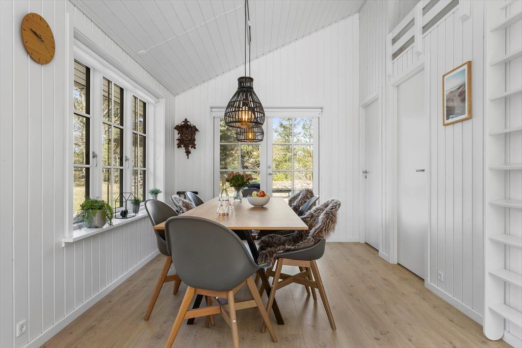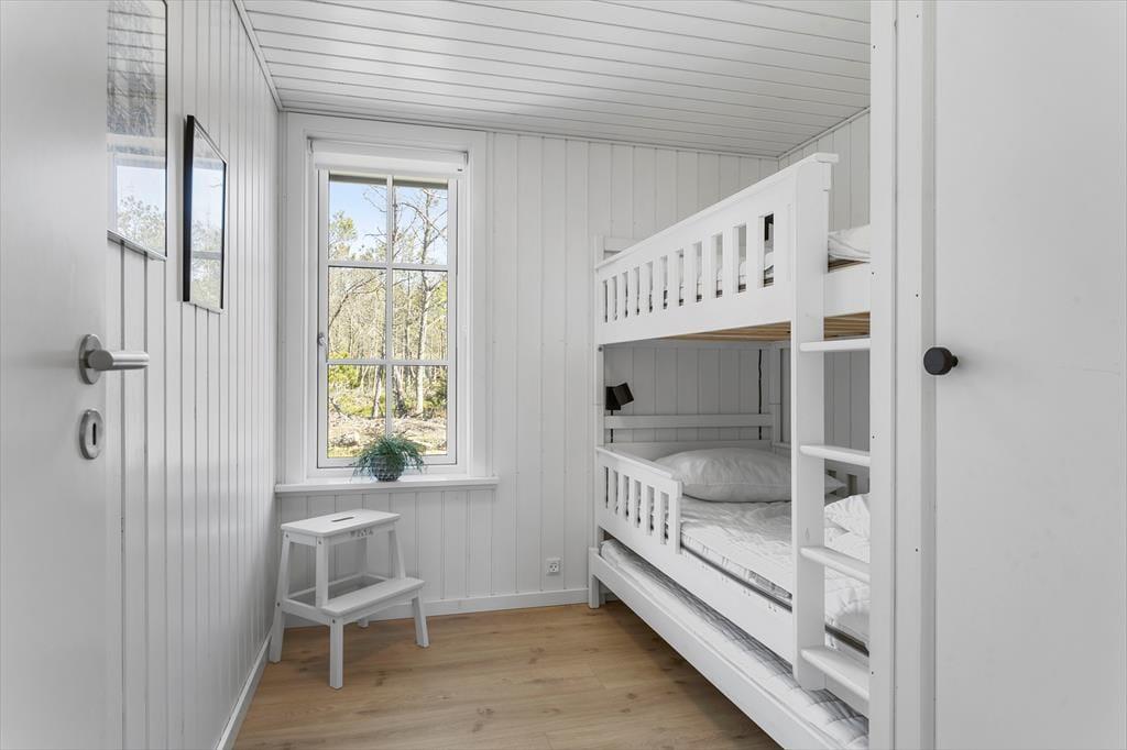 Det nybyggede sommerhus fra 2022 byder dig velkommen med en indbydende og harmonisk atmosfære. De hvide sprossevinduer lader lyset strømme ind og skaber en skøn kontrast til den mørke træfacade. Indenfor er planløsningen ideel, så der er god plads til både afslapning og samvær. Stuen er hjertet i huset, hvor du kan samles med dine kære til hyggelige aftener i sofaen eller lange middage ved spisebordet. Det åbne køkken gør det let at være sammen, selv når der trylles lækker mad frem til feriens måltider. Hele sommerhuset udstråler kvalitet og komfort, så du kan få en afslappende ferie i skønne omgivelser.