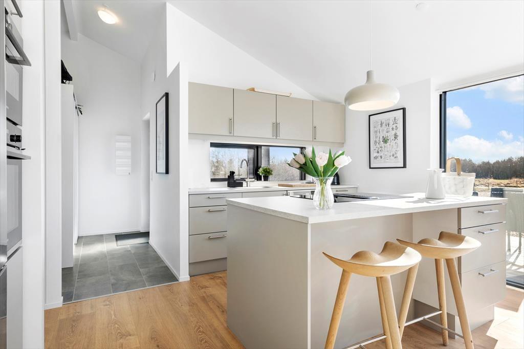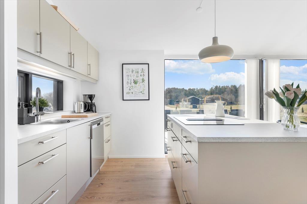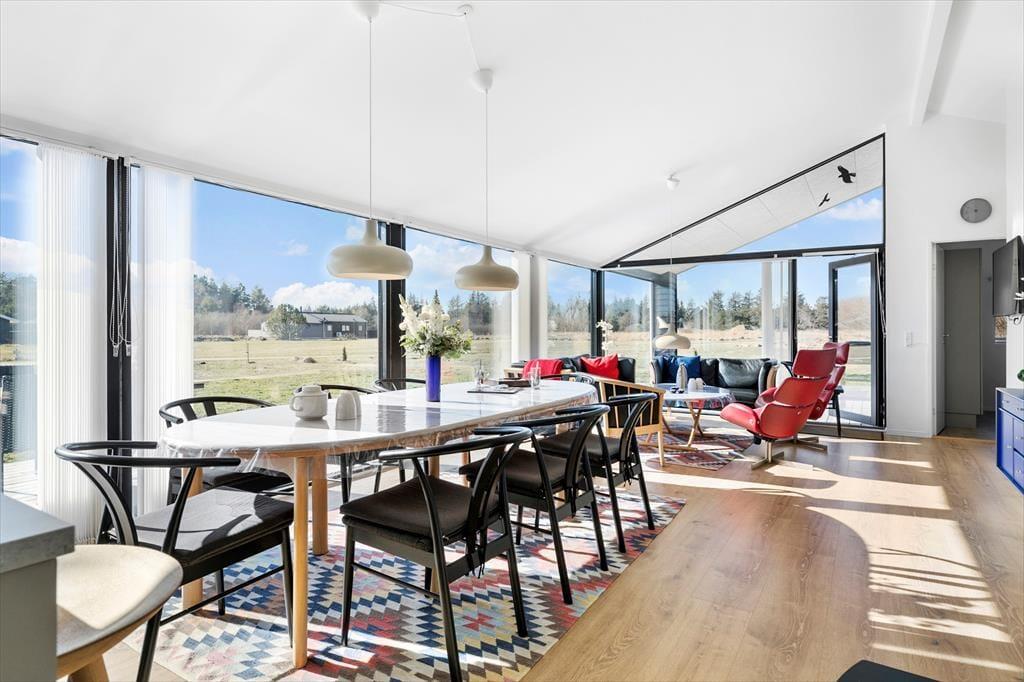 Sommerhuset byder dig velkommen med en rummelig og hyggelig atmosfære. Her er god plads til at samles med familie og venner i den store opholdsstue, hvor lyset strømmer ind gennem vinduerne, og hvor du kan slappe af i bløde møbler efter en dag i naturen. Det veludstyrede køkken ligger i åben forbindelse med stuen, så I kan være sammen, mens der laves mad eller hygges omkring spisebordet. Sommerhuset er desuden hundevenligt, så familiens firbenede ven kan være med på ferien. Her er alle rammer sat for en dejlig og afslappende ferie med fokus på samvær og hygge.